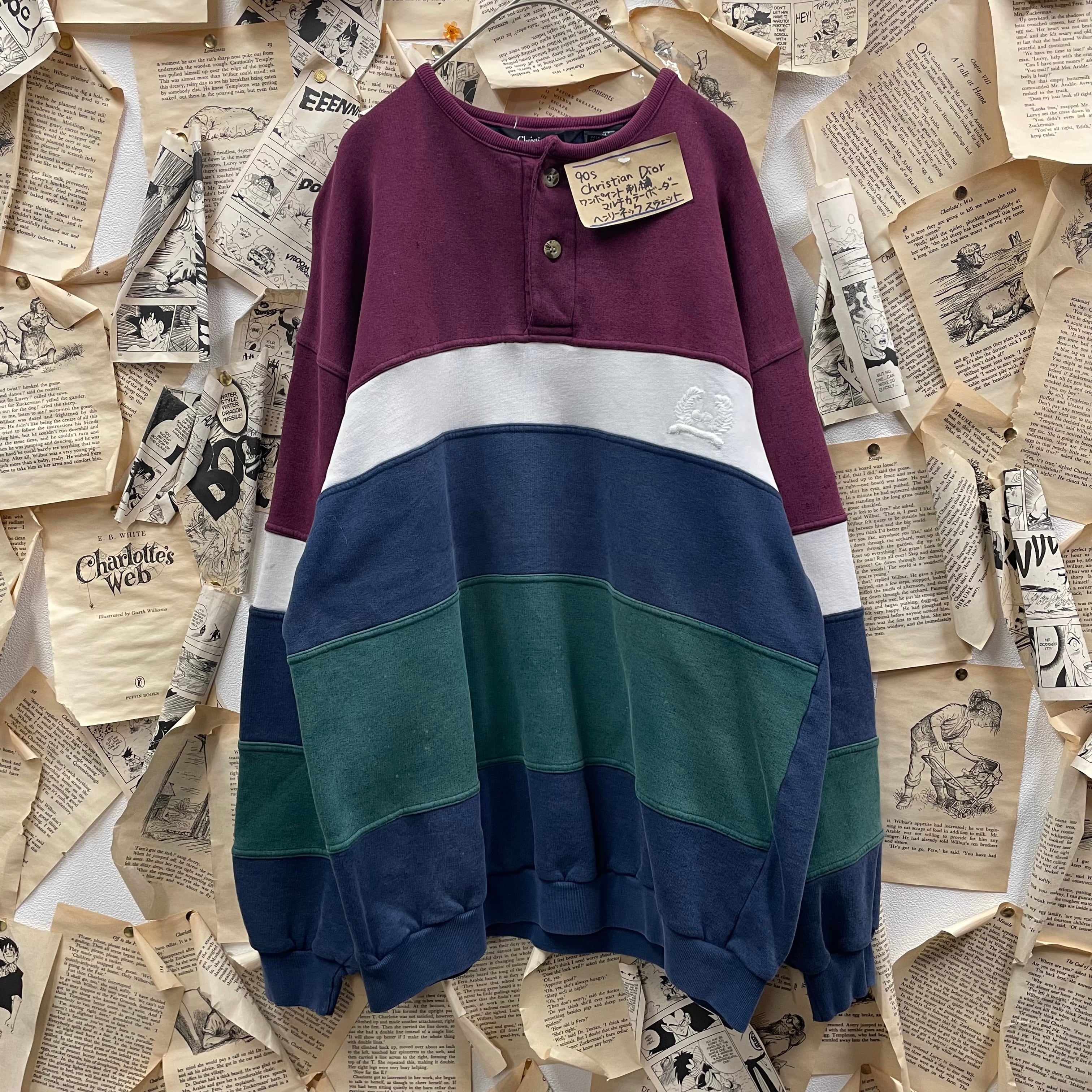90s Christian Dior ワンポイント刺繍マルチカラーボーダー ヘンリーネックスウェットとなっております。