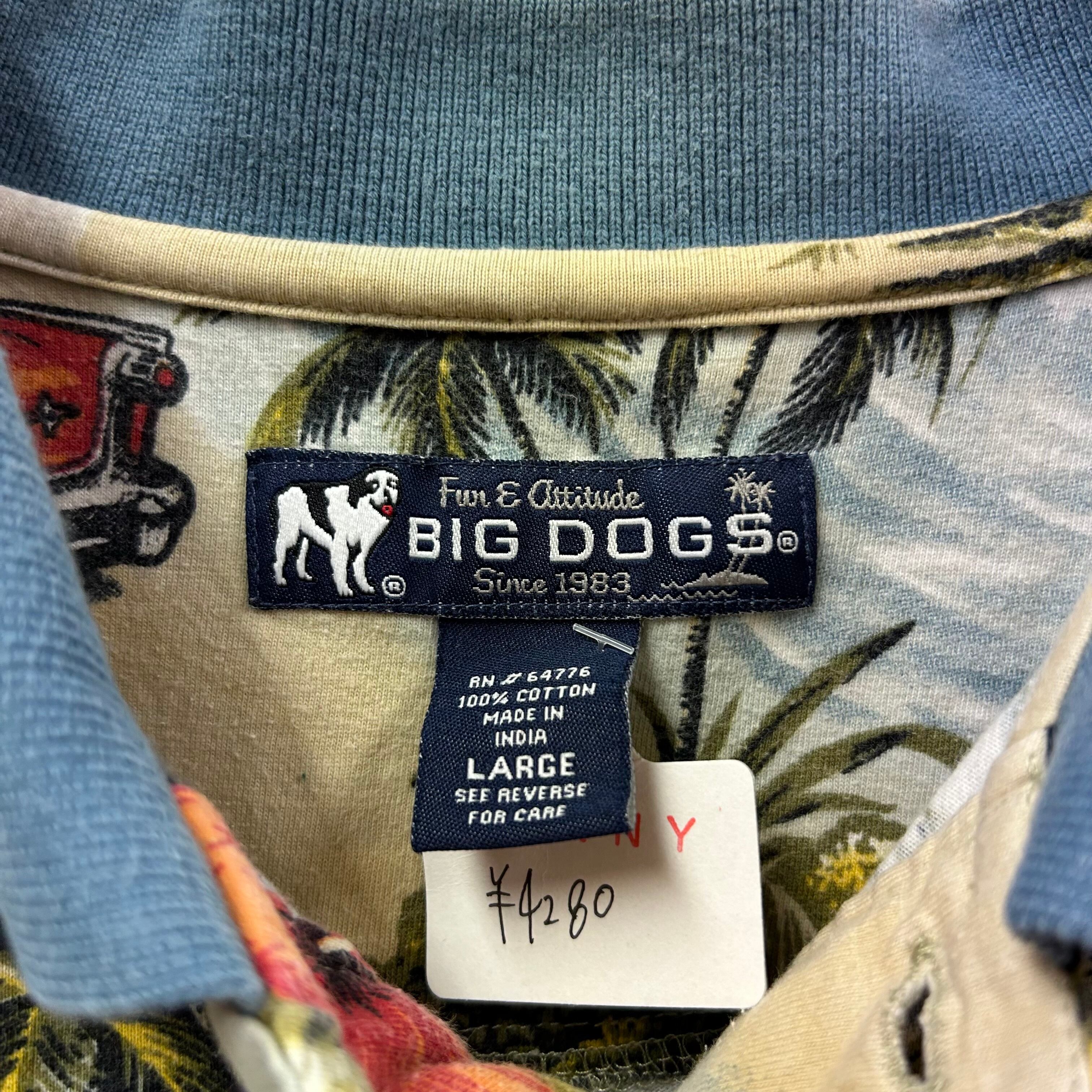 BIG DOGS ハイビスカス&オープンカー総柄半袖ポロシャツ