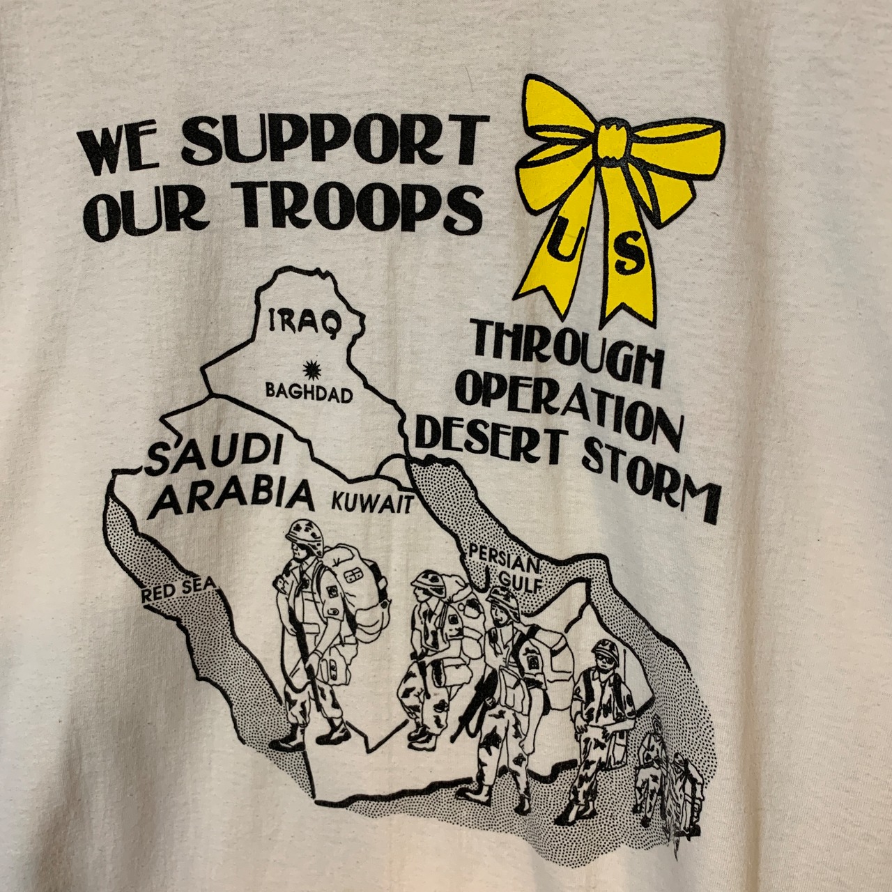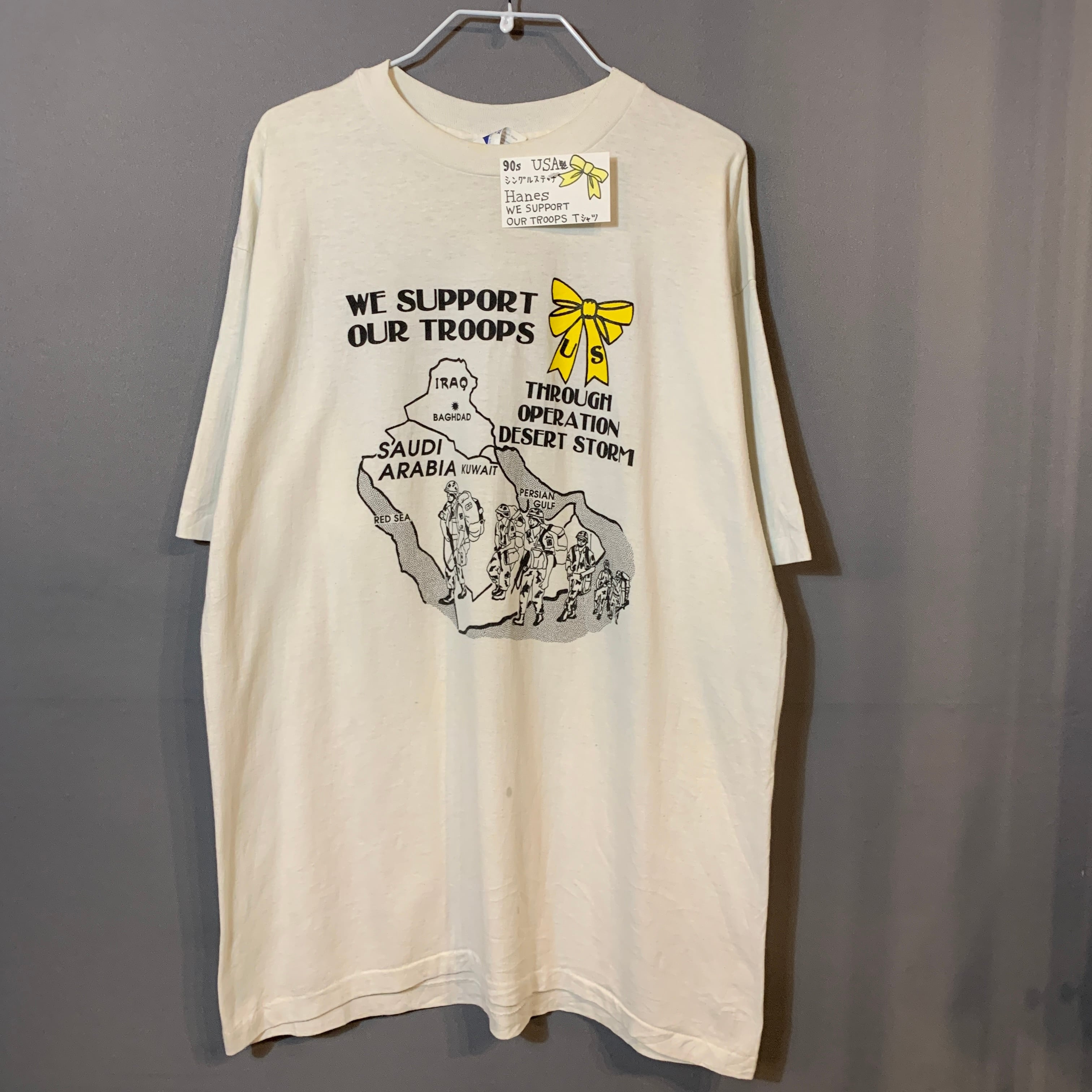 90s USA製 シングルステッチ Hanes WE SUPPORT OUR TROOPS Tシャツ AKB