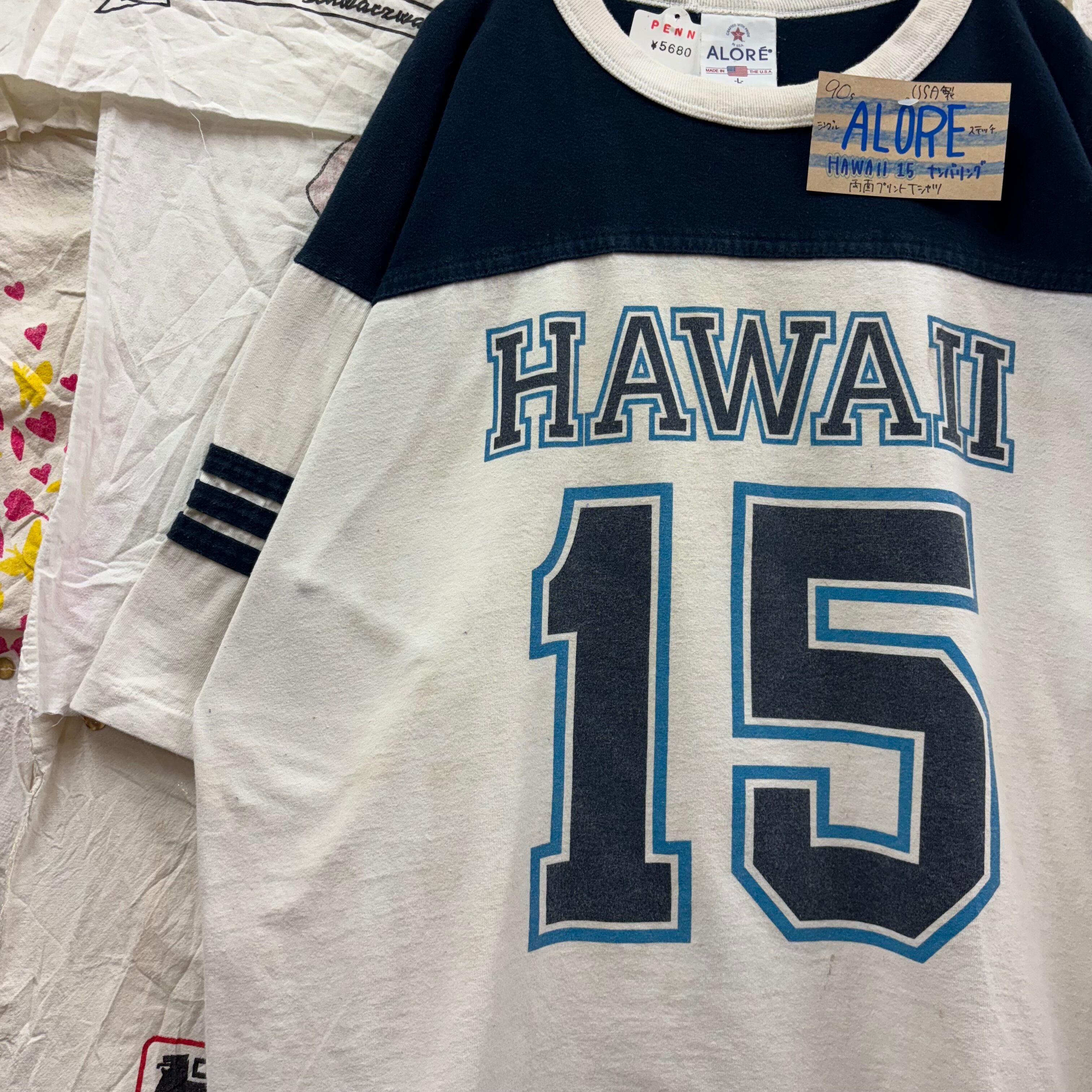 90s USA製 ALORE シングルステッチ HAWAII 15 ナンバリング両面プリントTシャツ