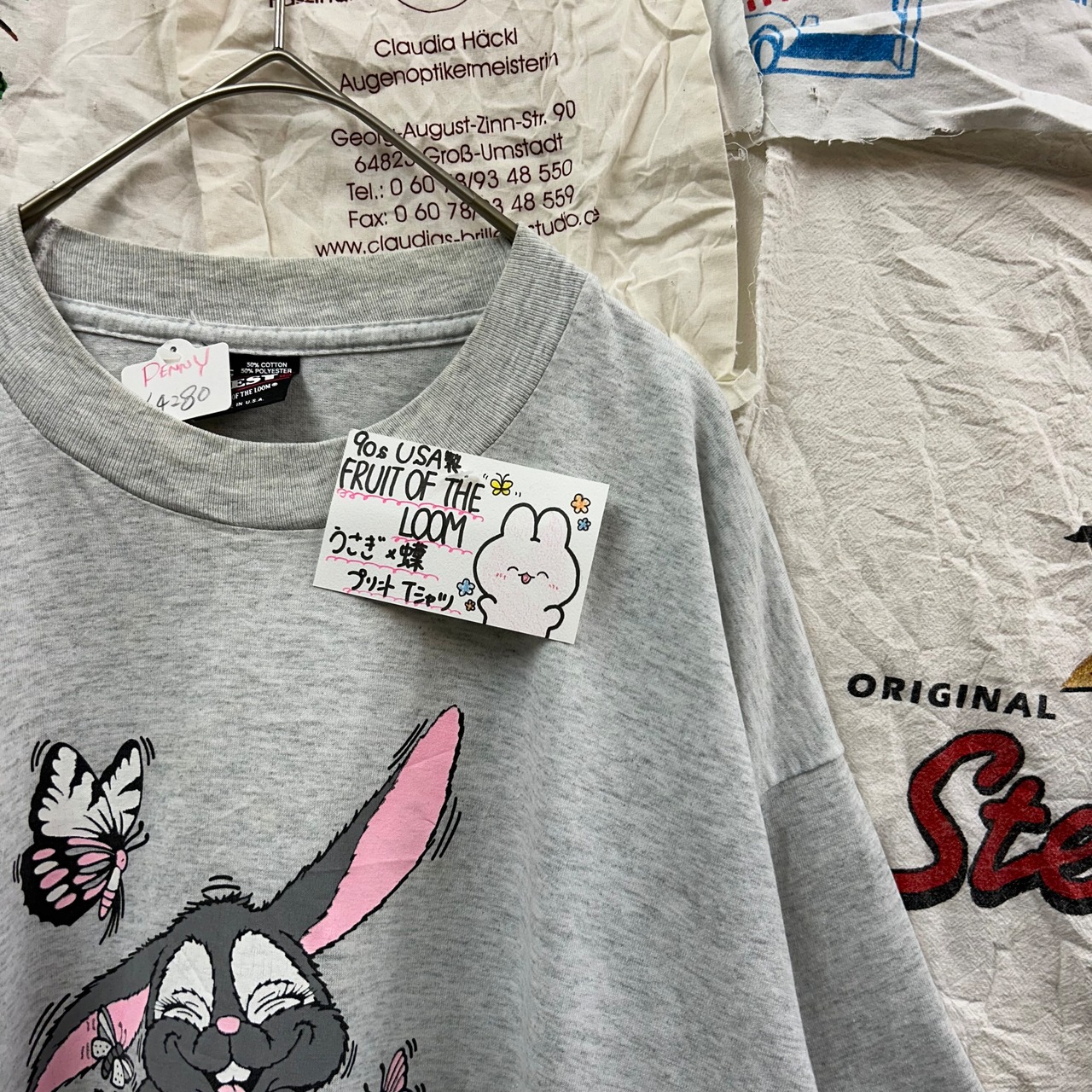 90s USA製 FRUIT OF THE LOOM うさぎ×蝶プリントTシャツとなっております。