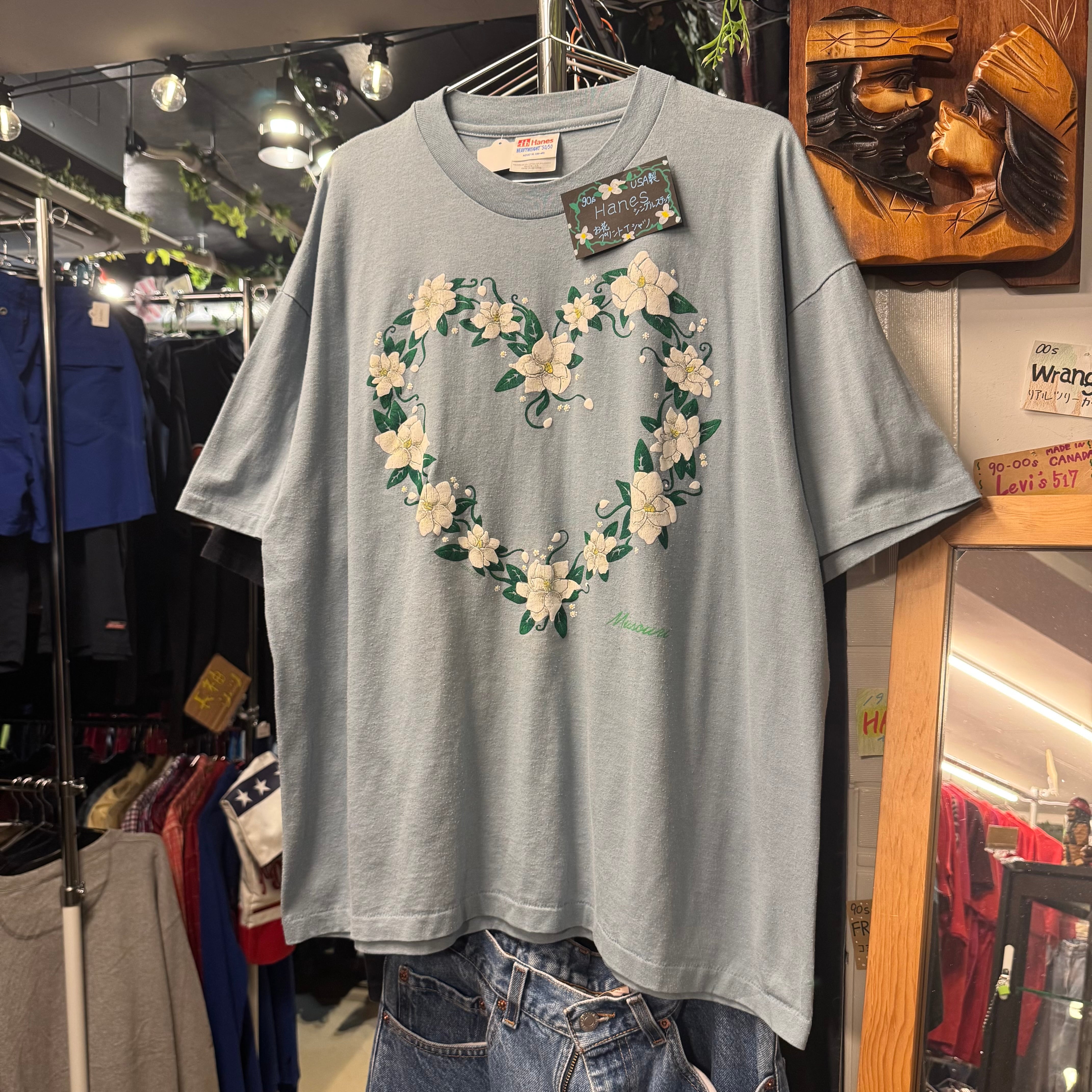 90s USA製 Hanes シングルステッチ お花プリントTシャツ AKB