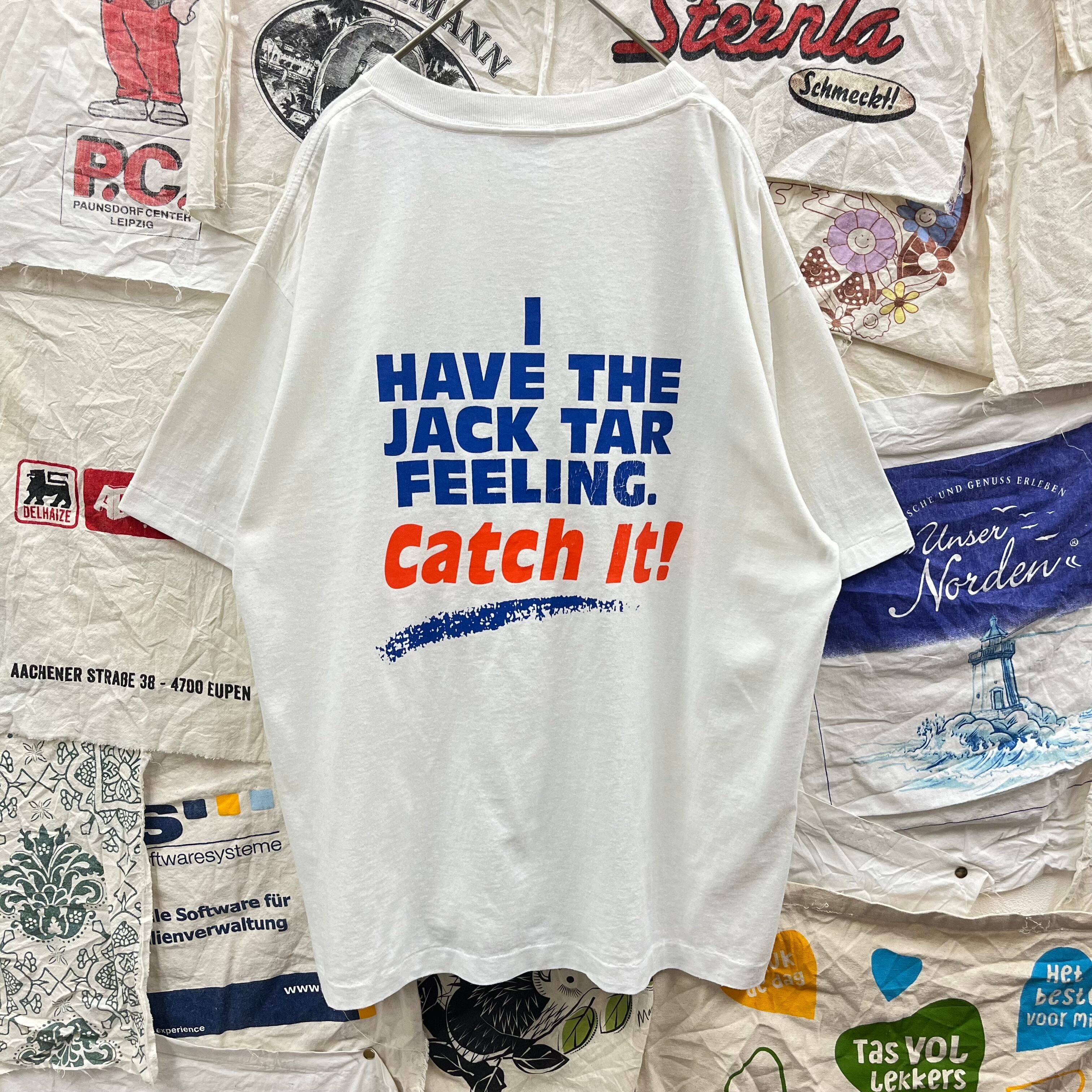 1990s 米製 シングルステッチ Hanes I HAVE THE JACK TAR FEELING CATCH IT! 両面プリントTシャツ