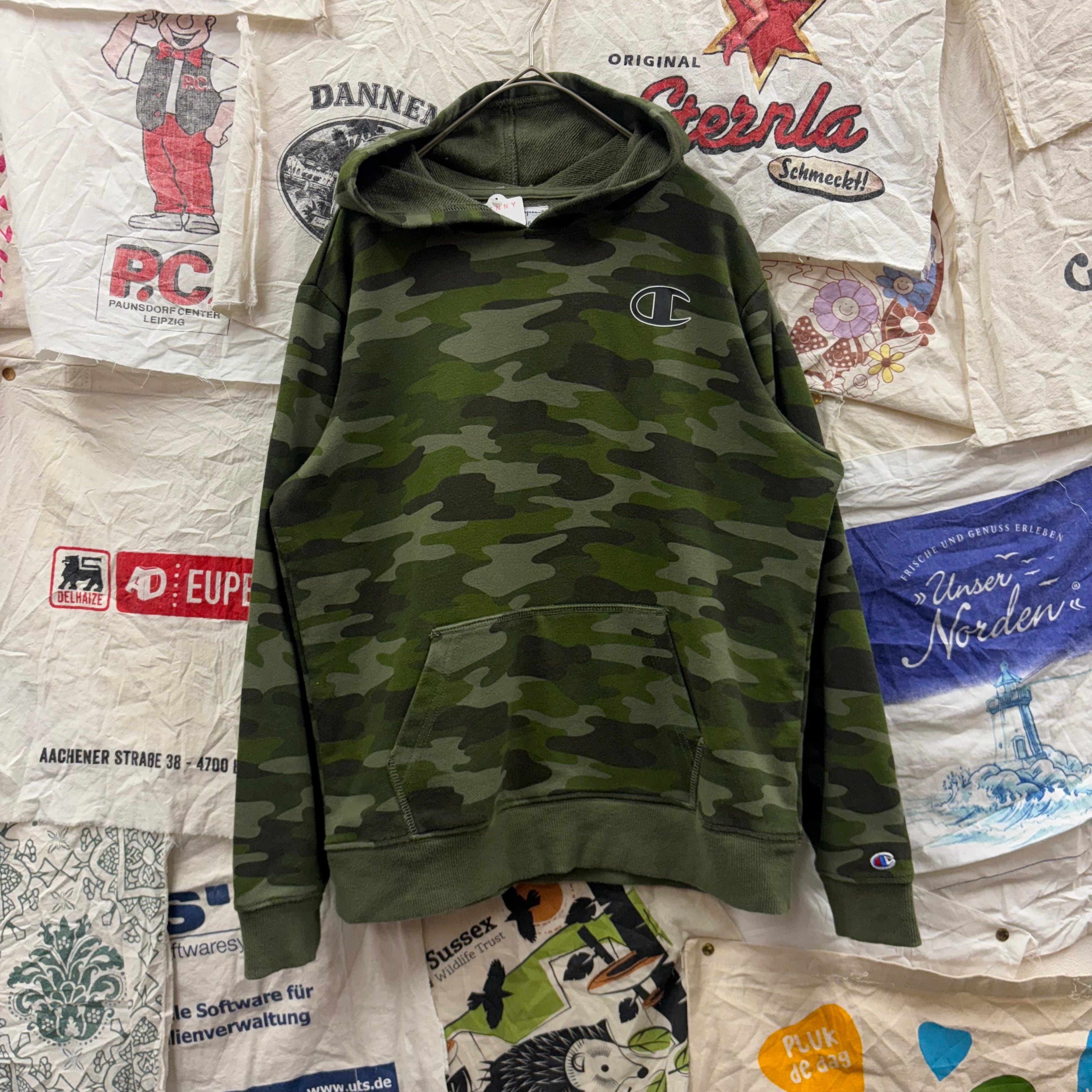 Champion ロゴプリントカモフラ柄フーディ
