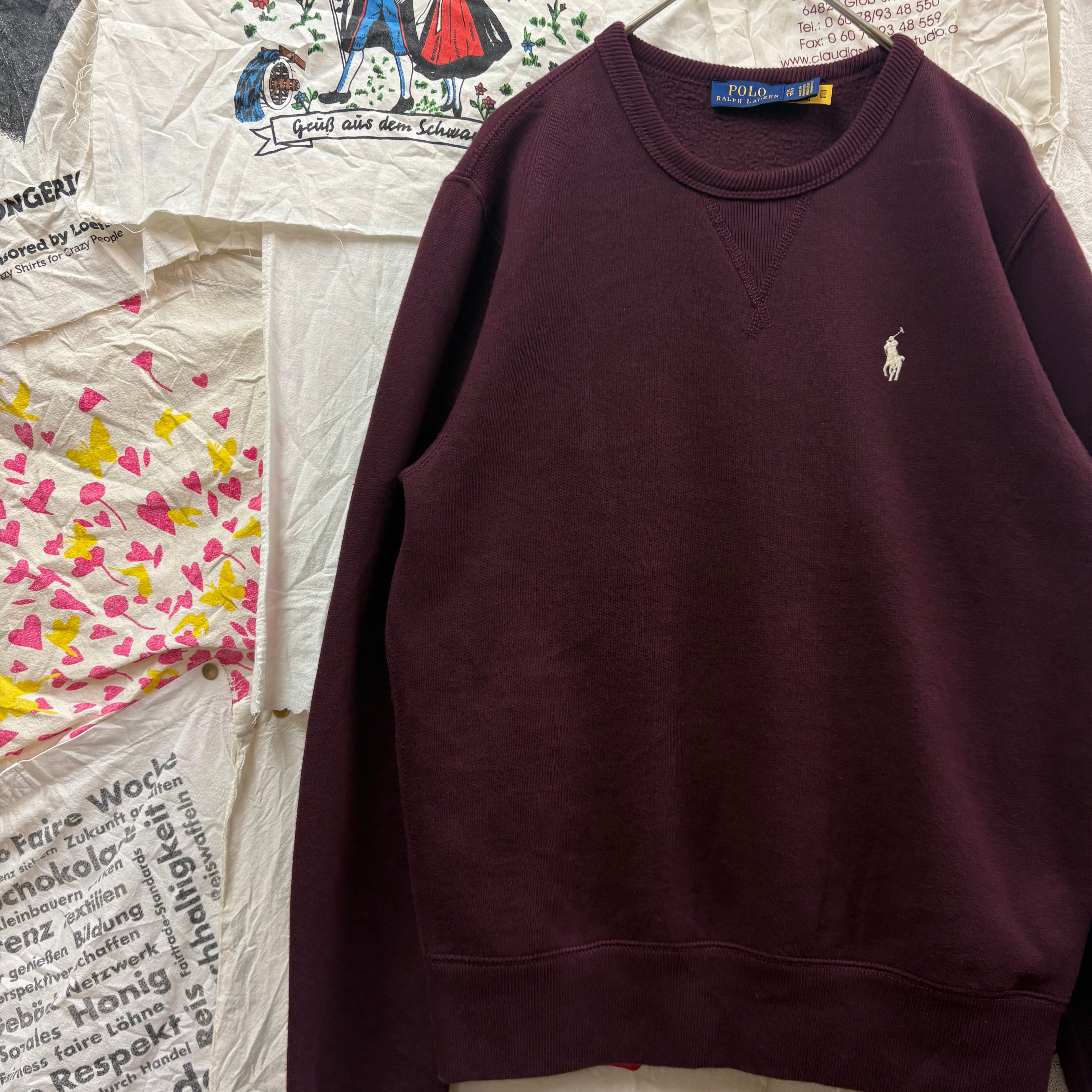 Polo Ralph Lauren ワンポイント刺繍 フリース裏地長袖スウェットワインレッド
