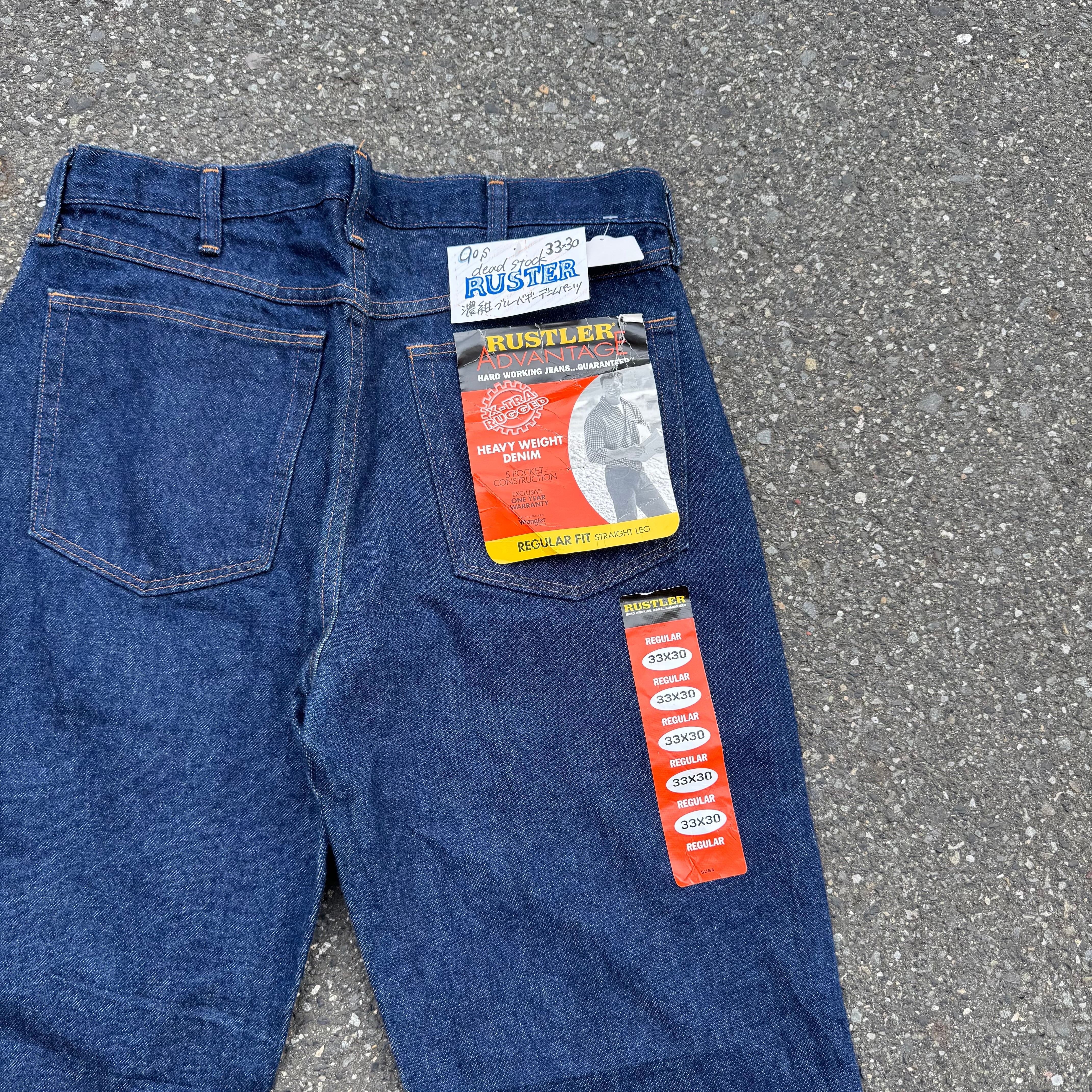 90s RUSTER デッドストック 濃紺ブルーバギーデニムパンツとなっております。