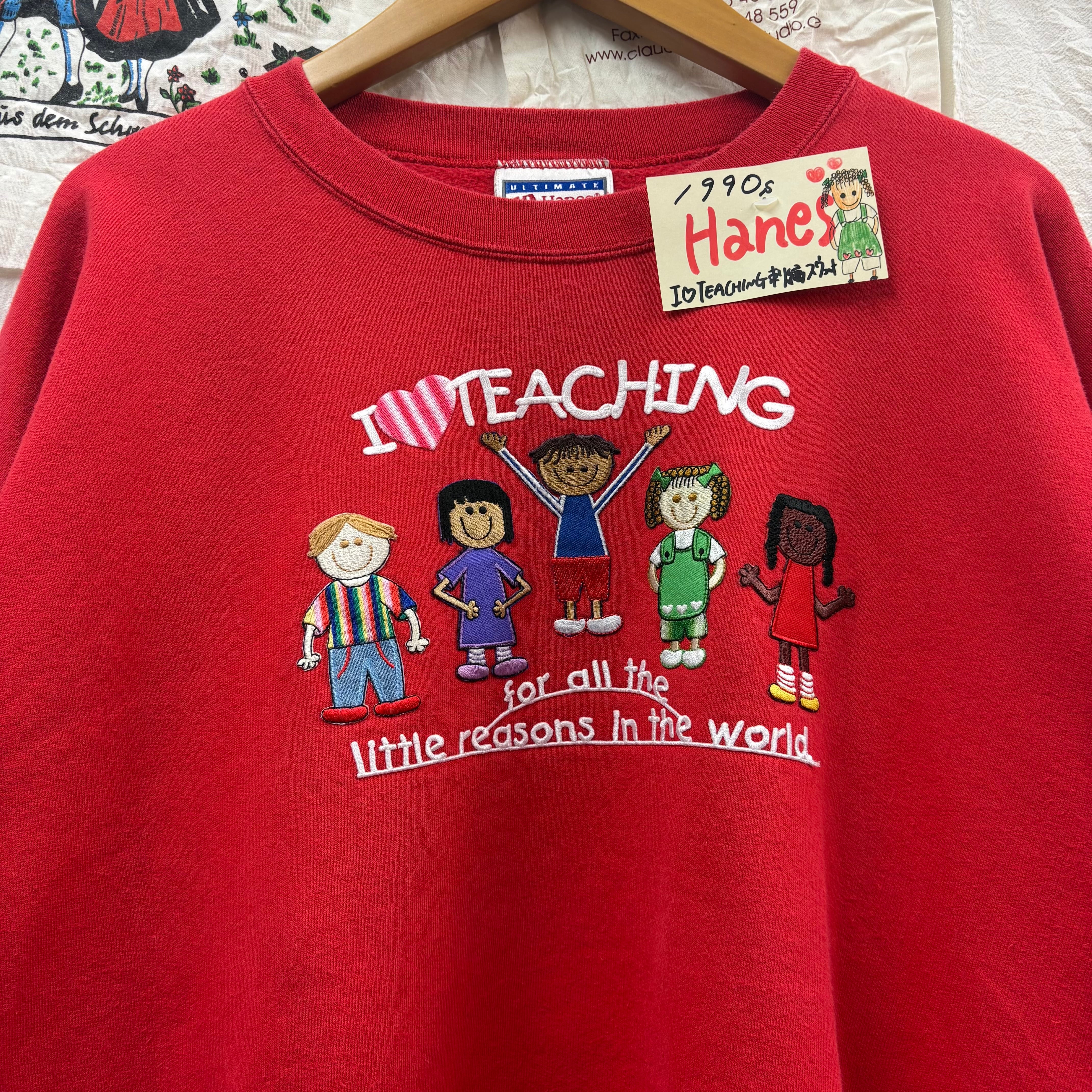 90s Hanes I❤︎TEACHING 刺繍スウェットとなっております。