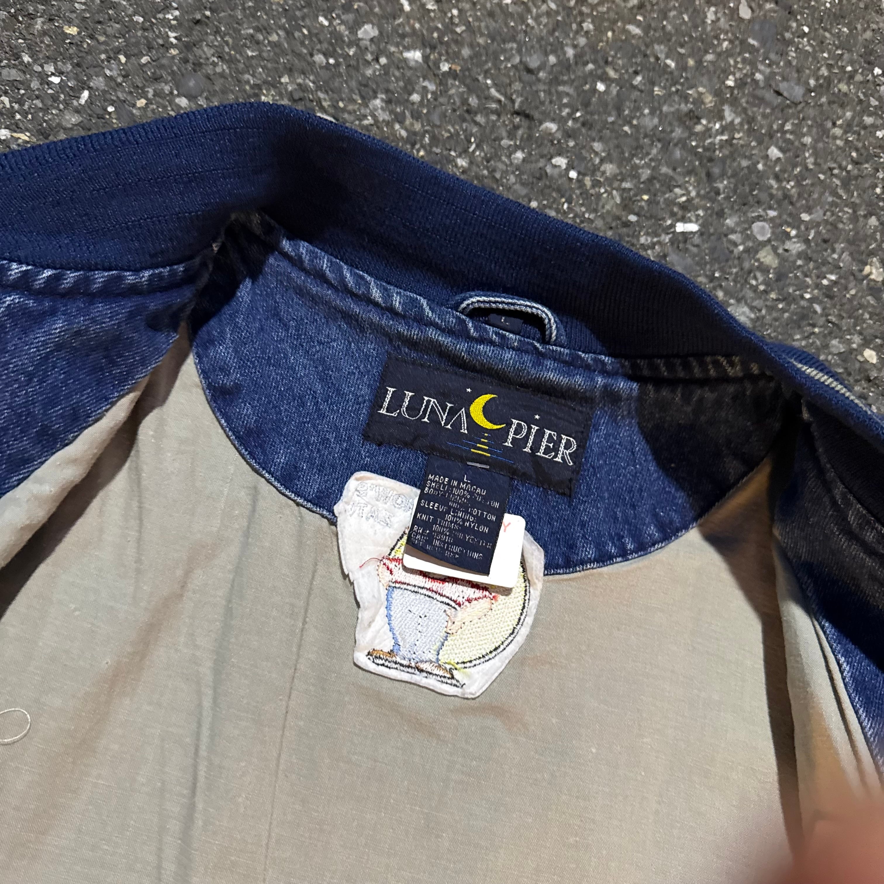 90s MACAU製 LUNA PIER Pete and Shorty's Staff 刺繍デニムスタジャンとなっております。