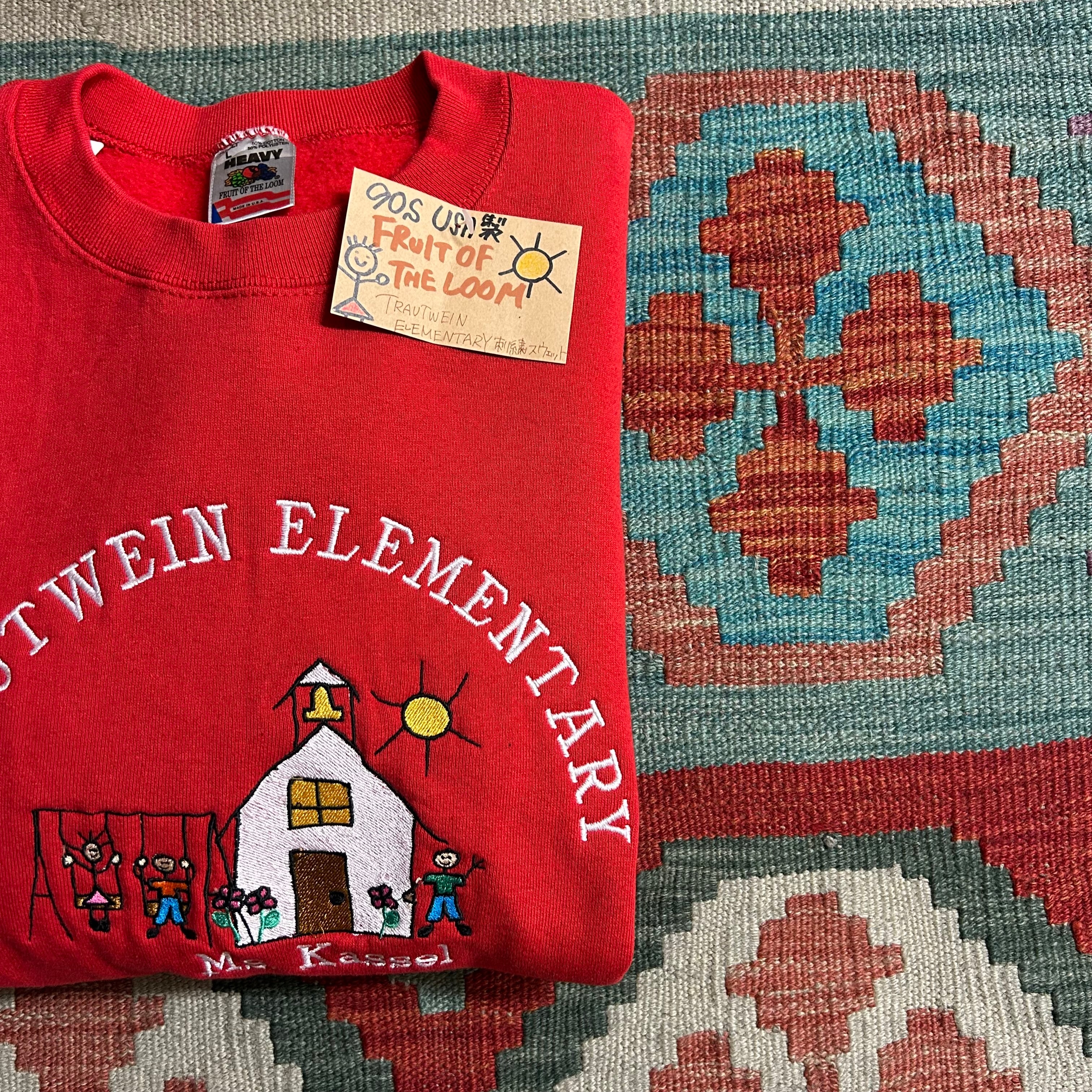 90s USA製 FRUIT OF THE LOOM TRAUTWEIN ELEMENTARY刺繍スウェットとなっております。