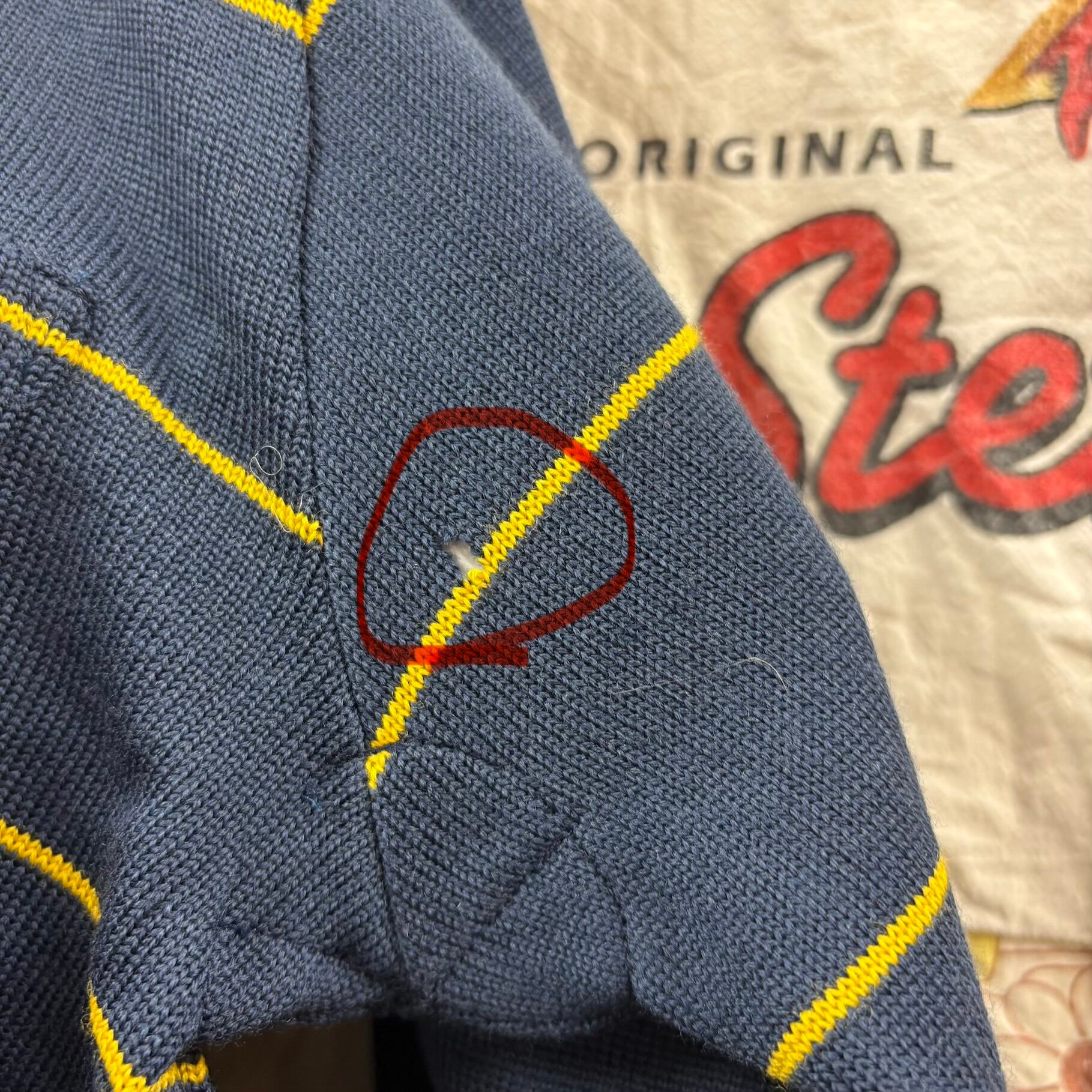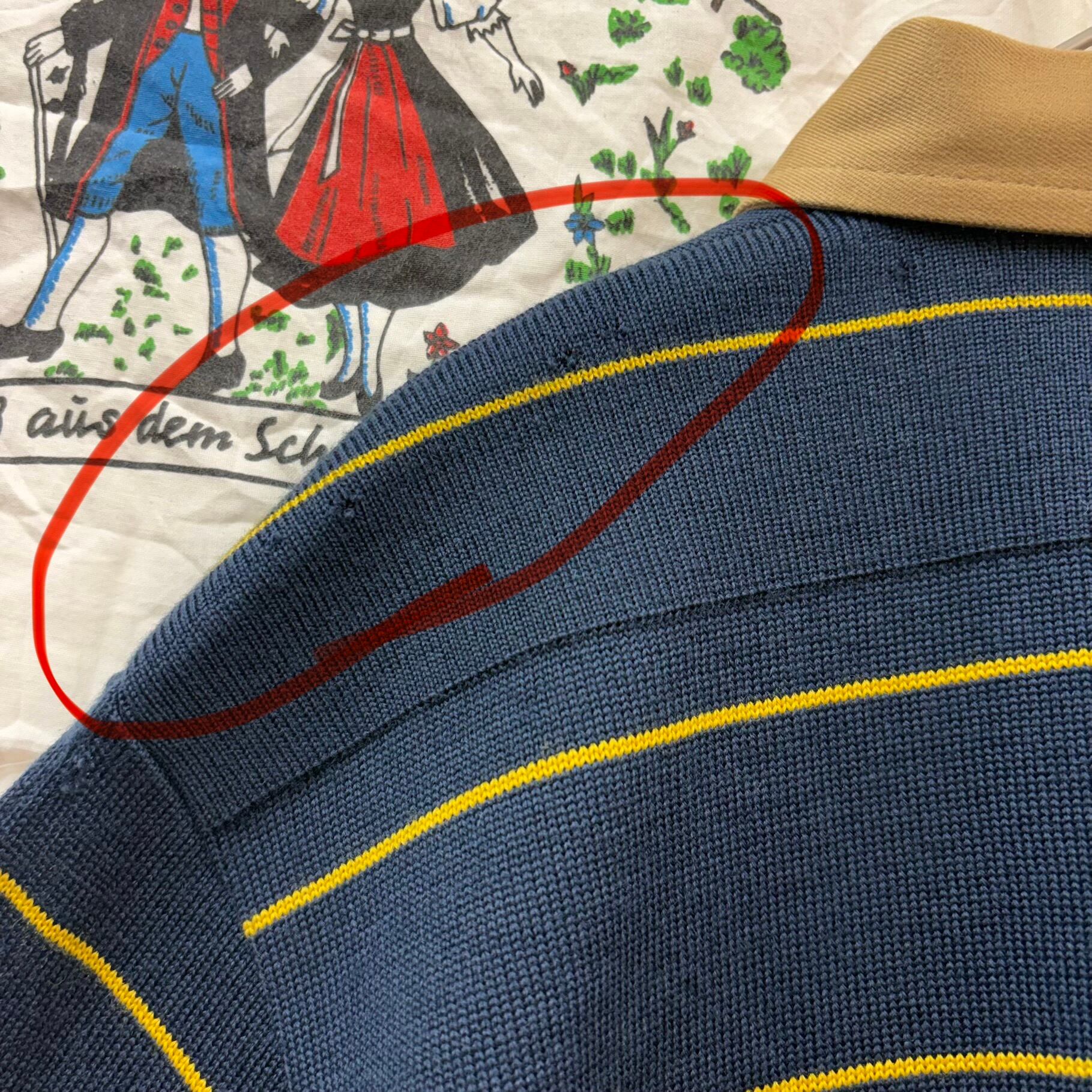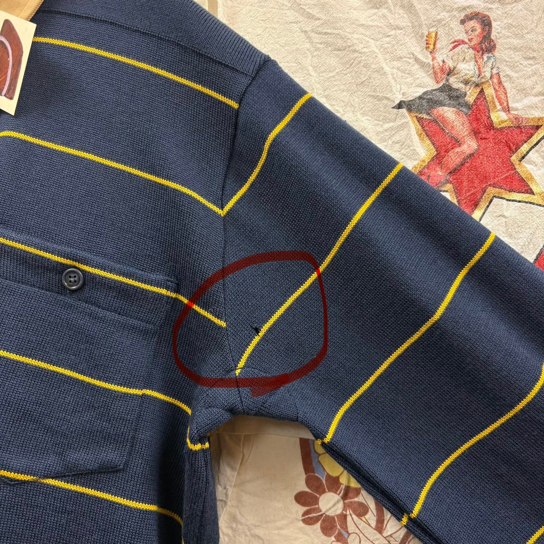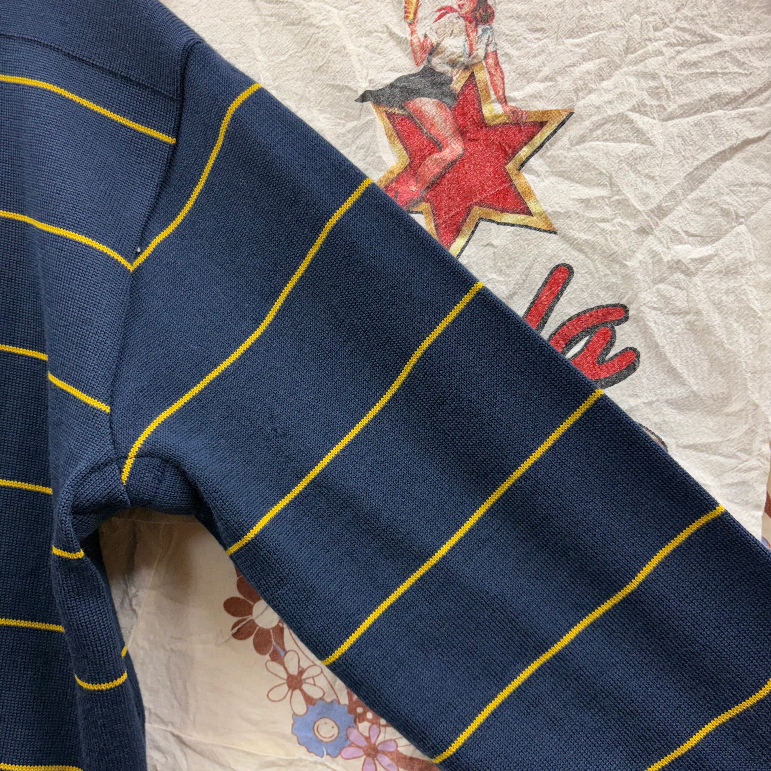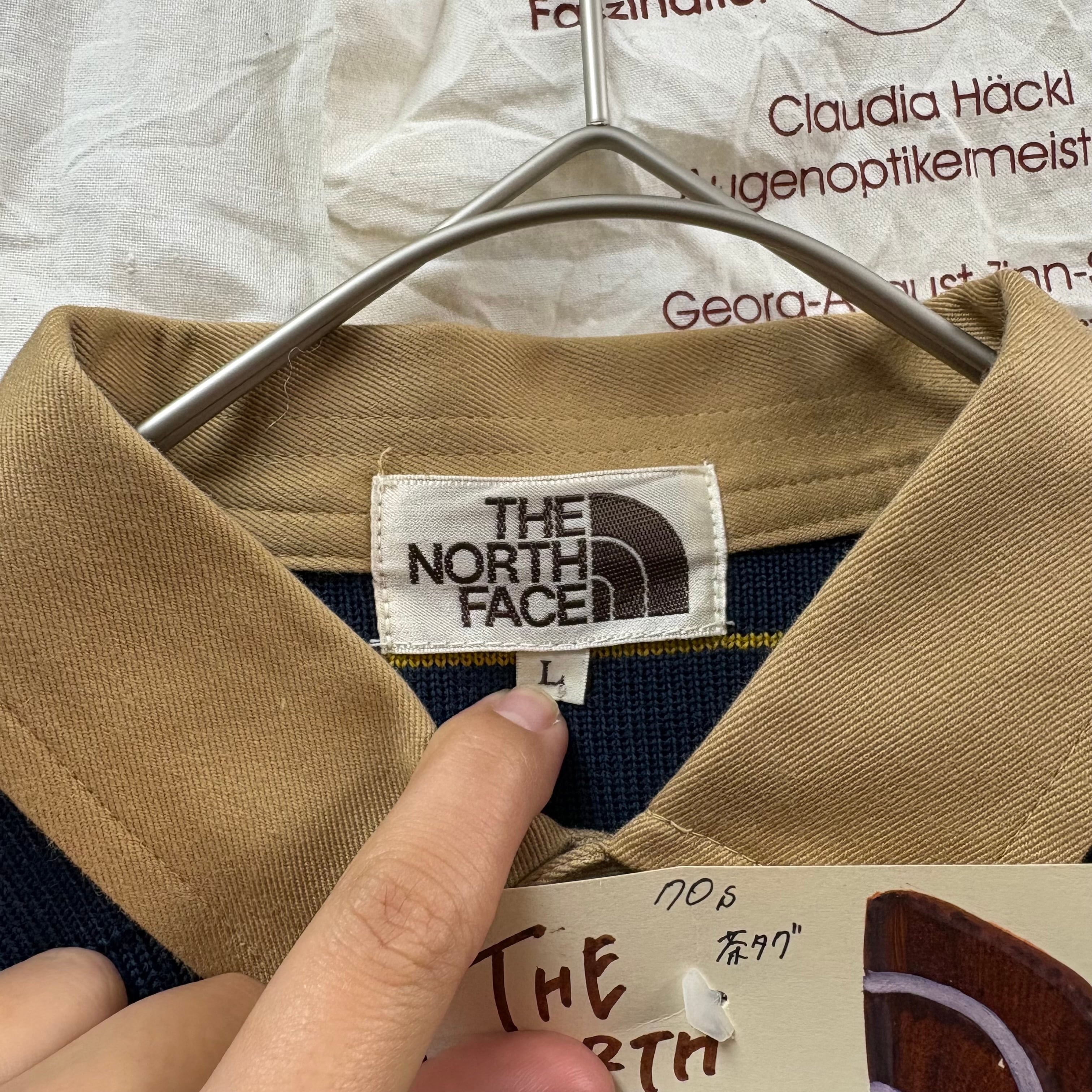 【穴あき】70s 茶タグ THE NORTH FACE 胸ポケットボーダーニット長袖ポロシャツ