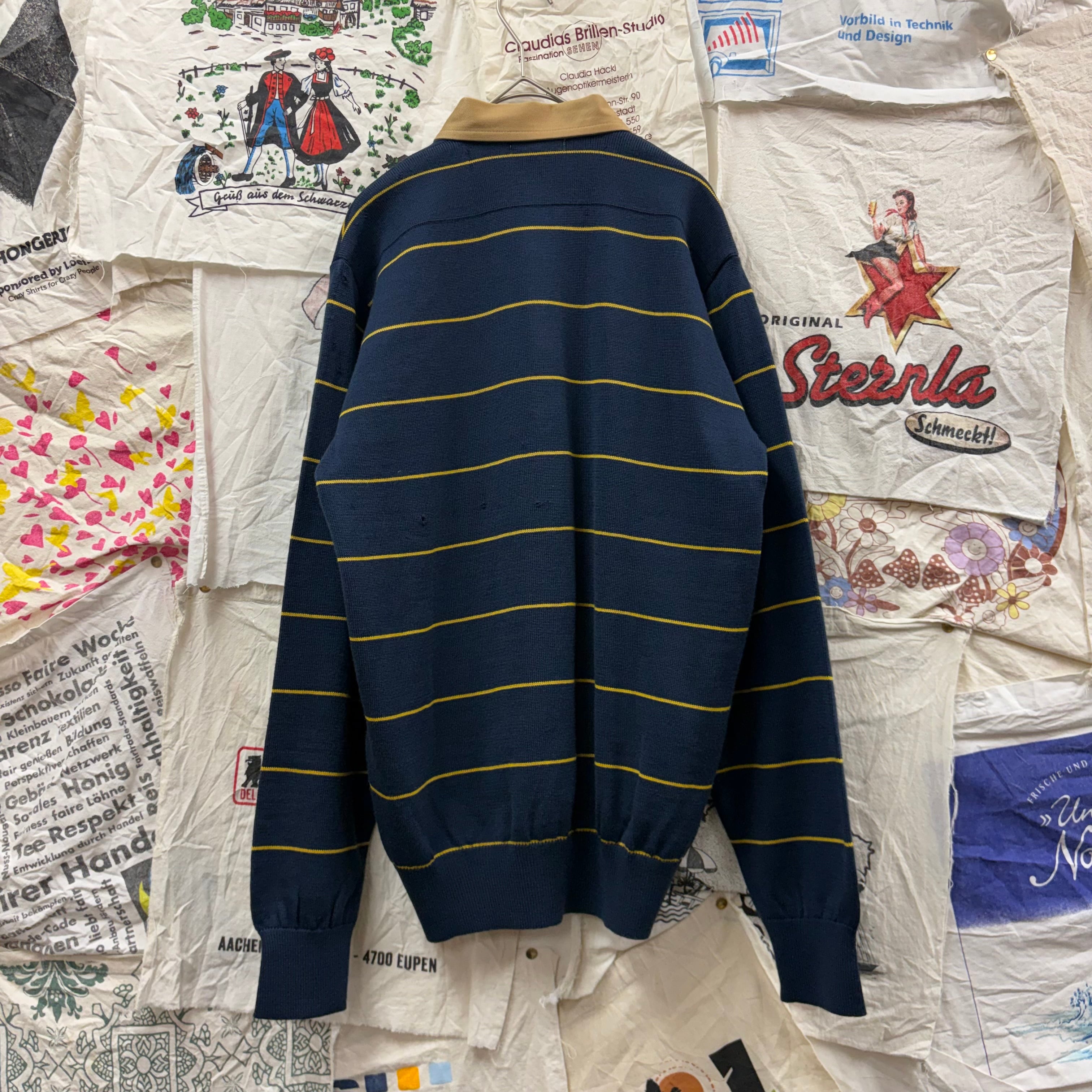 70s 茶タグ THE NORTH FACE 胸ポケットボーダーニット長袖ポロシャツとなっております。