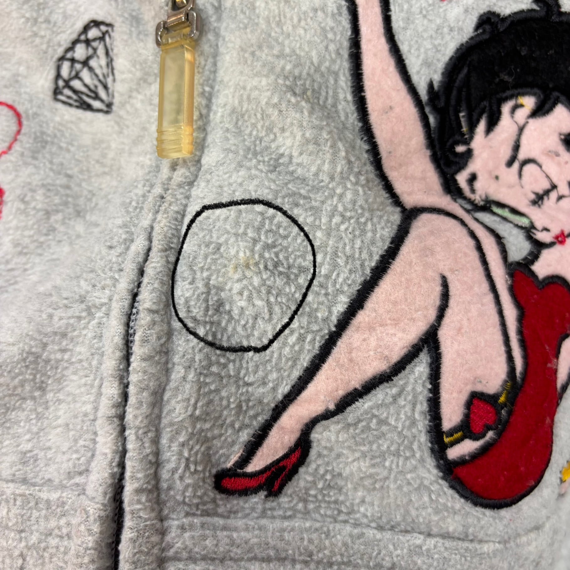 00s BETTY BOOP SPOILED ワッペンベティちゃん刺繍フリースフルジップパーカー
