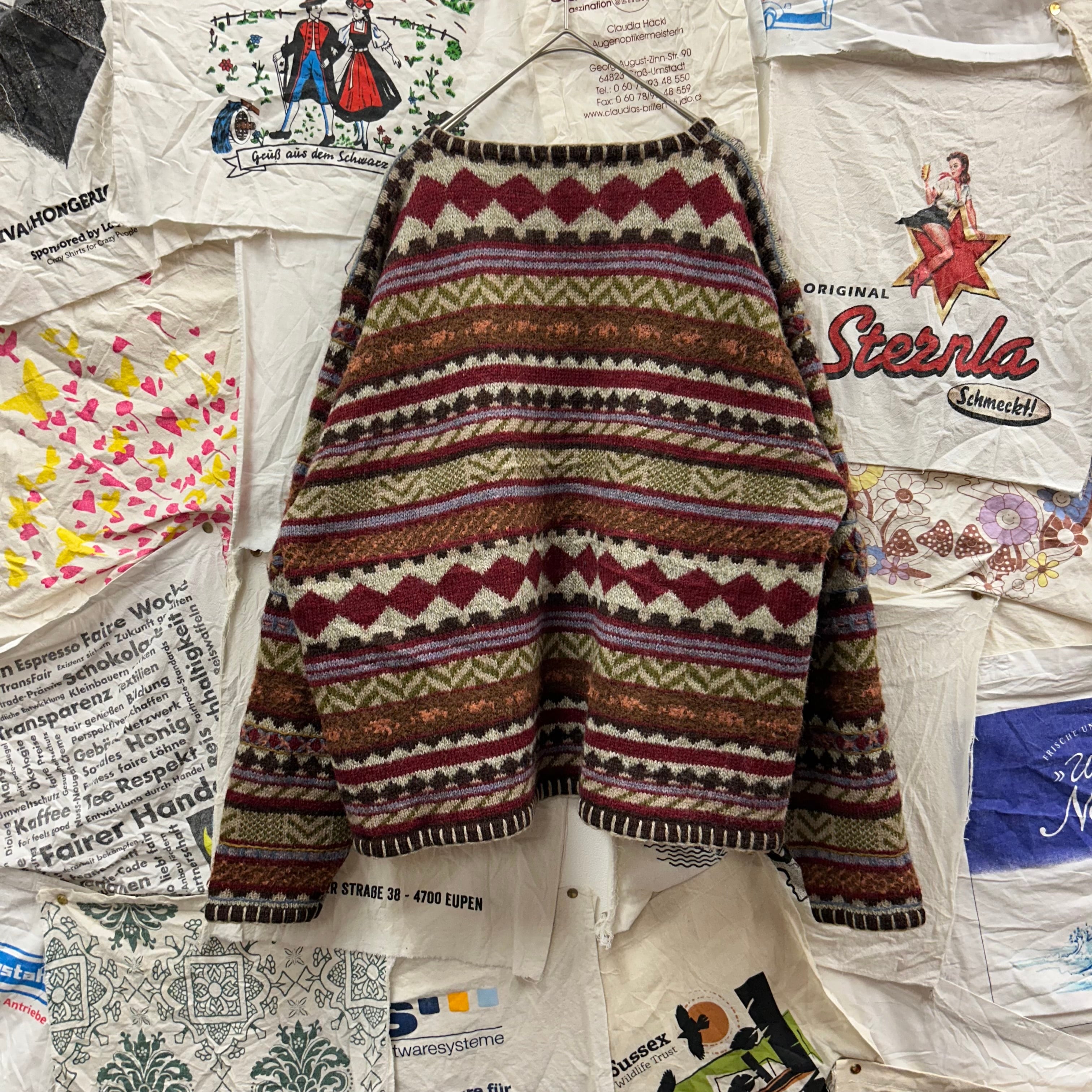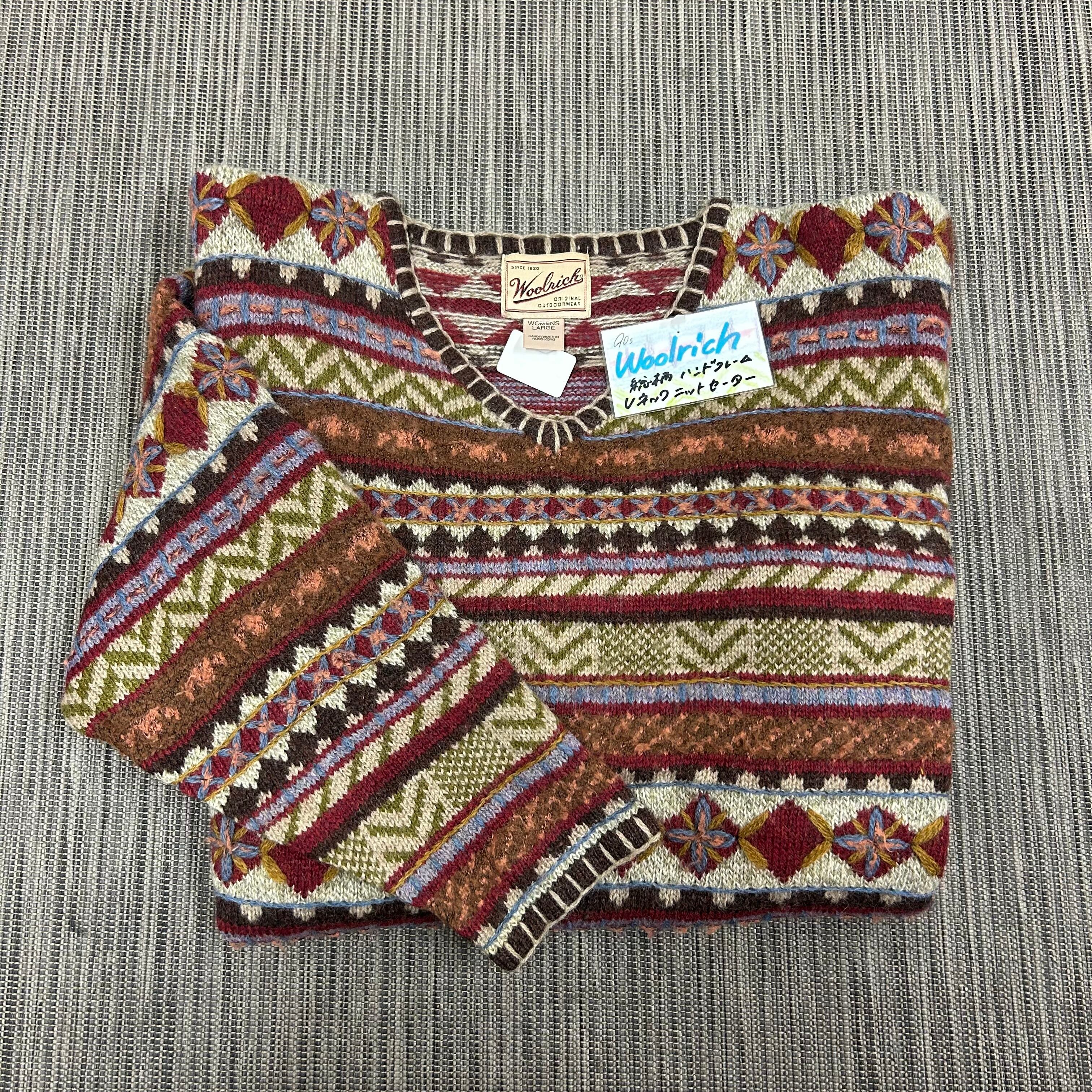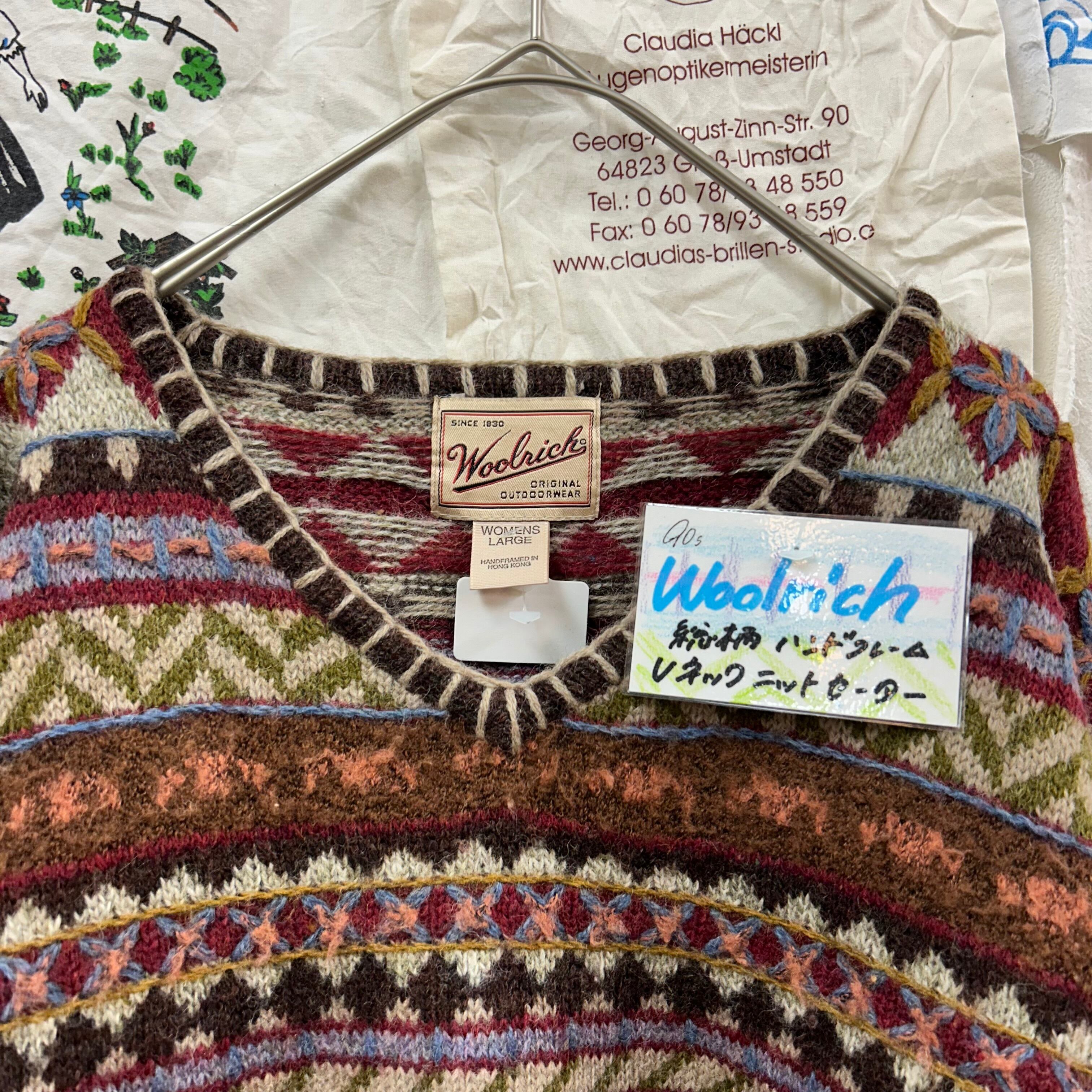 90s Woolrich 総柄ハンドフレームVネックニットセーター