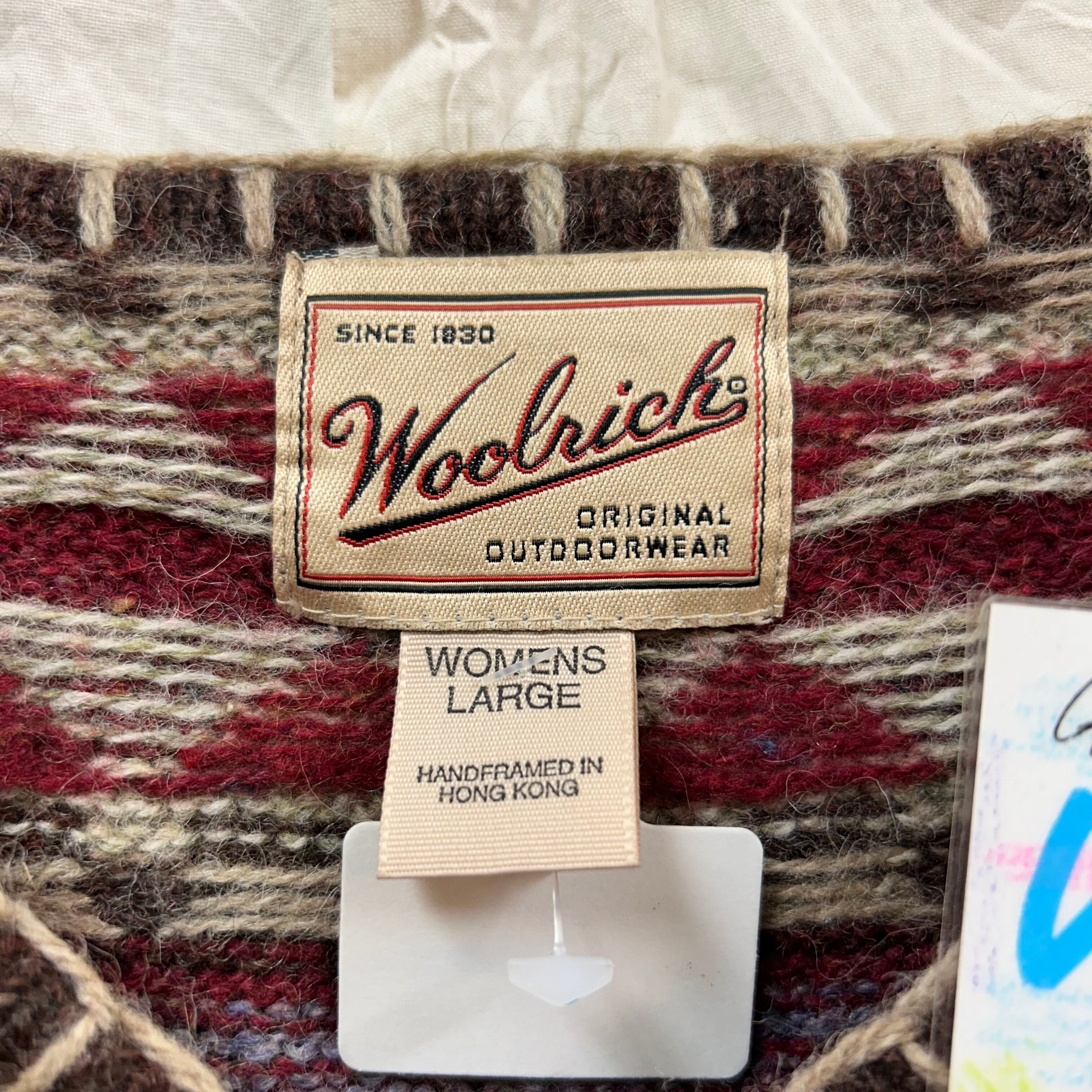 90s Woolrich 総柄ハンドフレームVネックニットセーターとなっております。