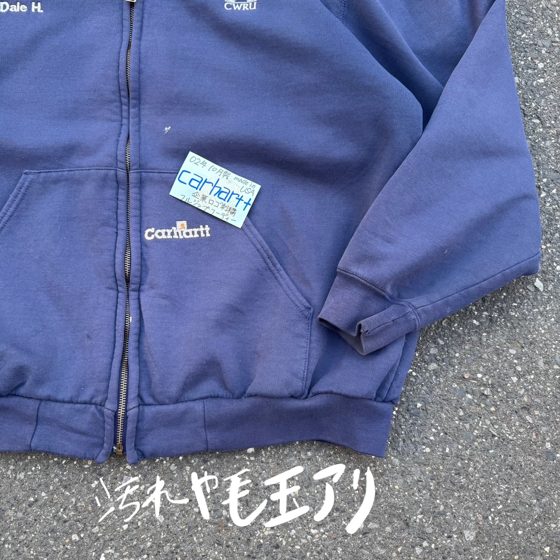 02年 10月製 Made in USA Carhartt 企業ロゴ刺繍フルジップフーディーとなっております。