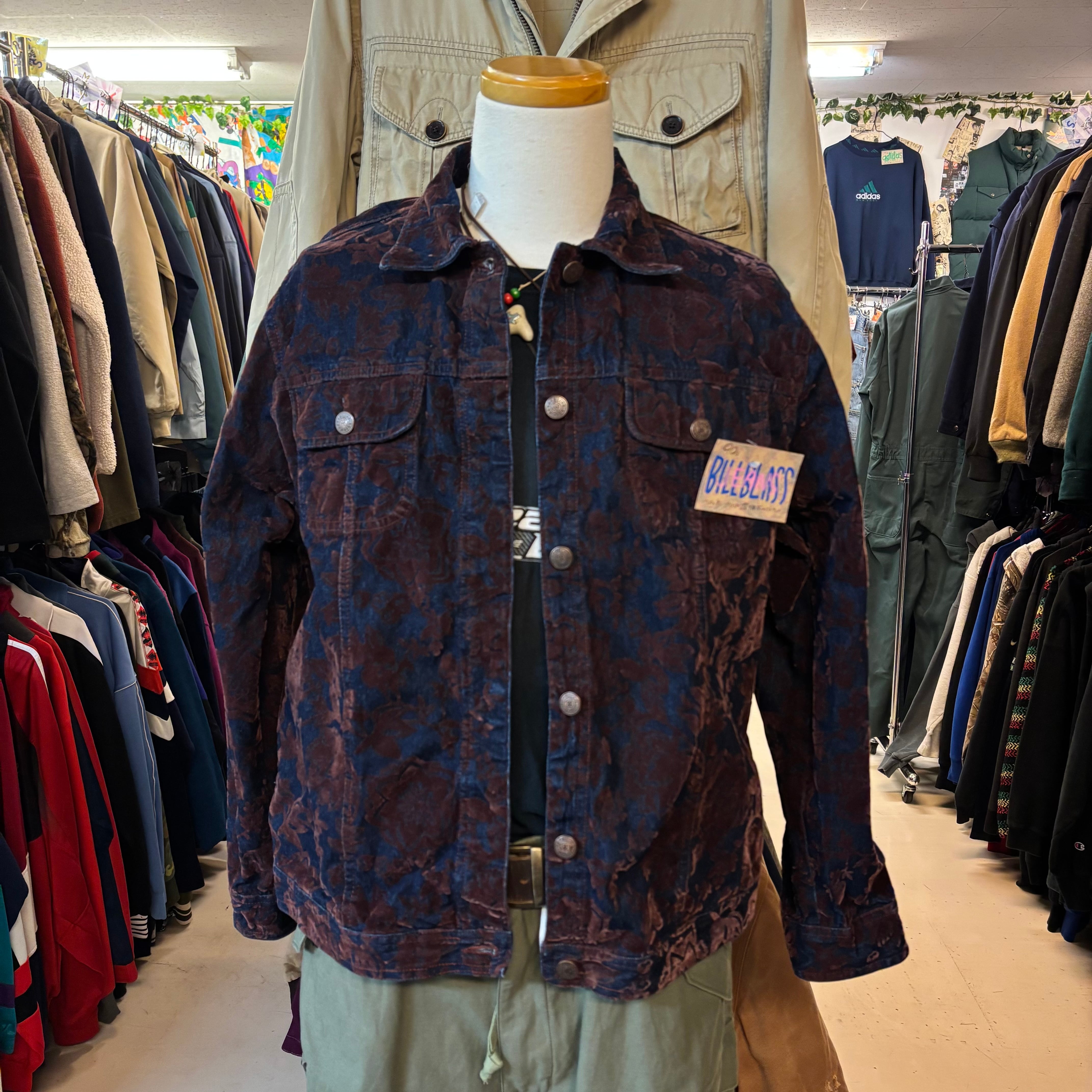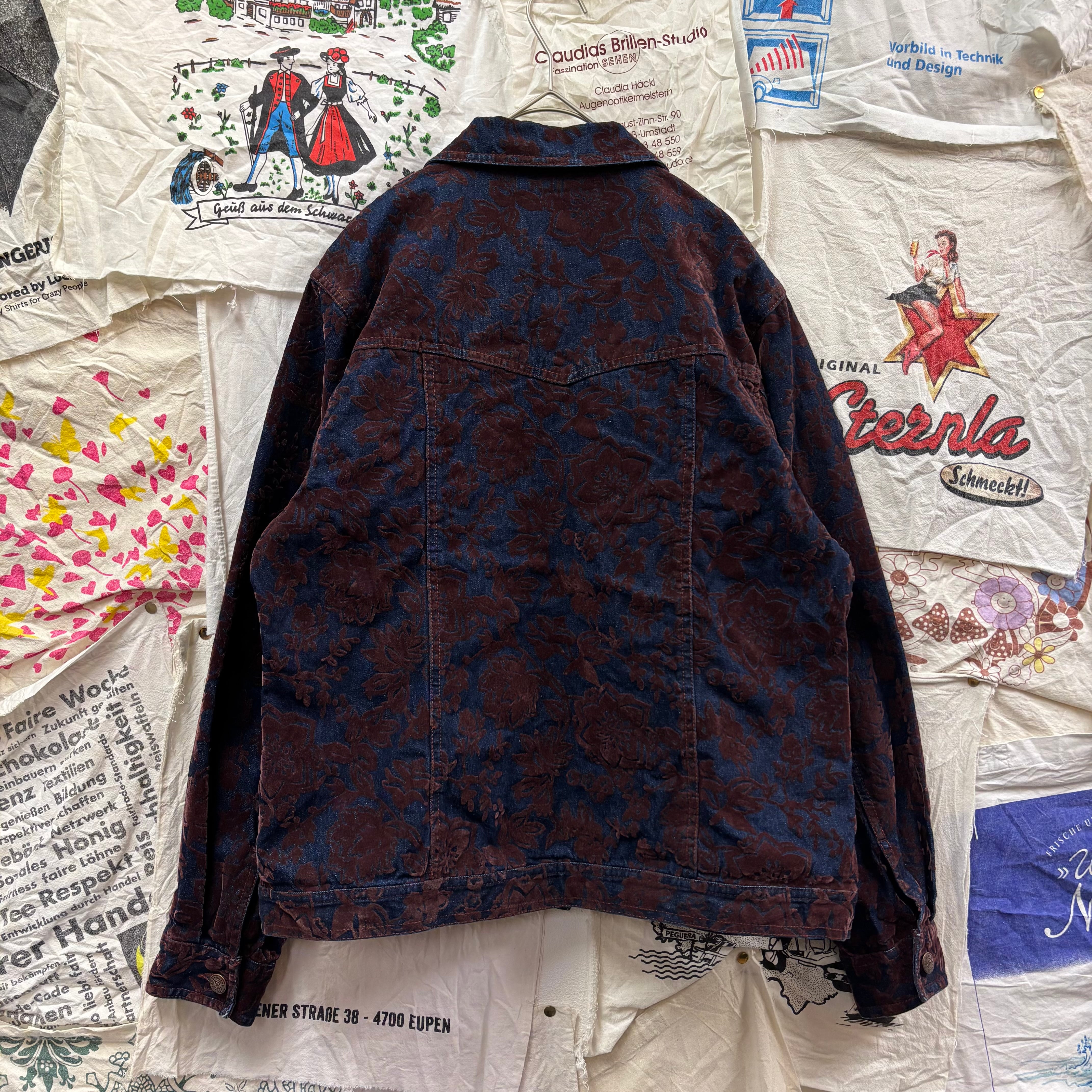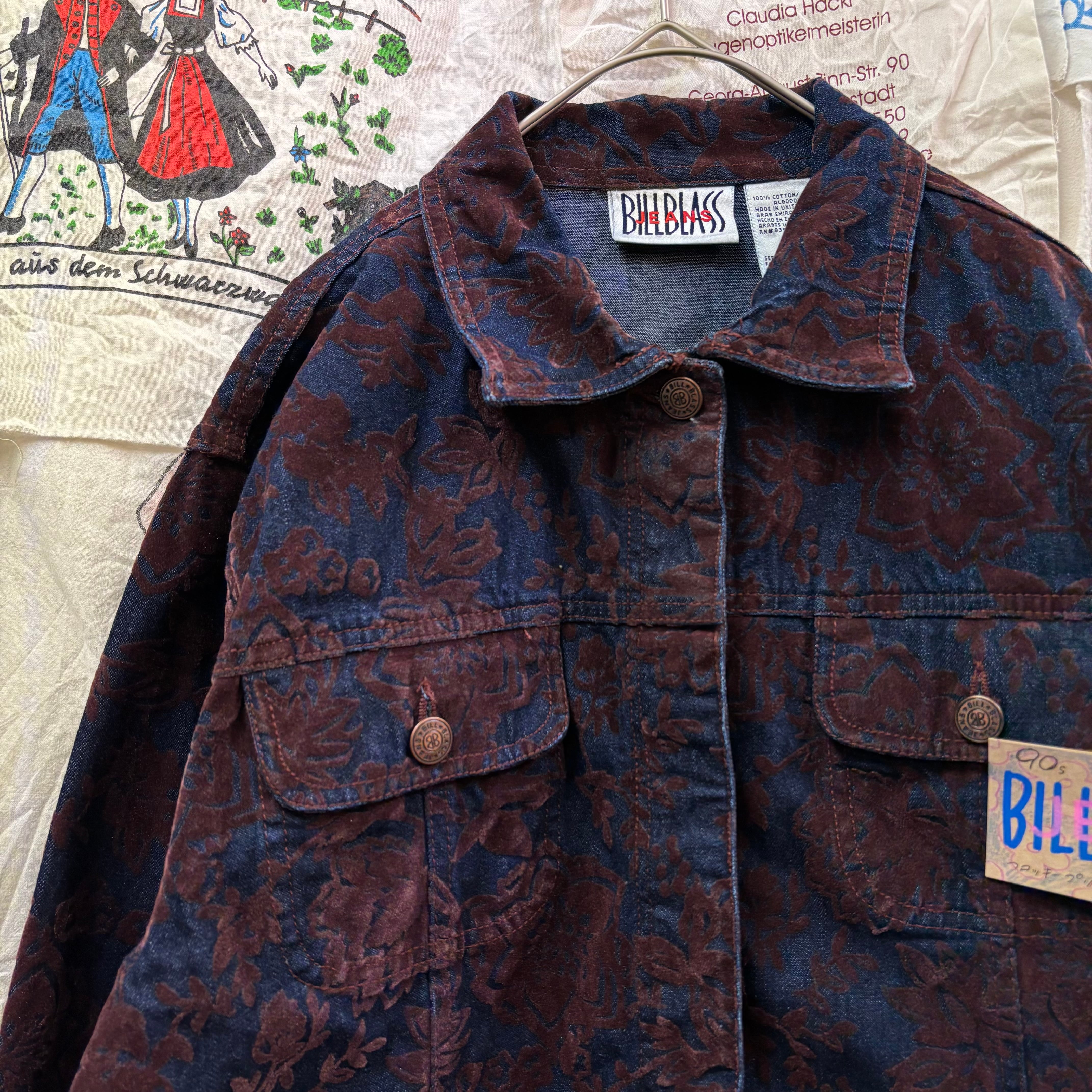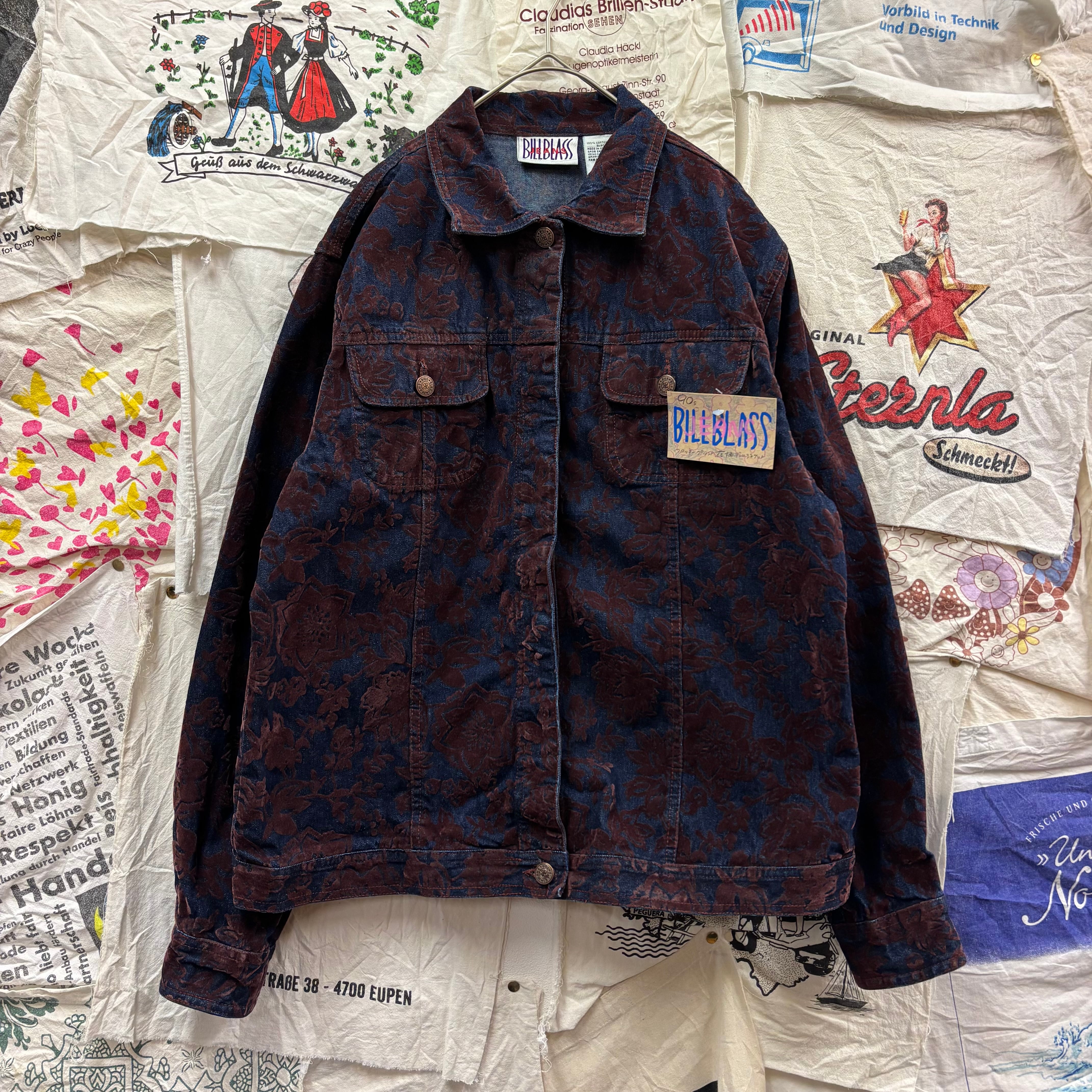 90s BILLBLASS JEANS フロッキープリント花柄デニムジャケット