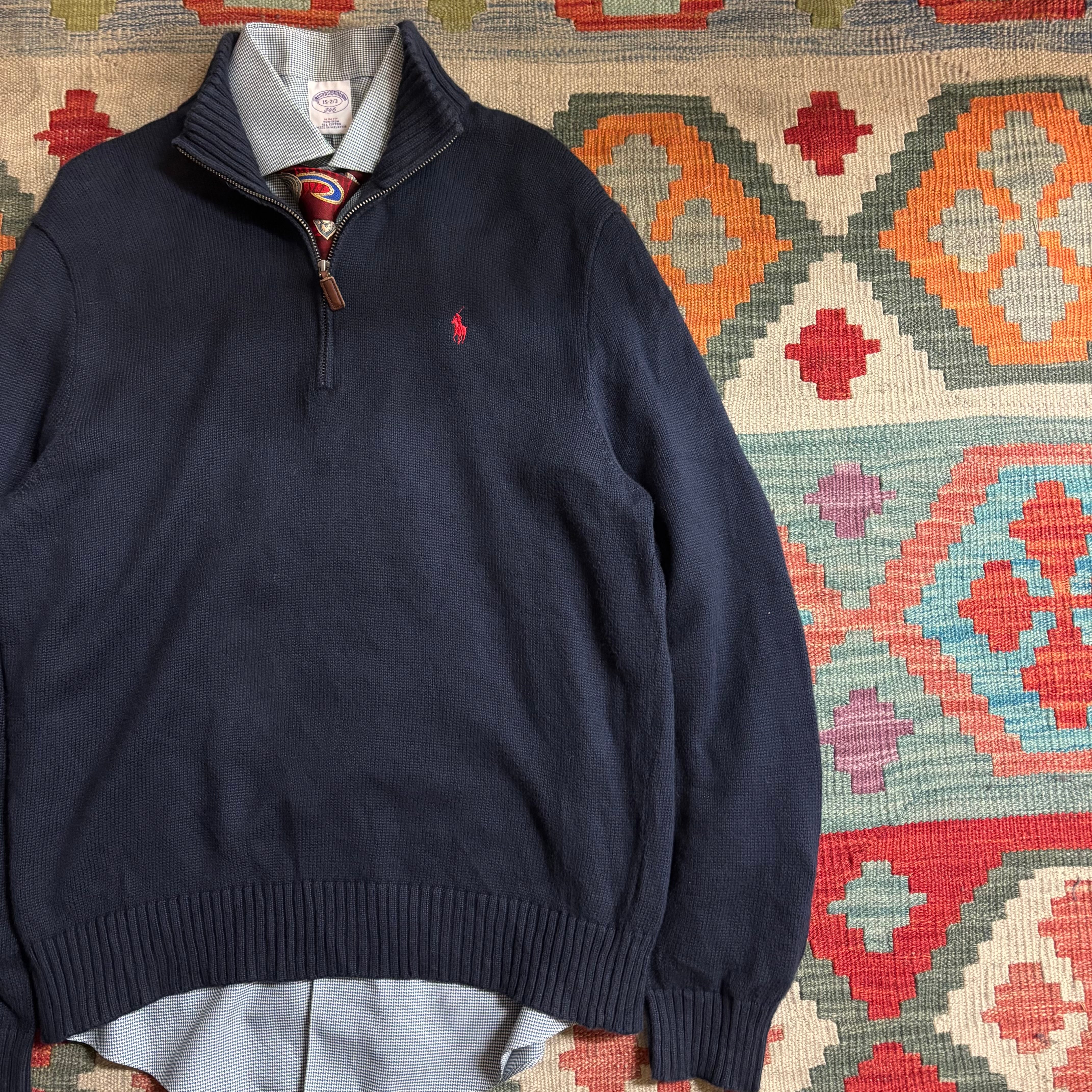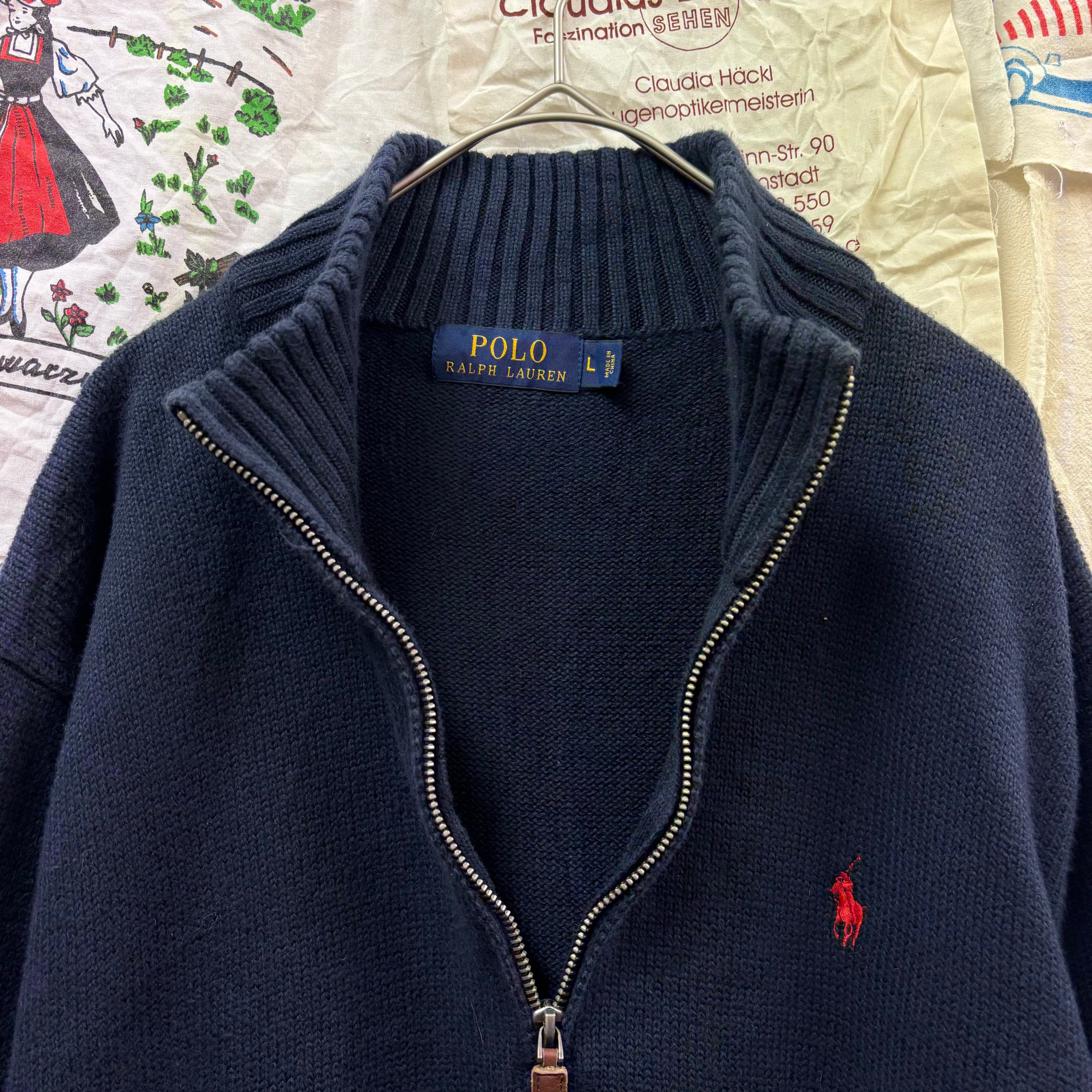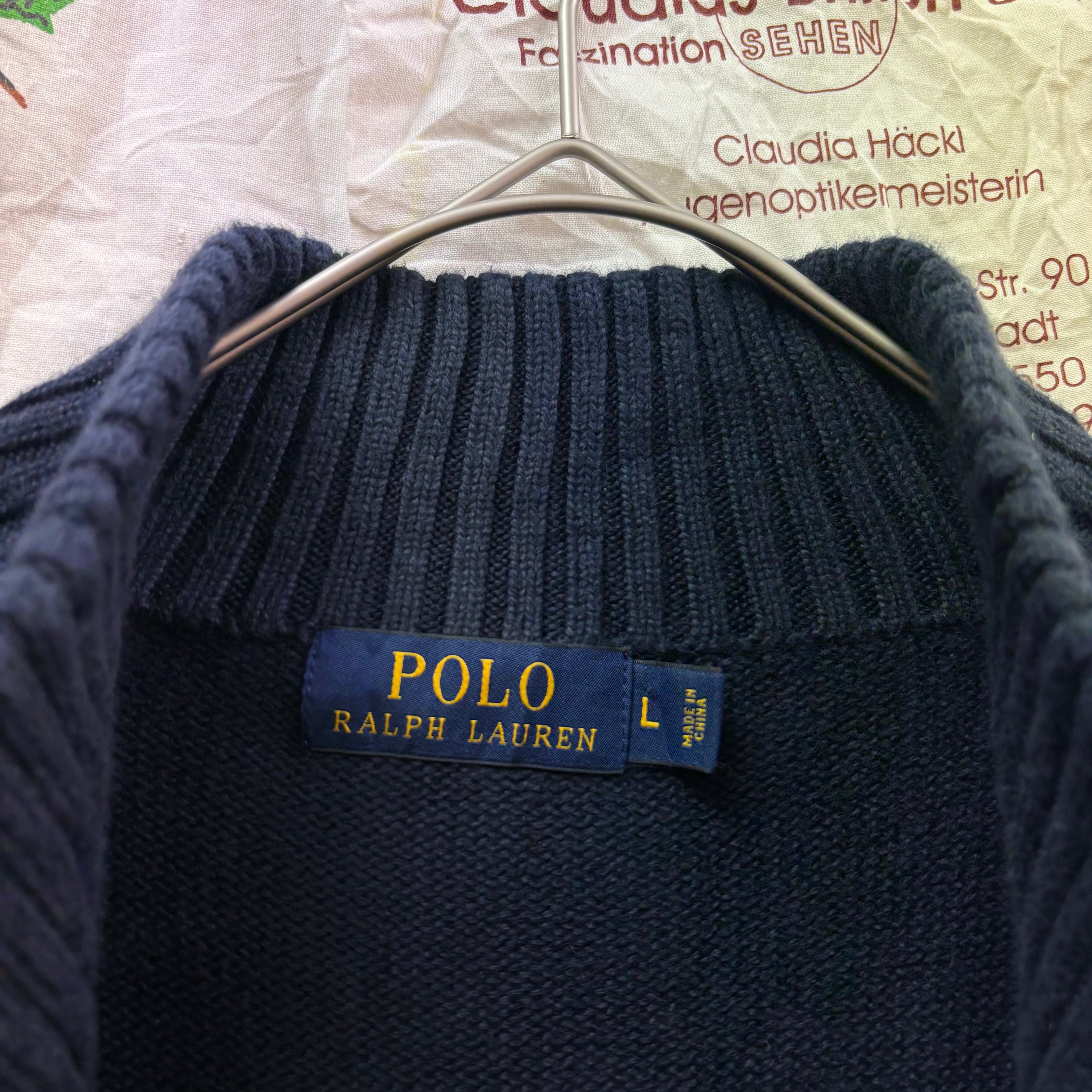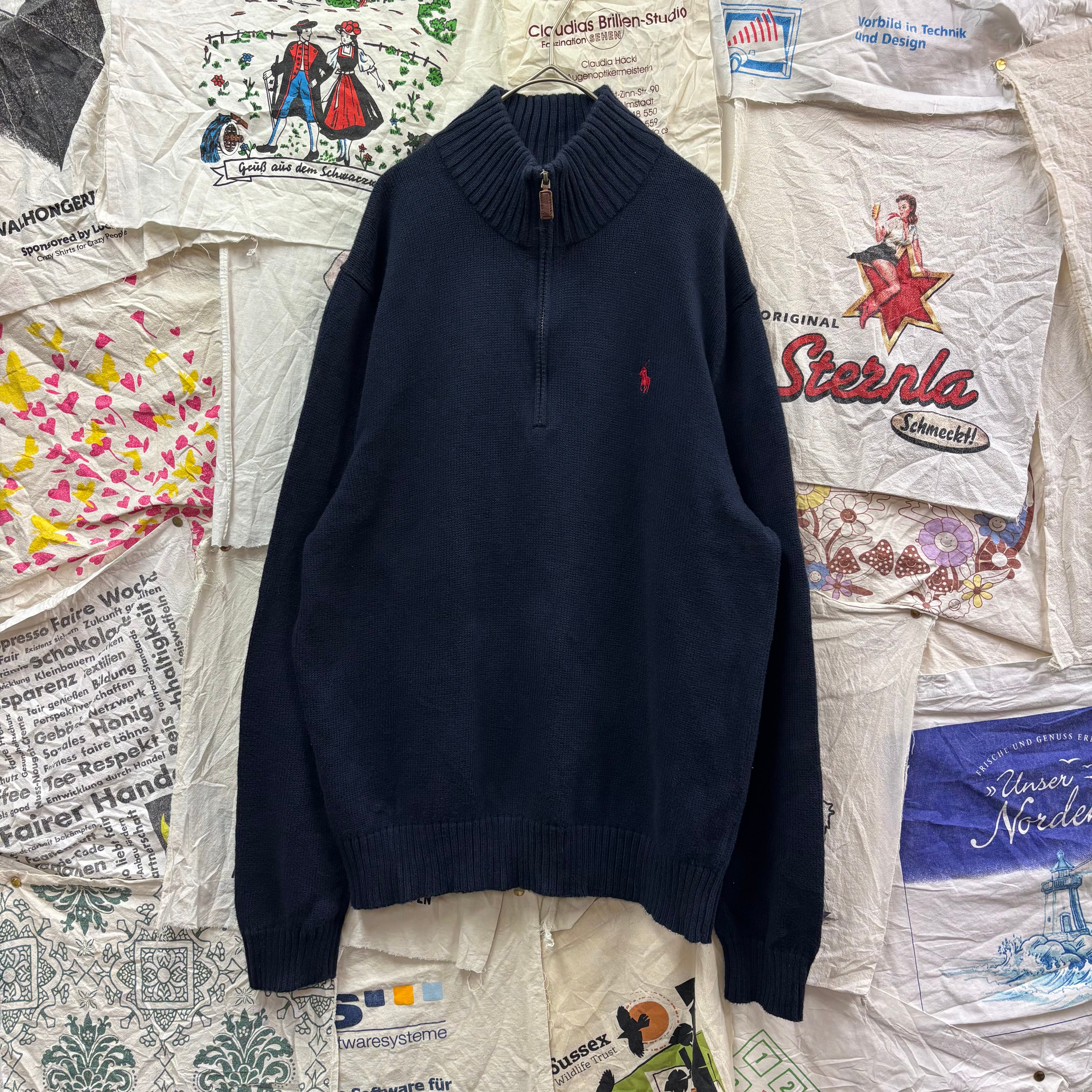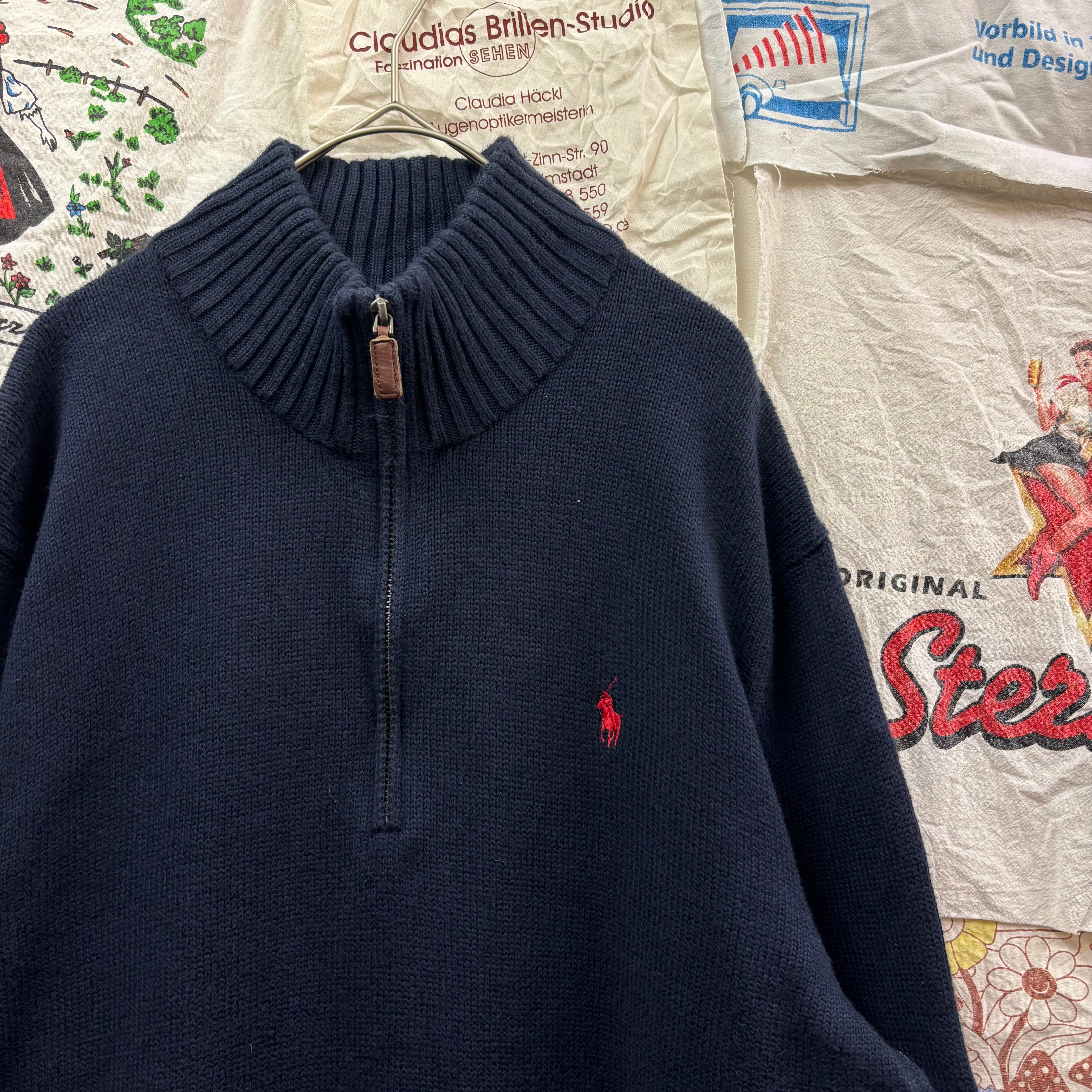 Polo Ralph Lauren ワンポイント刺繍ハーフジップニットセーター ネイビー