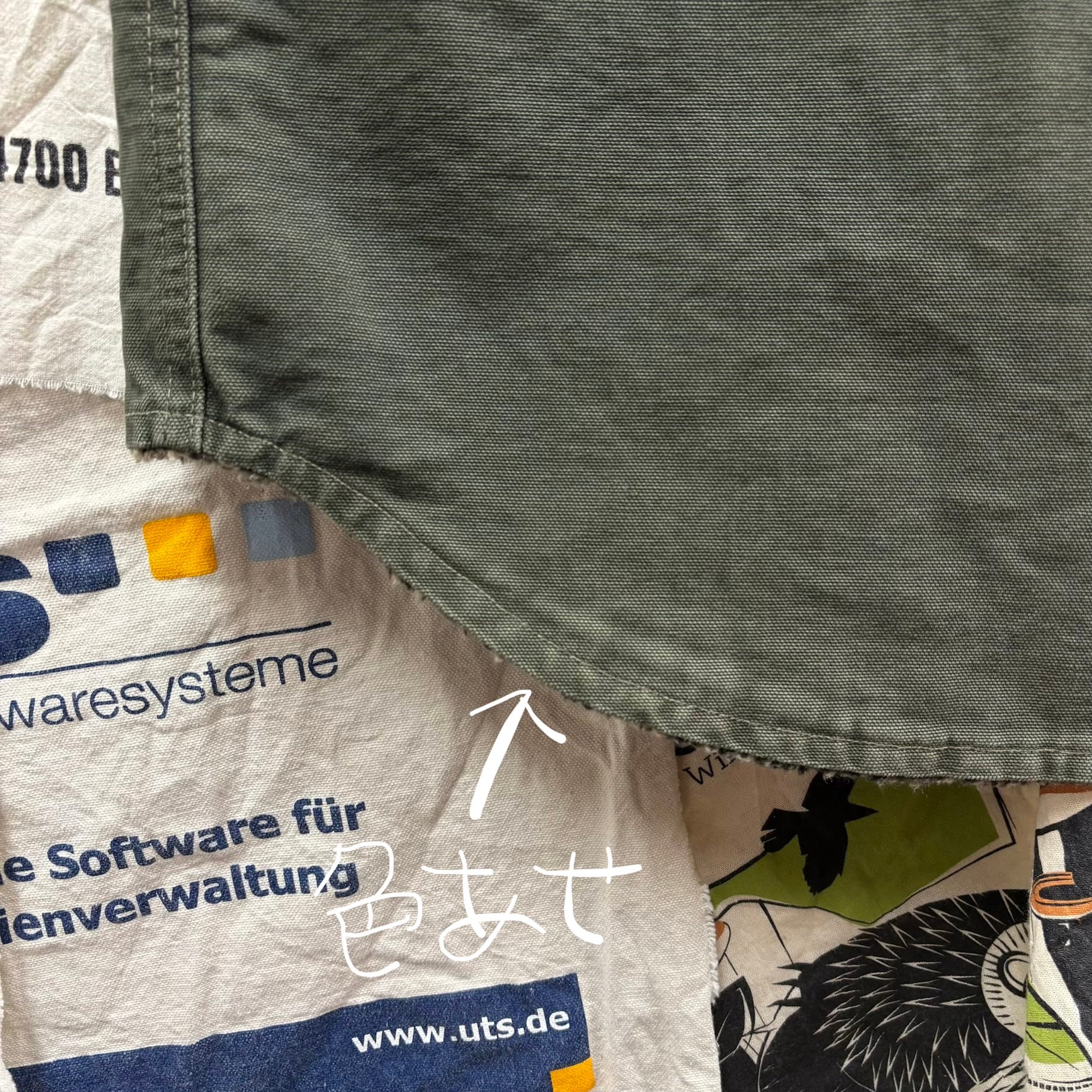 落ち着いたモスグリーンなので、どんな色のパンツとも相性が良いです。