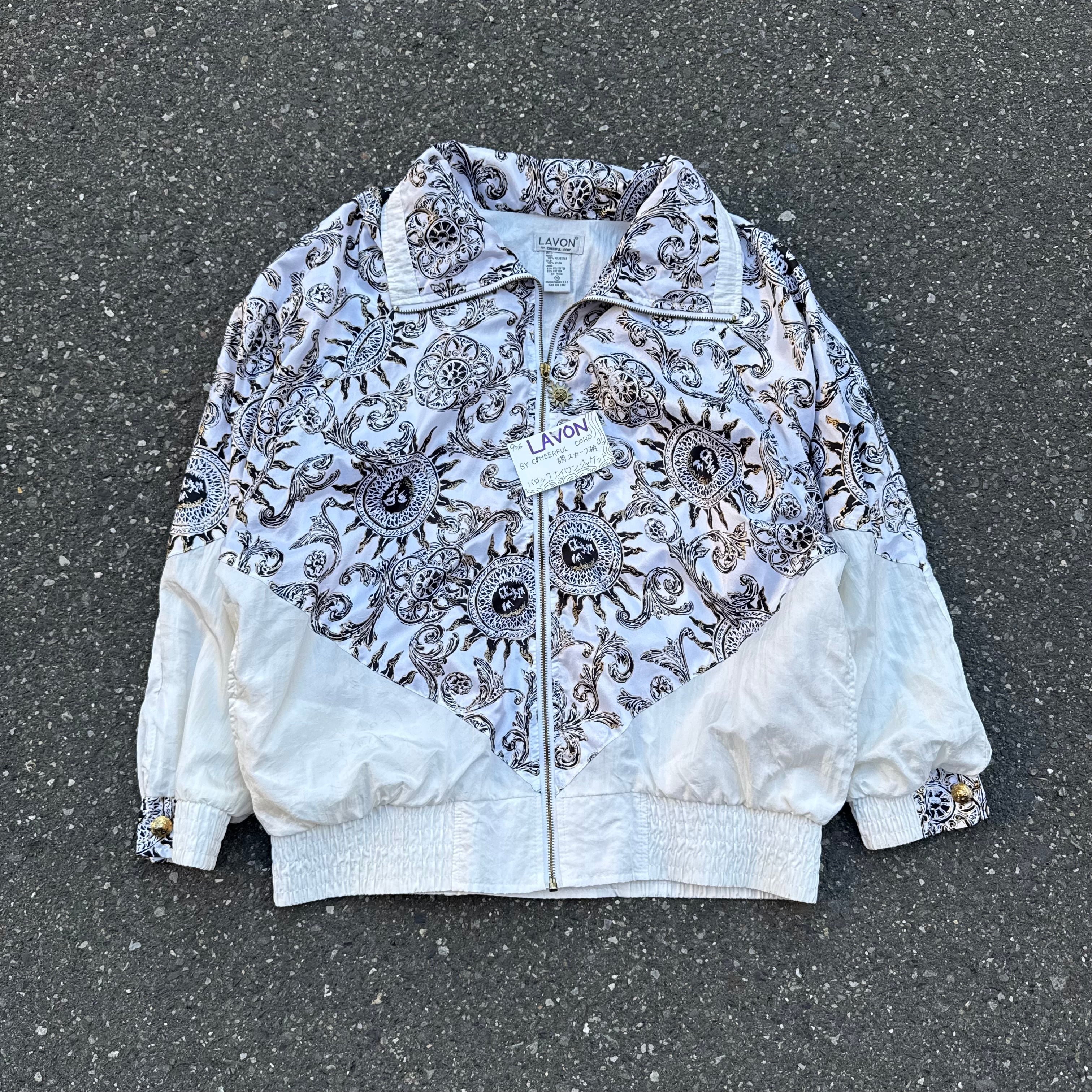 90s LAVON BY CHEERFUL CORP調スカーフ柄 バロックナイロンジャケット となっております。
