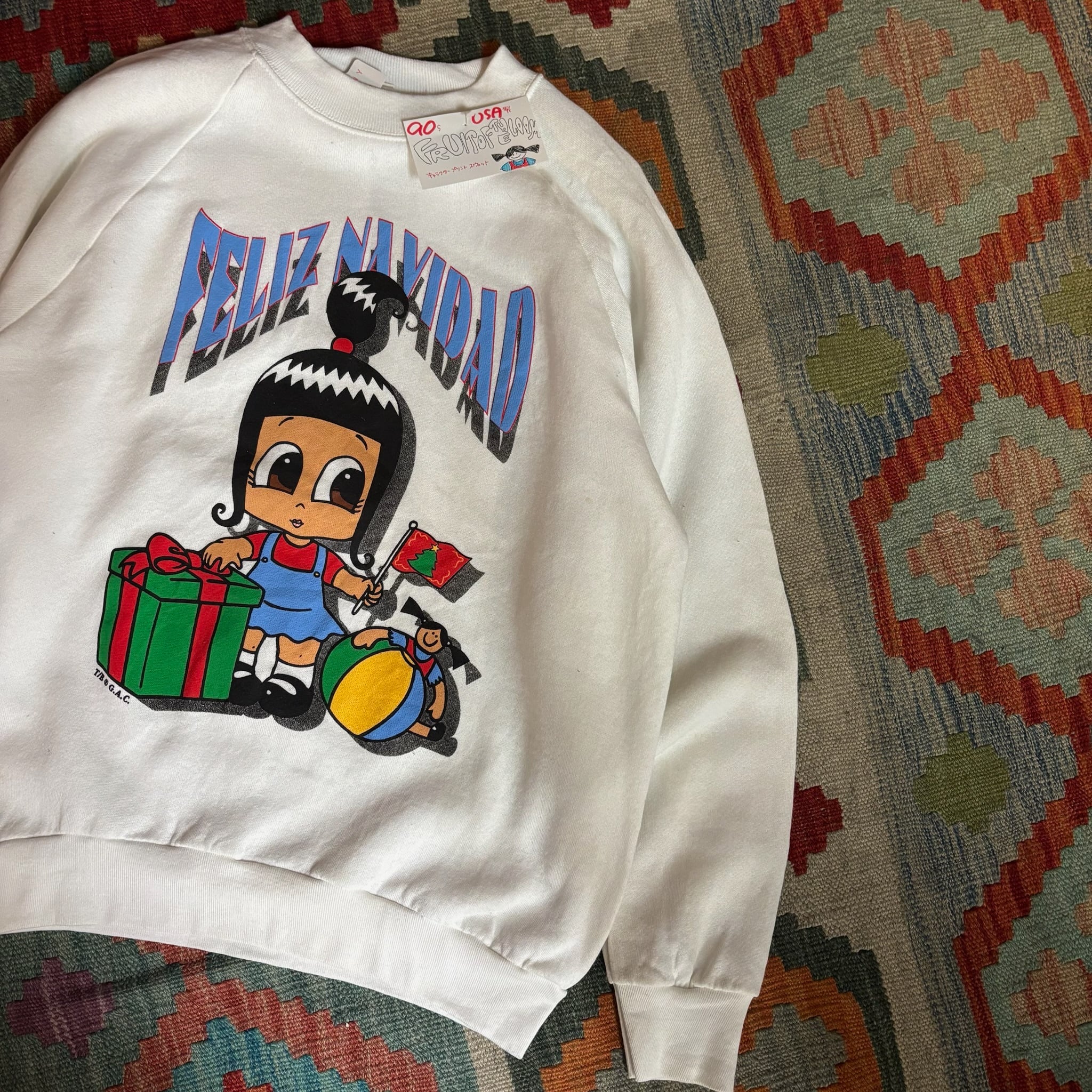 スペイン語で「メリークリスマス」を意味する”Feliz Navidad”のロゴとともに、大きな瞳が印象的な可愛らしい女の子のキャラクターがプリントされています。
