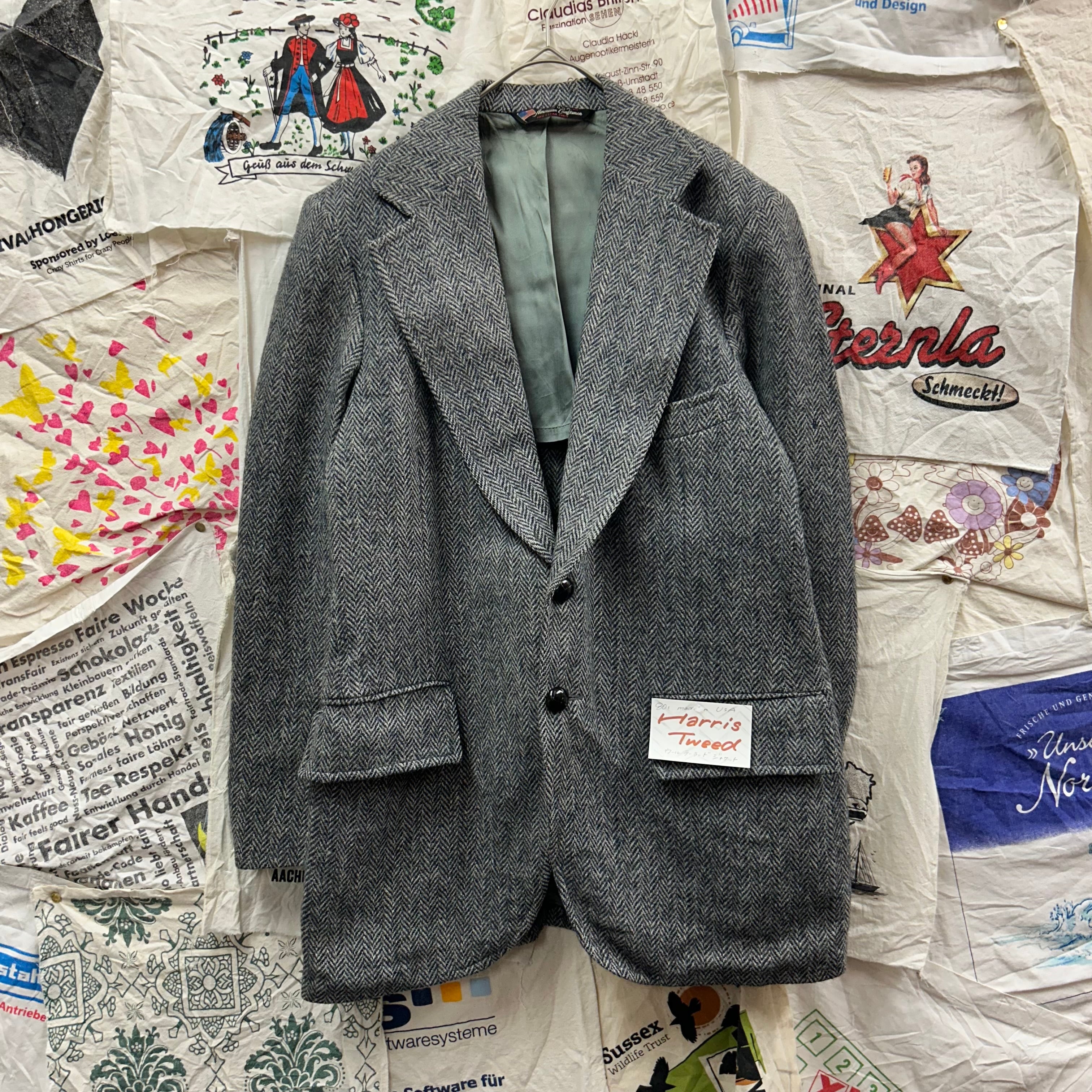 80s USA製 Harris Tweed ウールテーラードジャケット