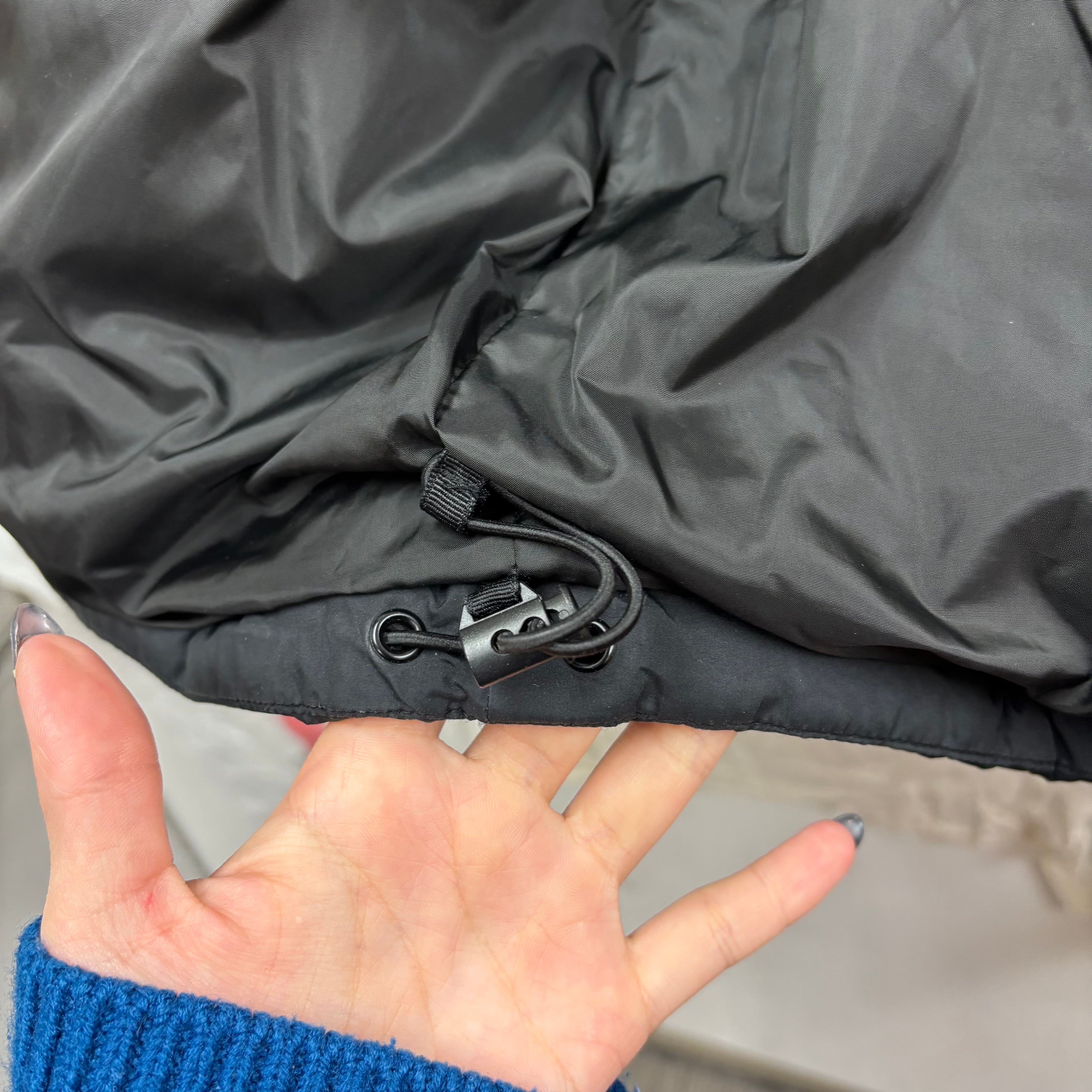 襟元はハイネック仕様で、内側にはボアが施されており、マフラー要らずの暖かさです。