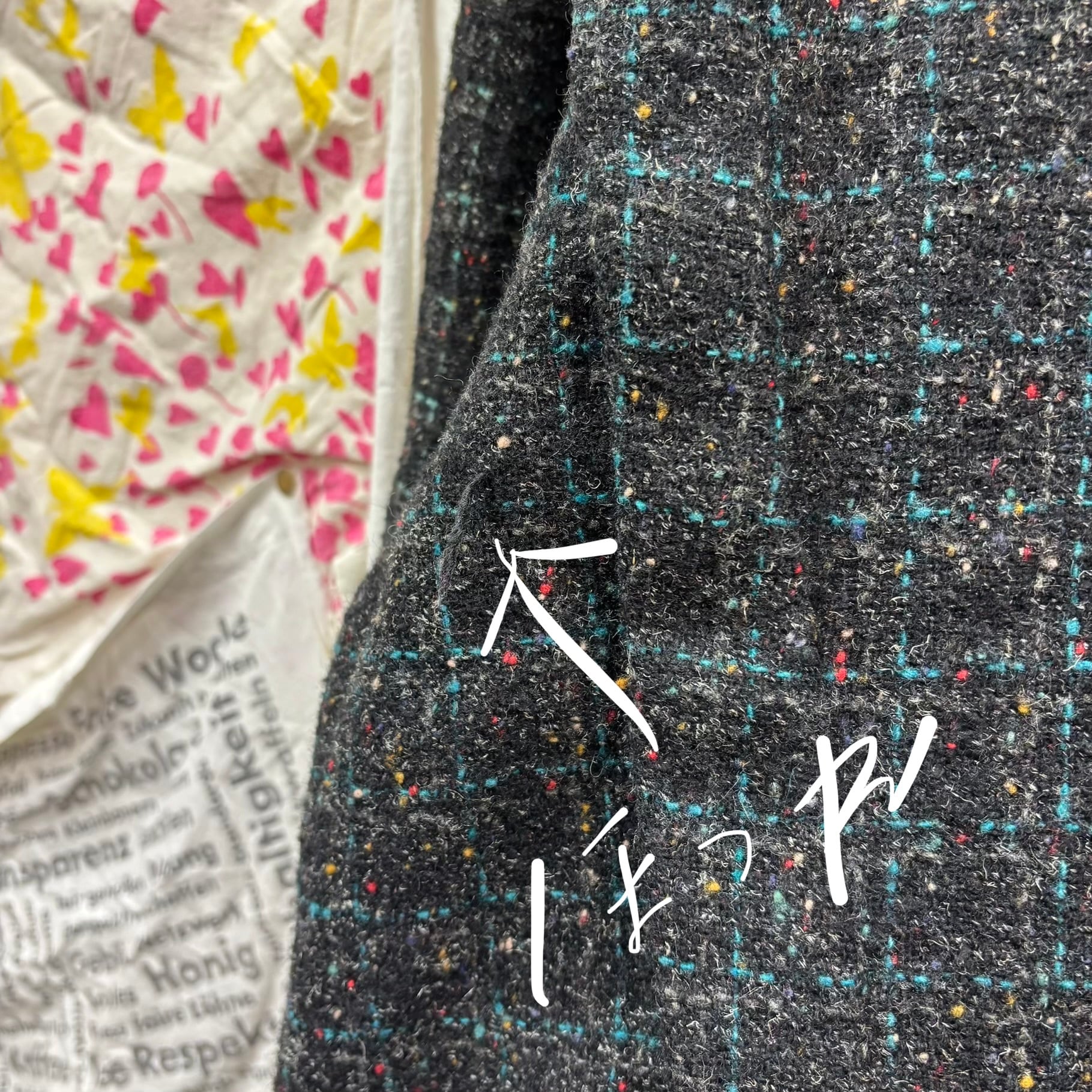 独特のカラーネップが入った表情豊かなツイード生地が目を引く一着。