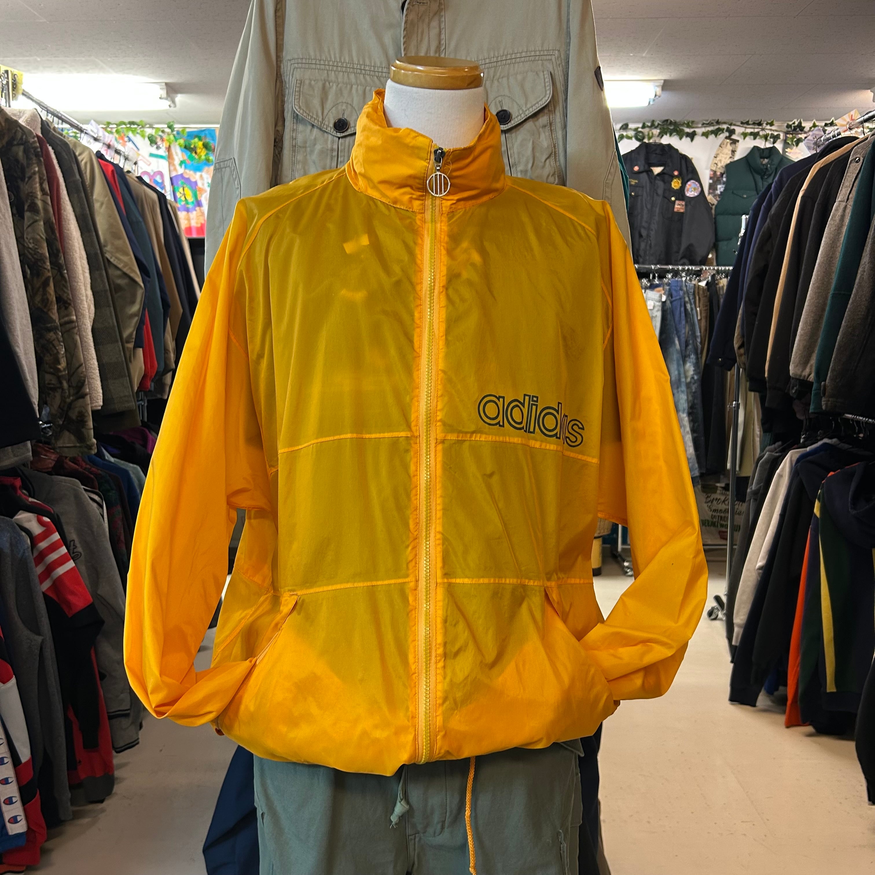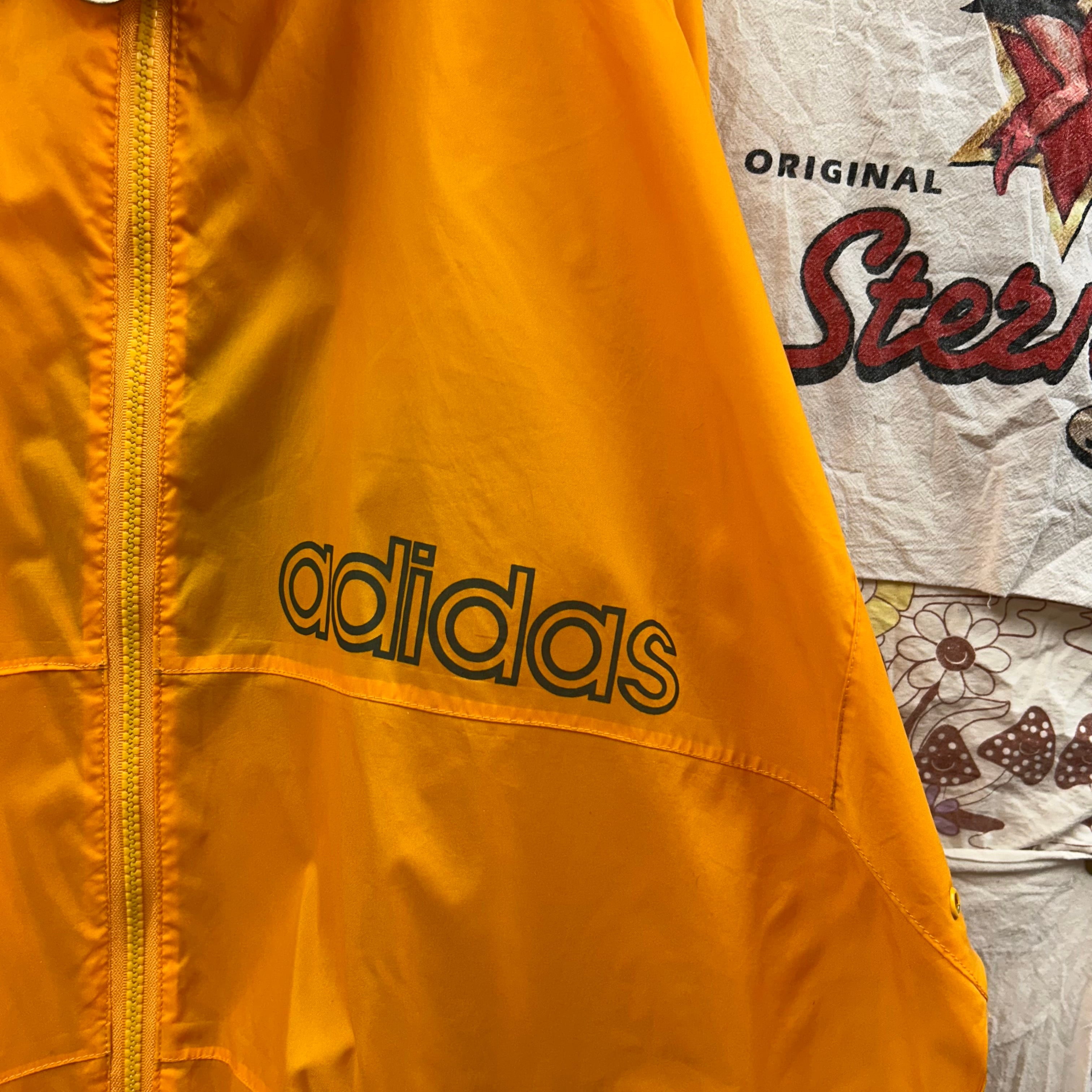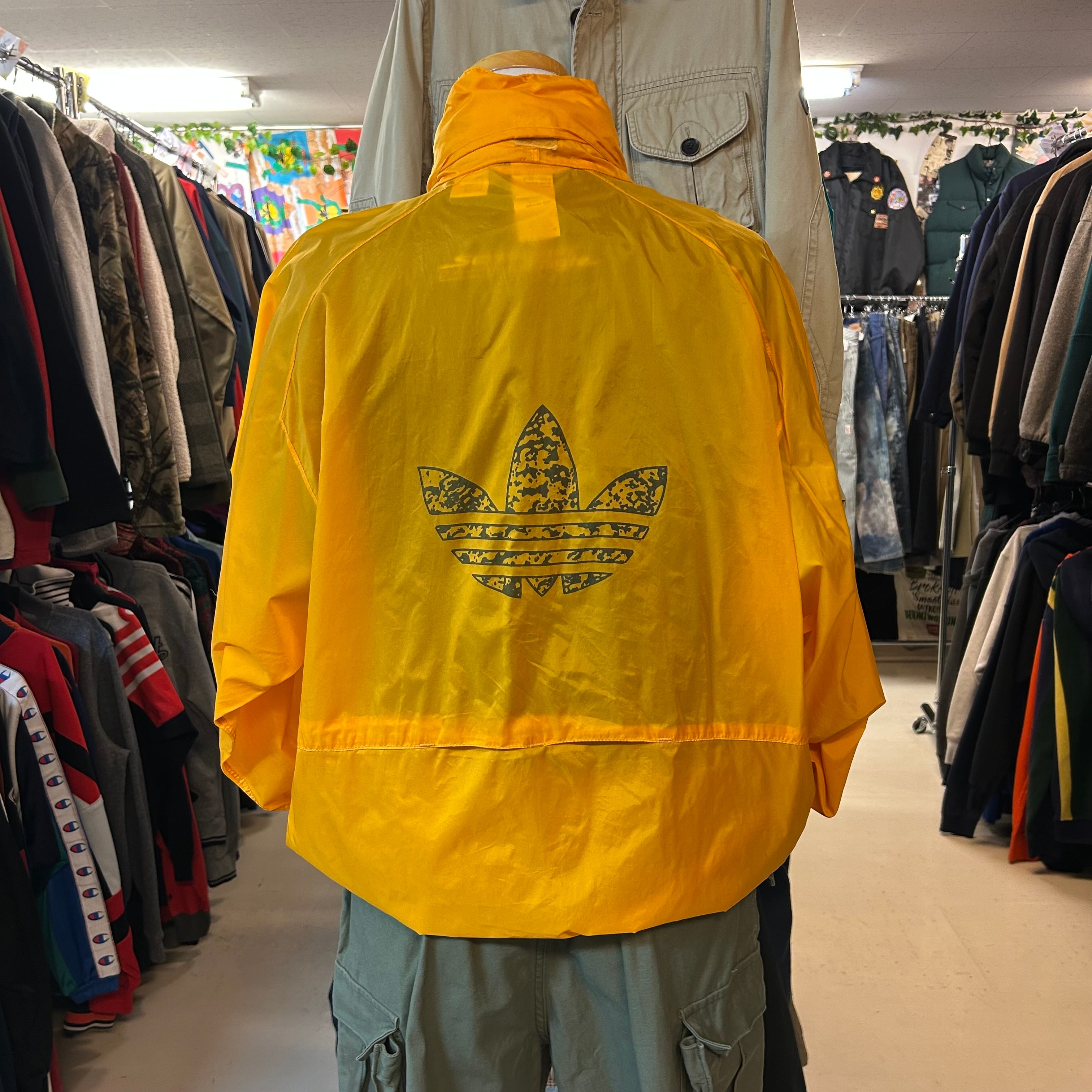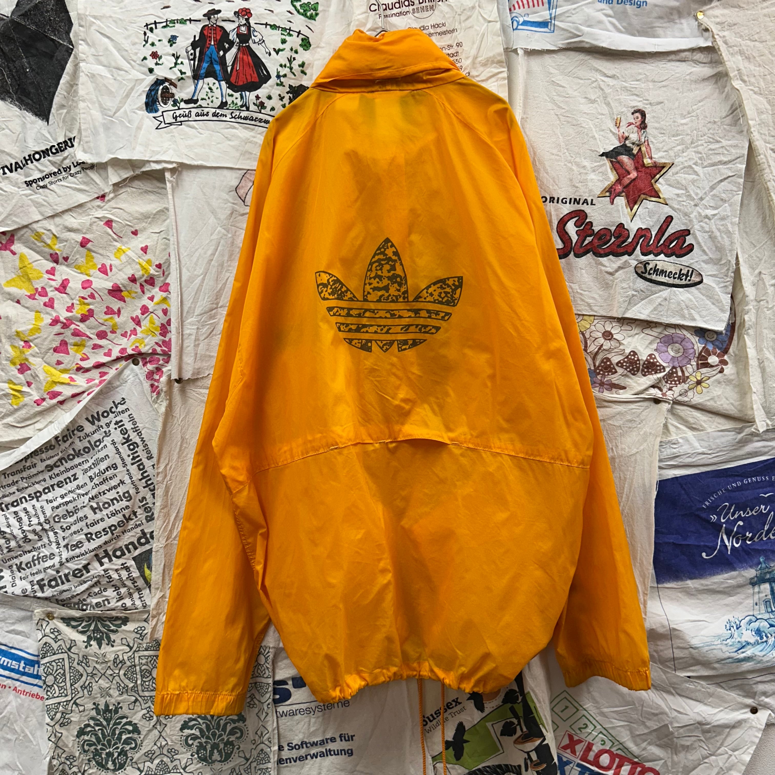 adidas トレフォイルロゴバックプリントナイロンジャケット