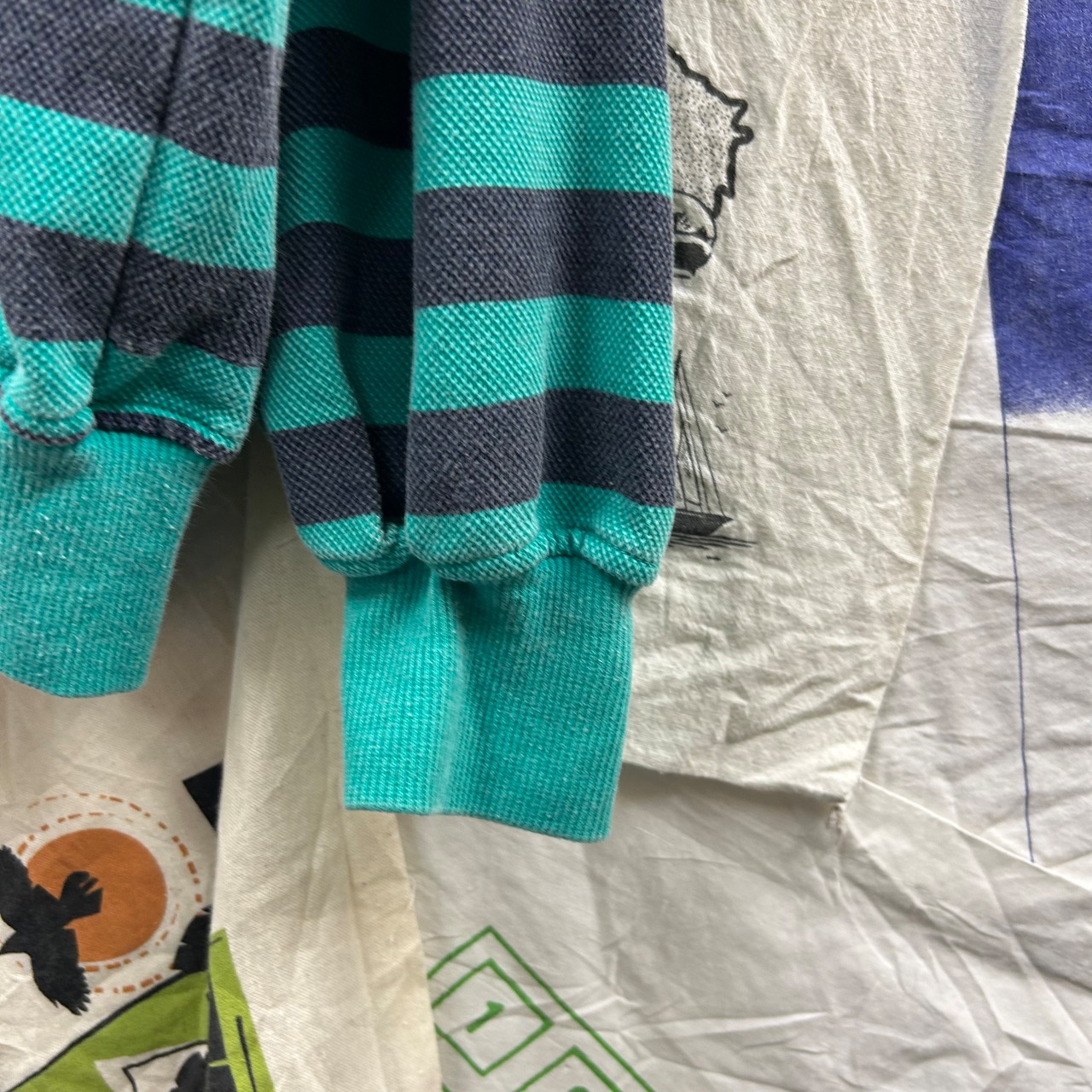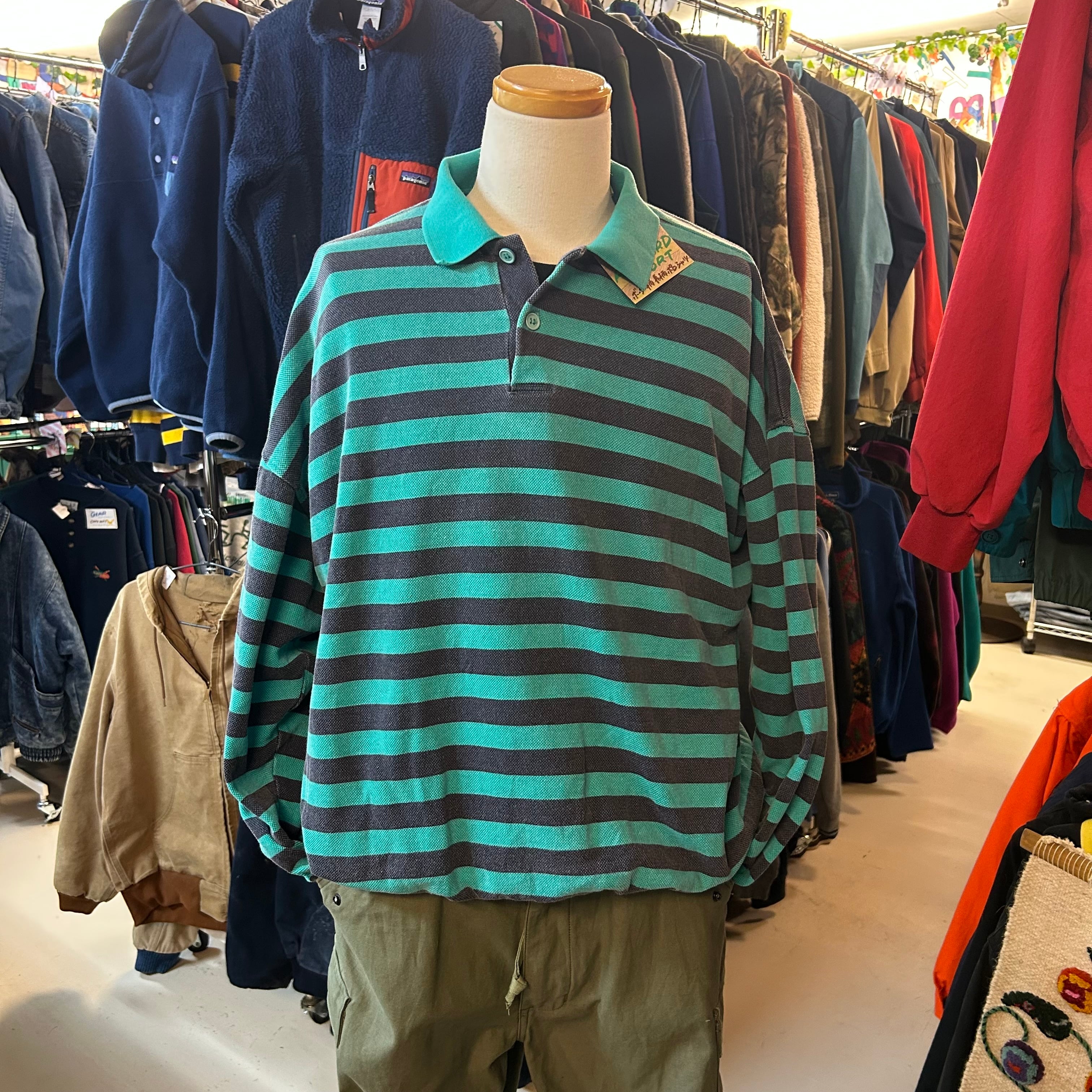 90年代らしい 太ピッチのマルチボーダー が目を引くロングスリーブポロ。