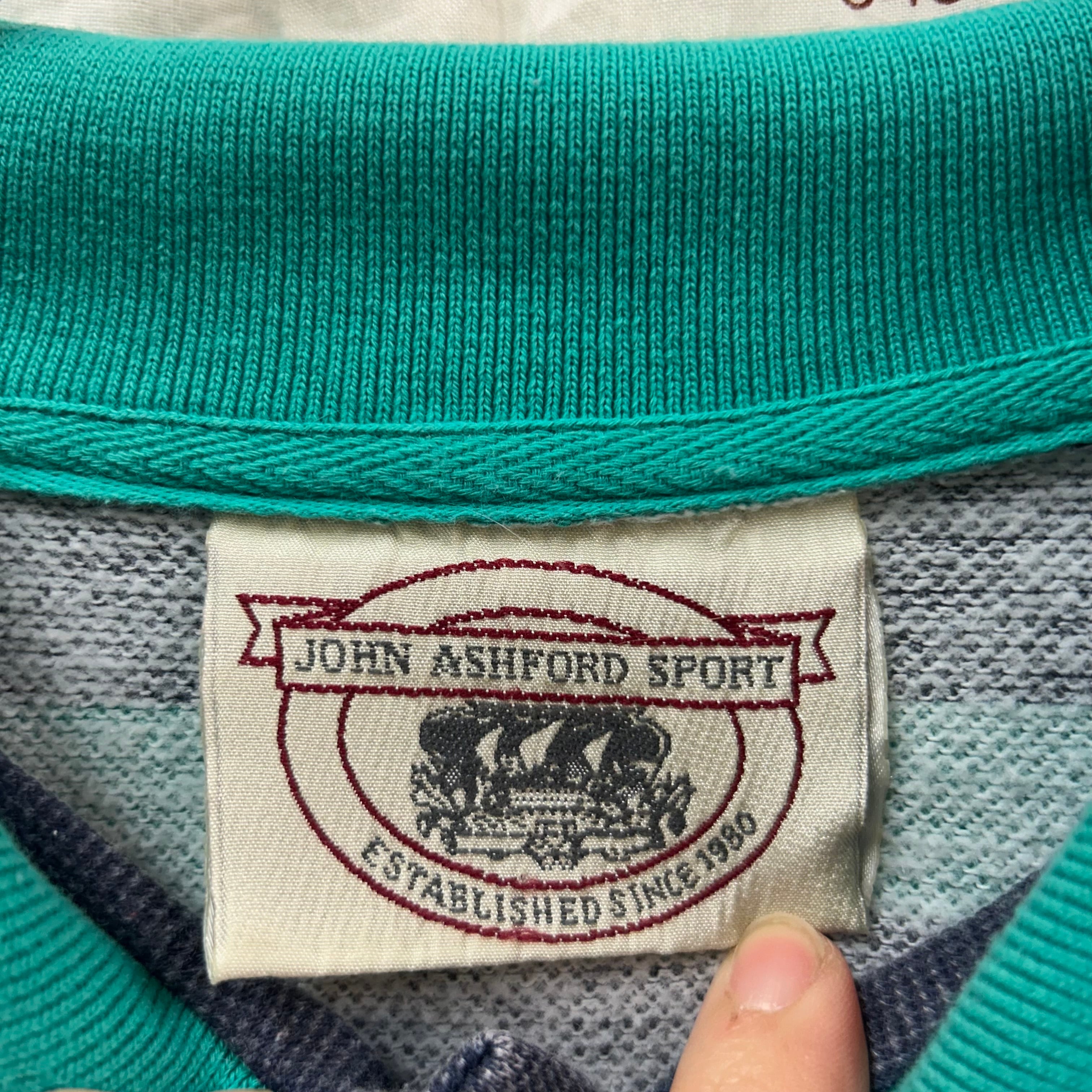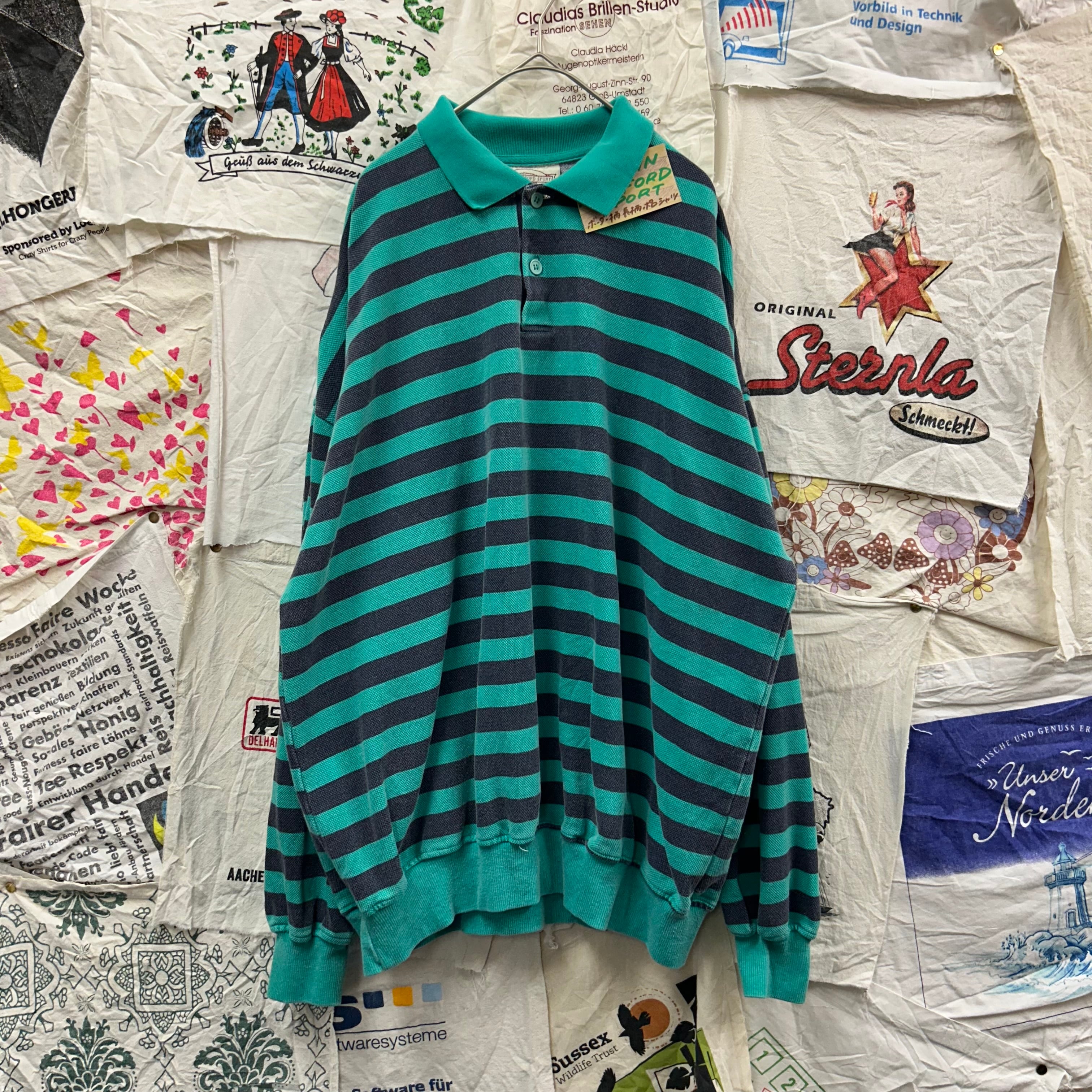90s JOHN ASHFORD SPORT ボーダー柄長袖ポロシャツ