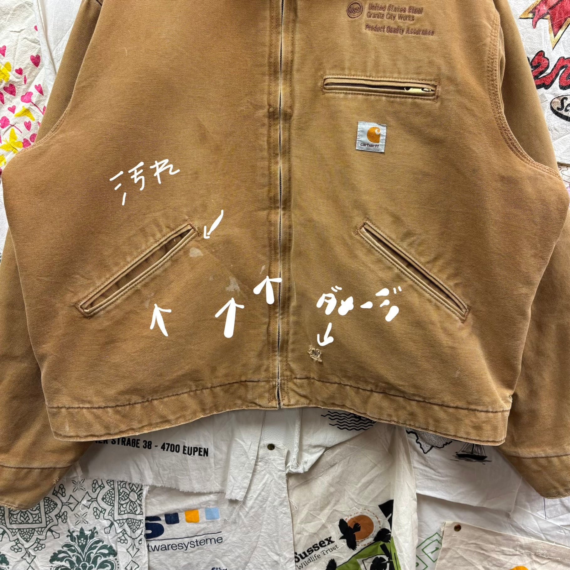 胸元にはアメリカの鉄鋼メーカーUnited States Steelのグラニット・シティ工場、品質保証部門の企業ロゴが刺繍されています。