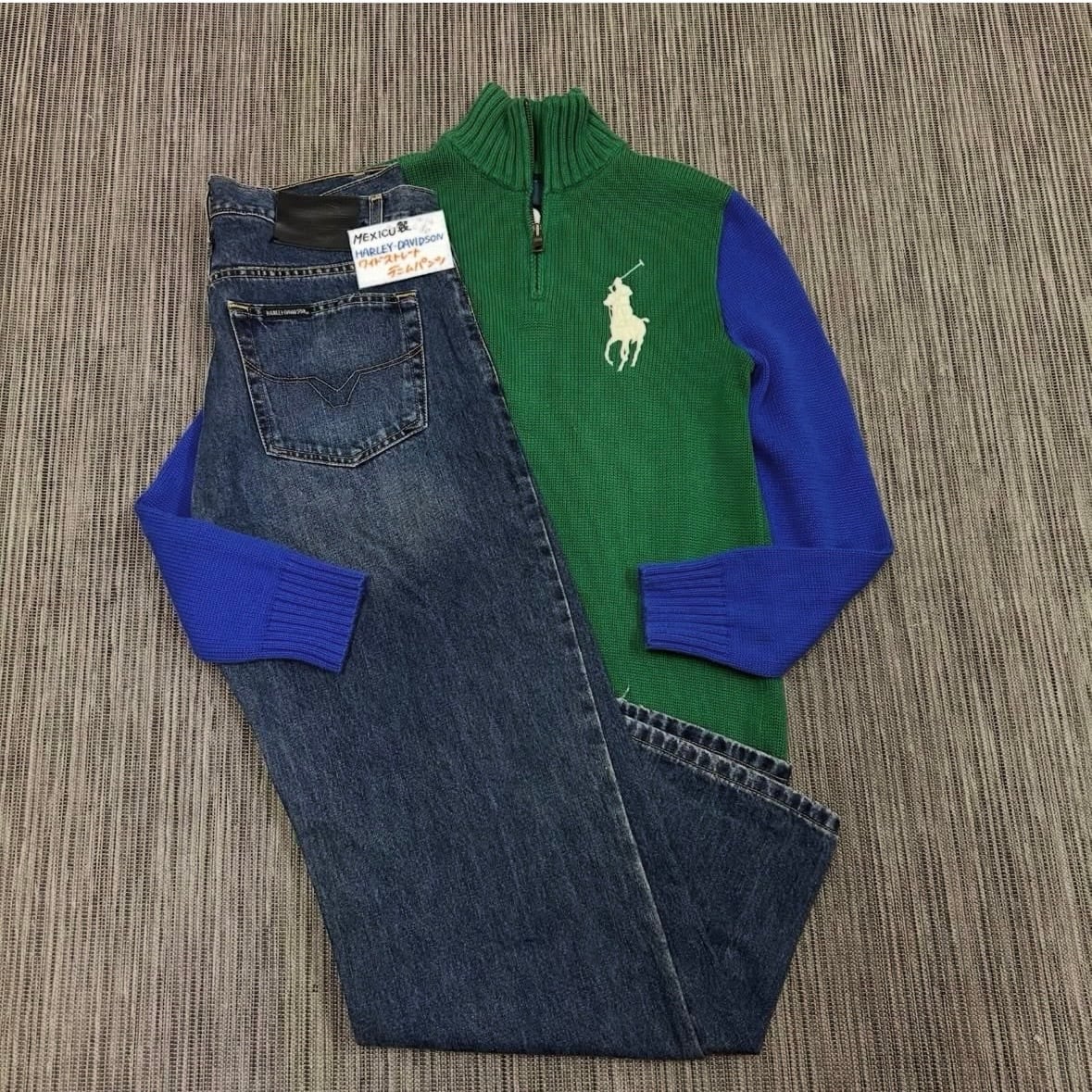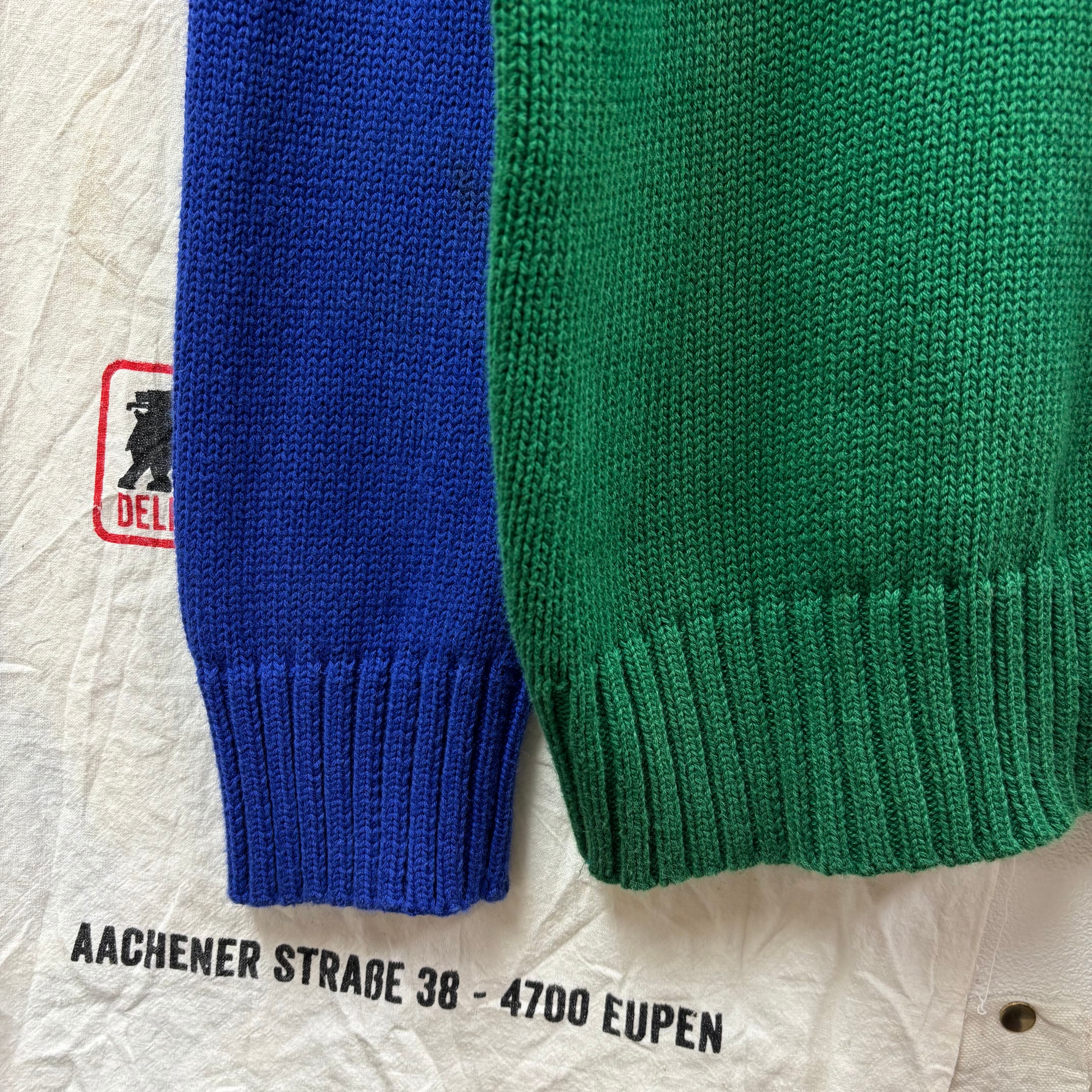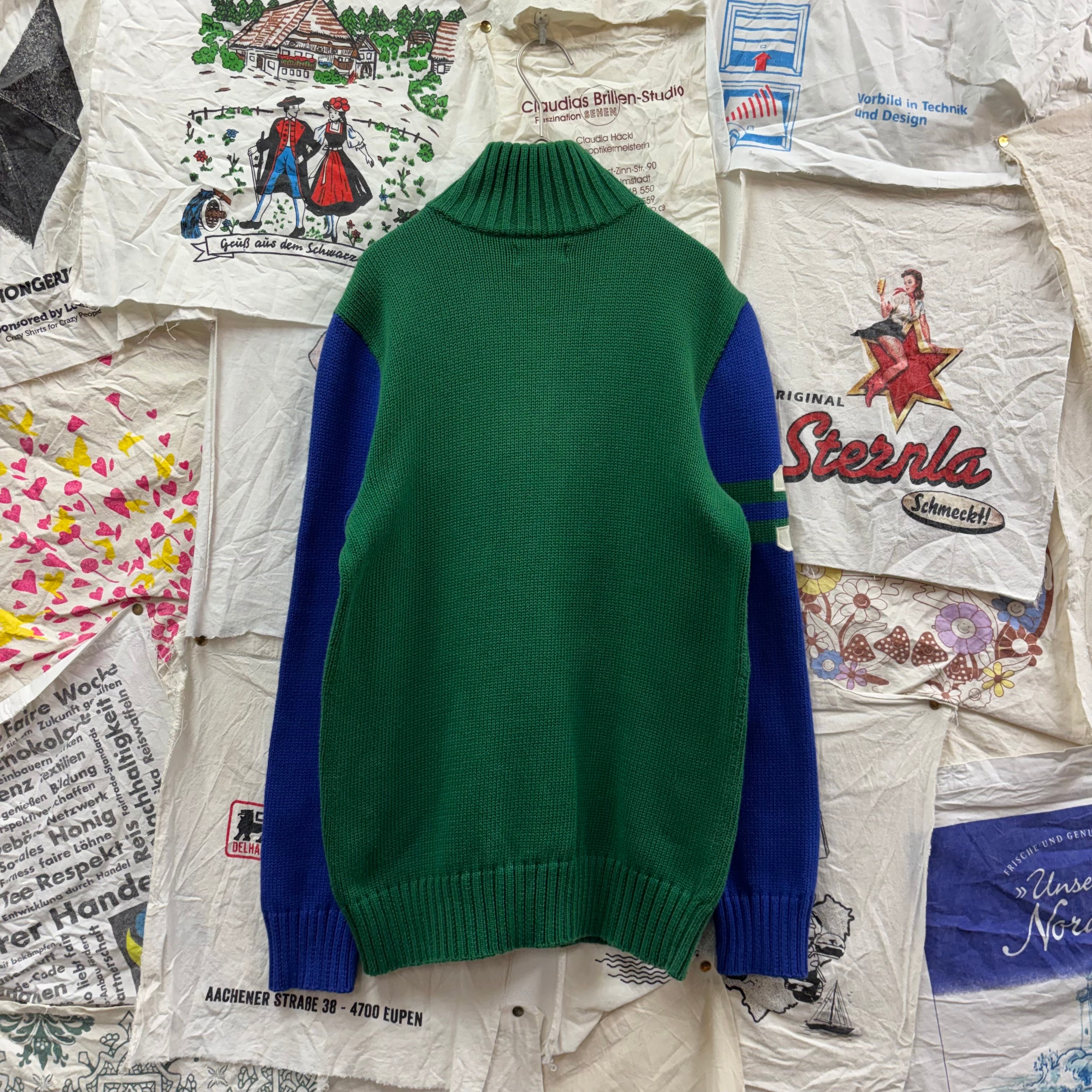 鮮やかなグリーンをベースに、袖をブルーで切り替えた配色がヴィンテージライクで非常にお洒落な一着。胸元にはビッグポニーさらに右腕にはナンバリングのパッチが施されており、ラルフローレンらしいスポーティーさと高級感を兼ね備えています。