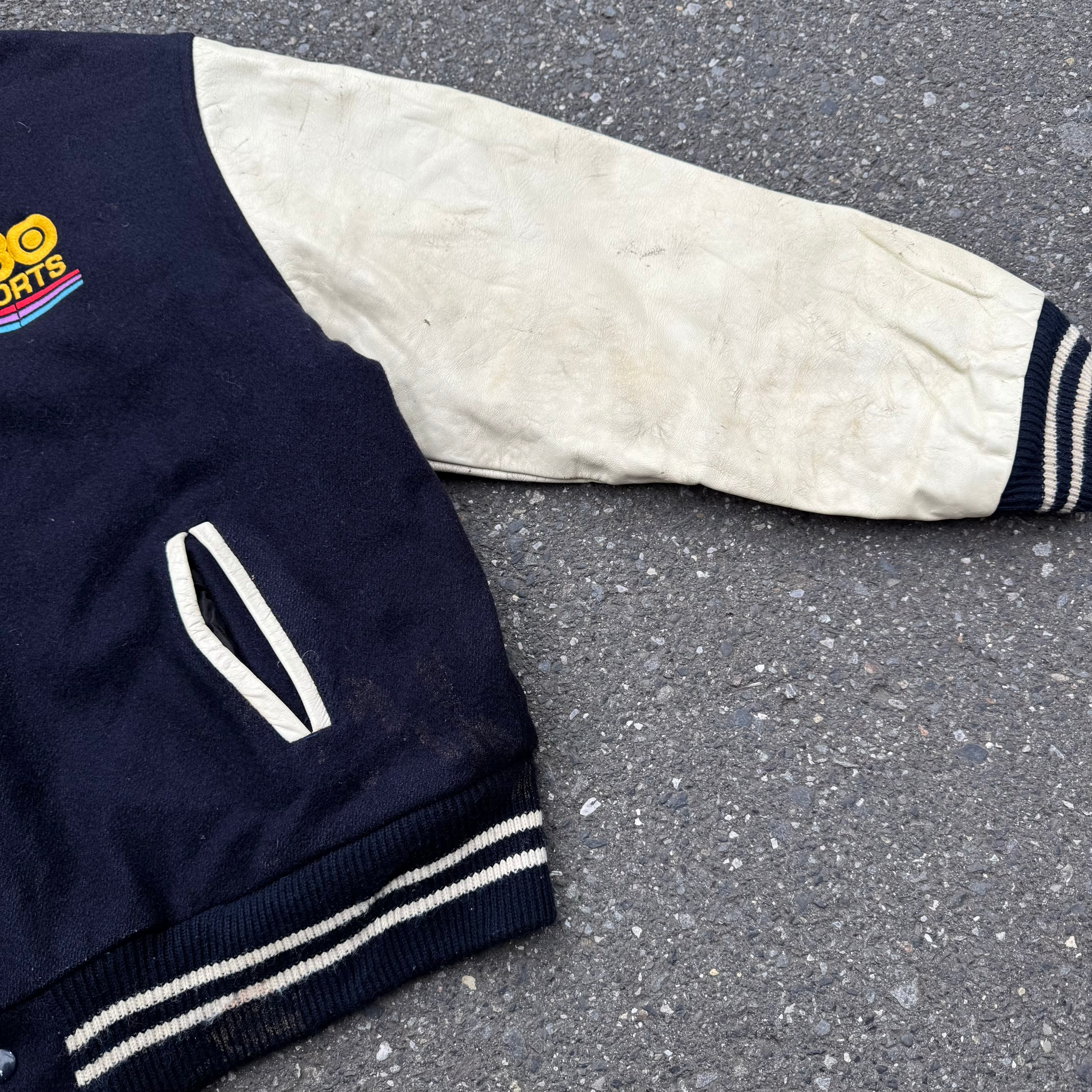 90s USA製 HBO SPORTS INSIDE THE NFL 刺繍レザースリーブスタジアムジャケット AKB