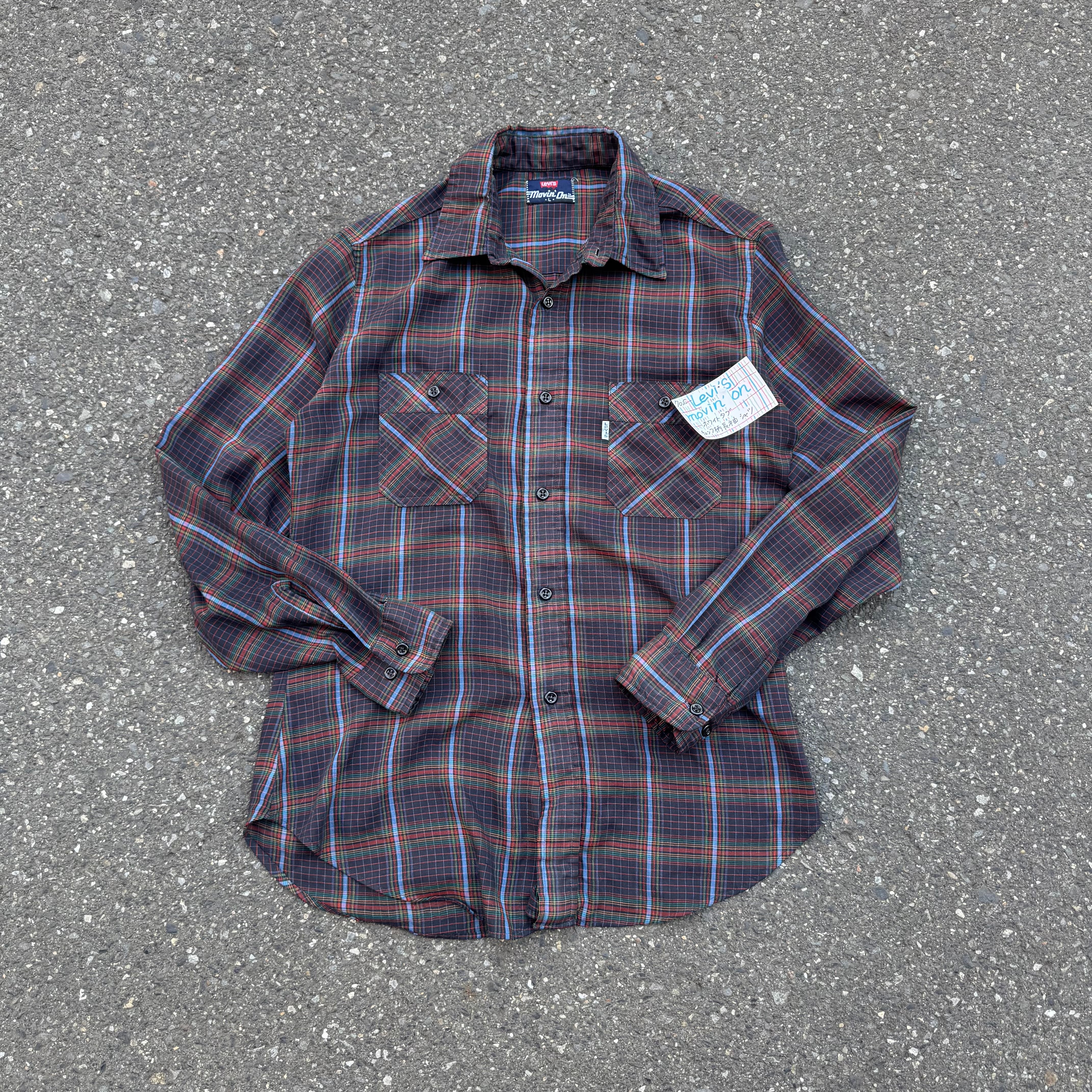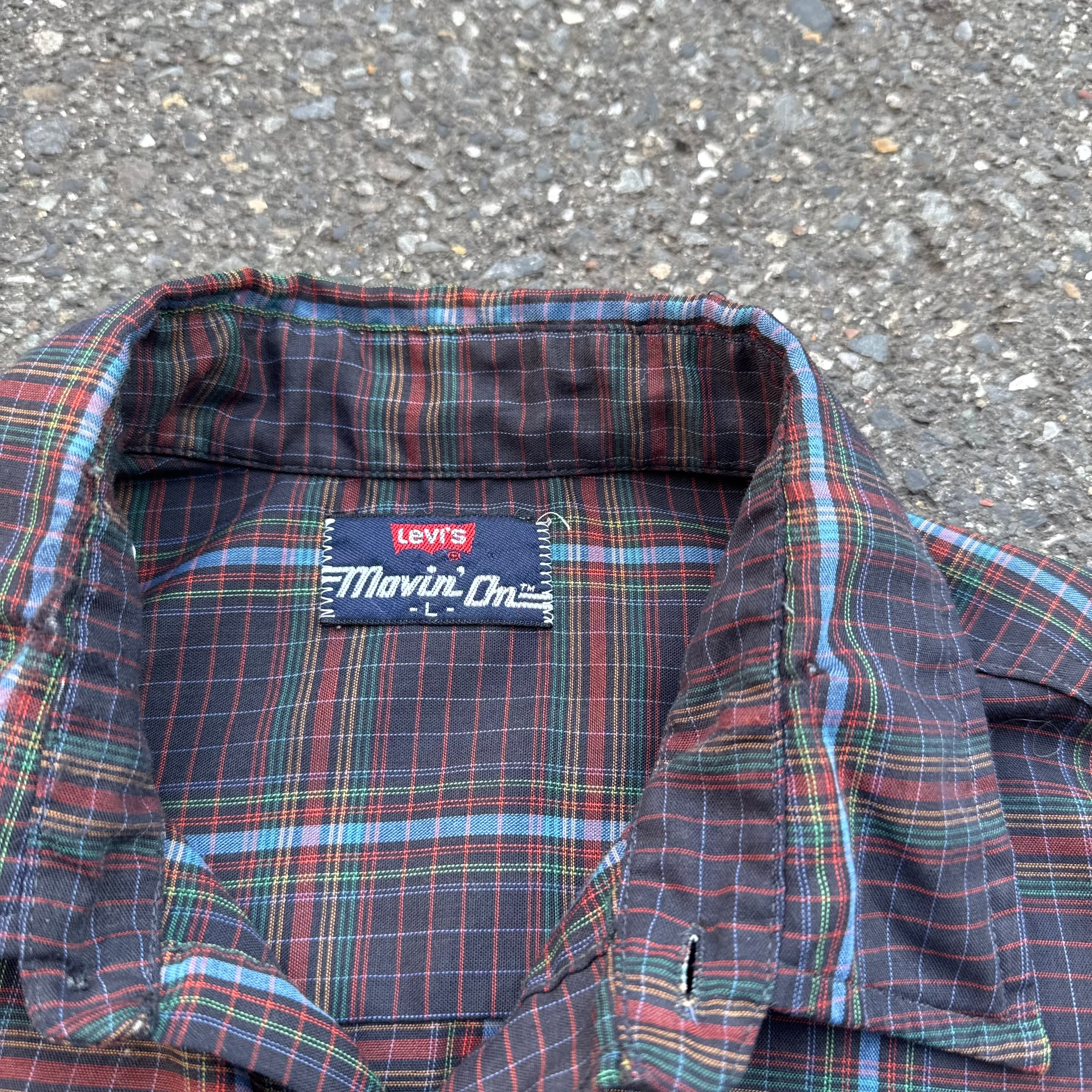 70s Levi's movin`on ホワイトタグ チェック柄長袖シャツAKB