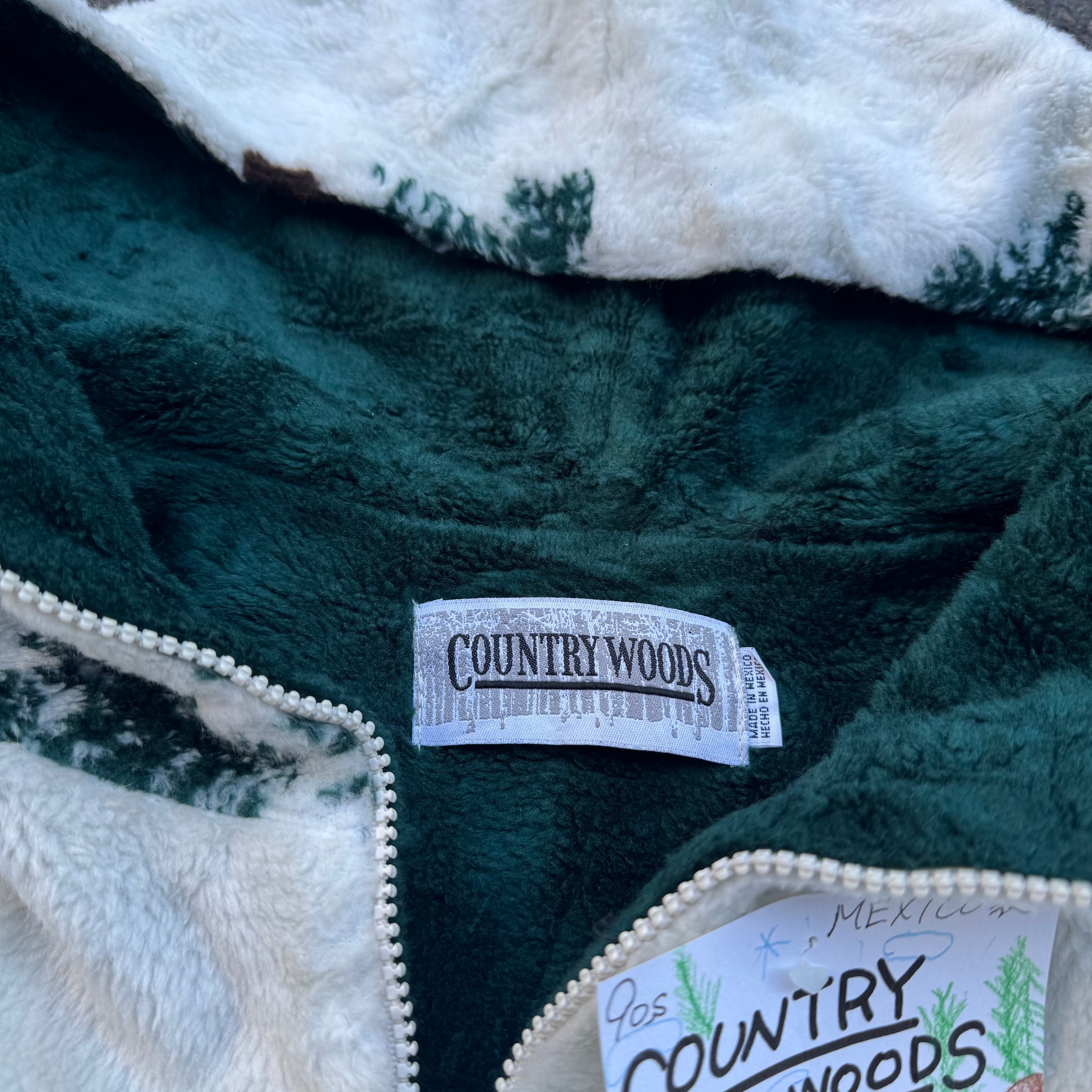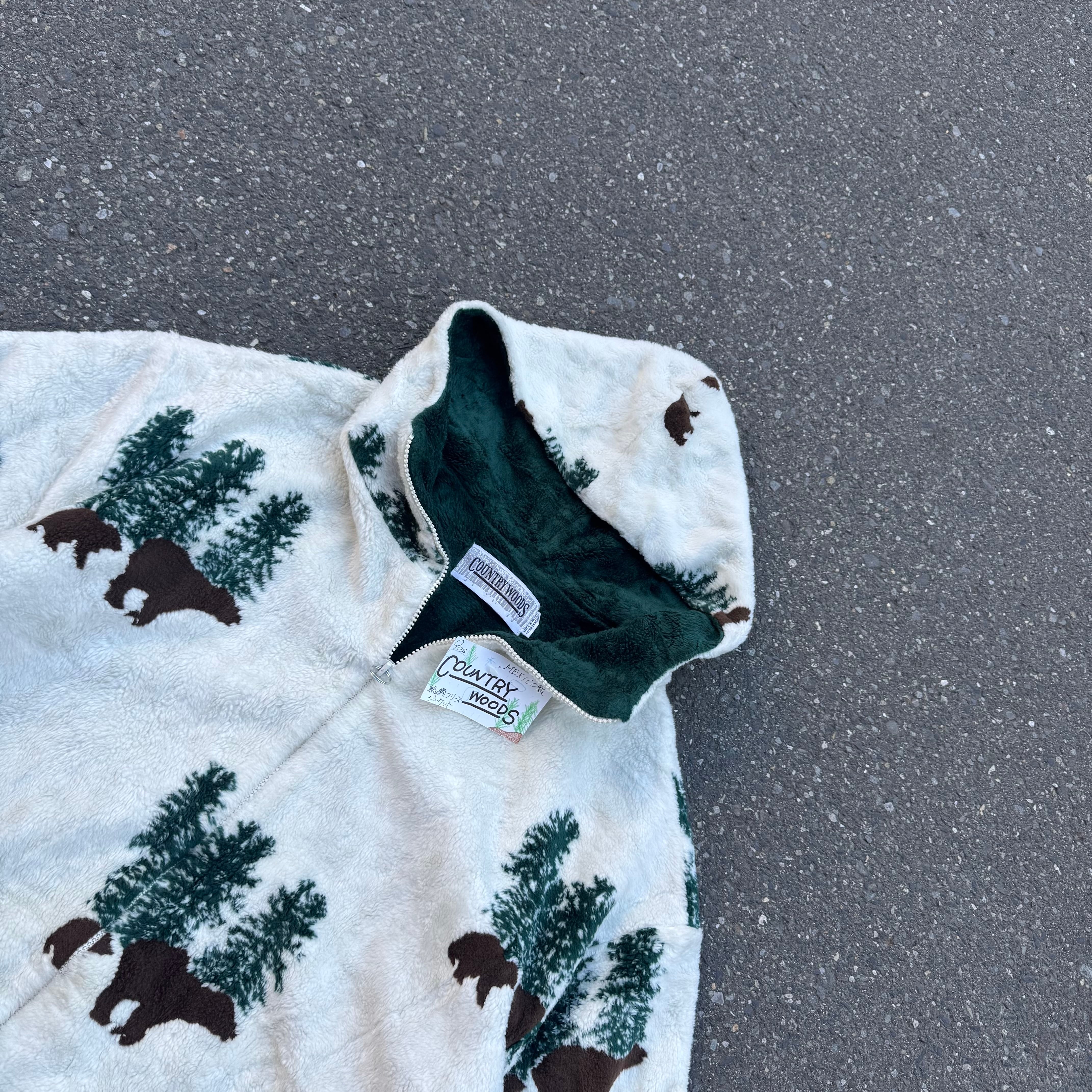 90s COUNTRY WOODS MEXICO製 総柄フリースジップパーカー となっております。