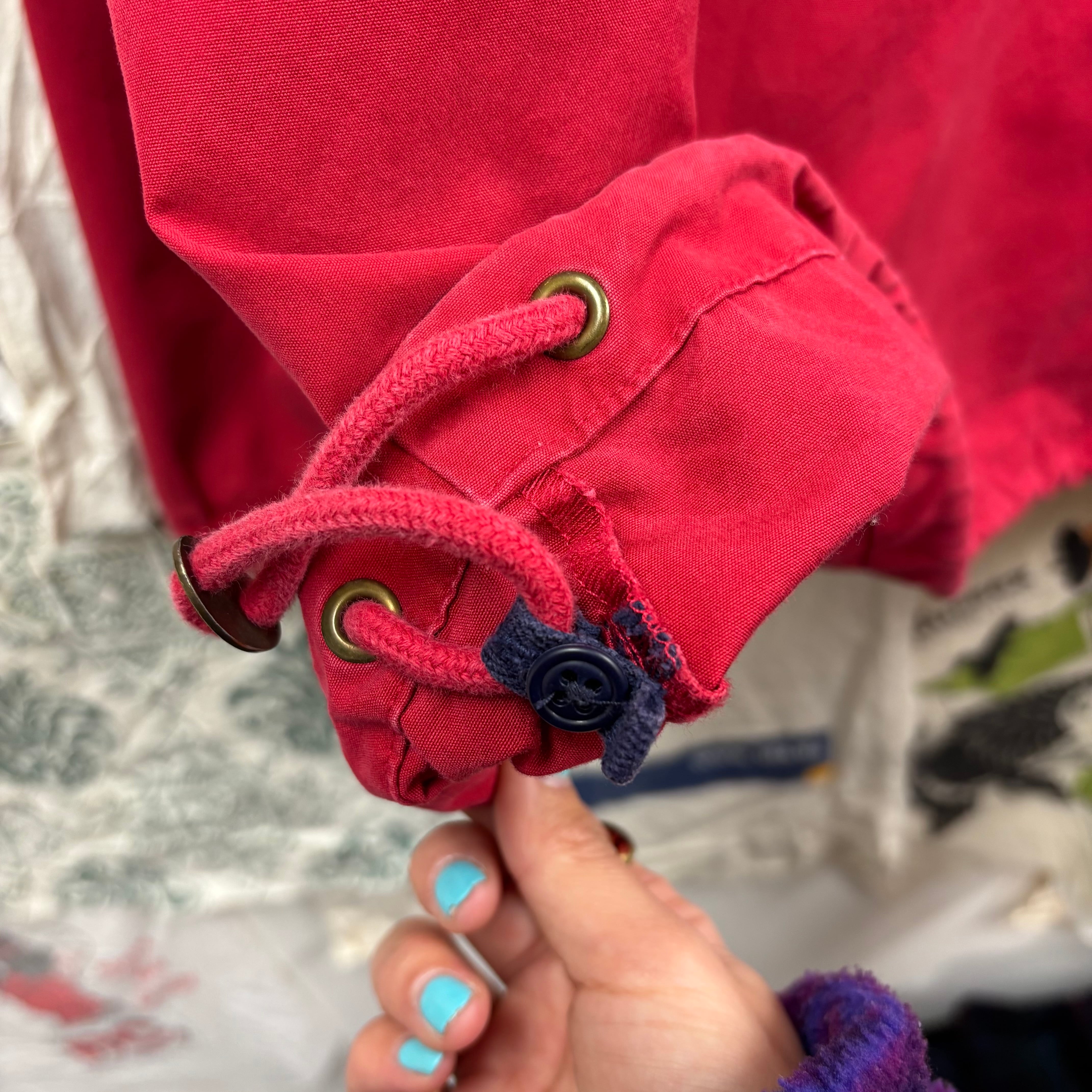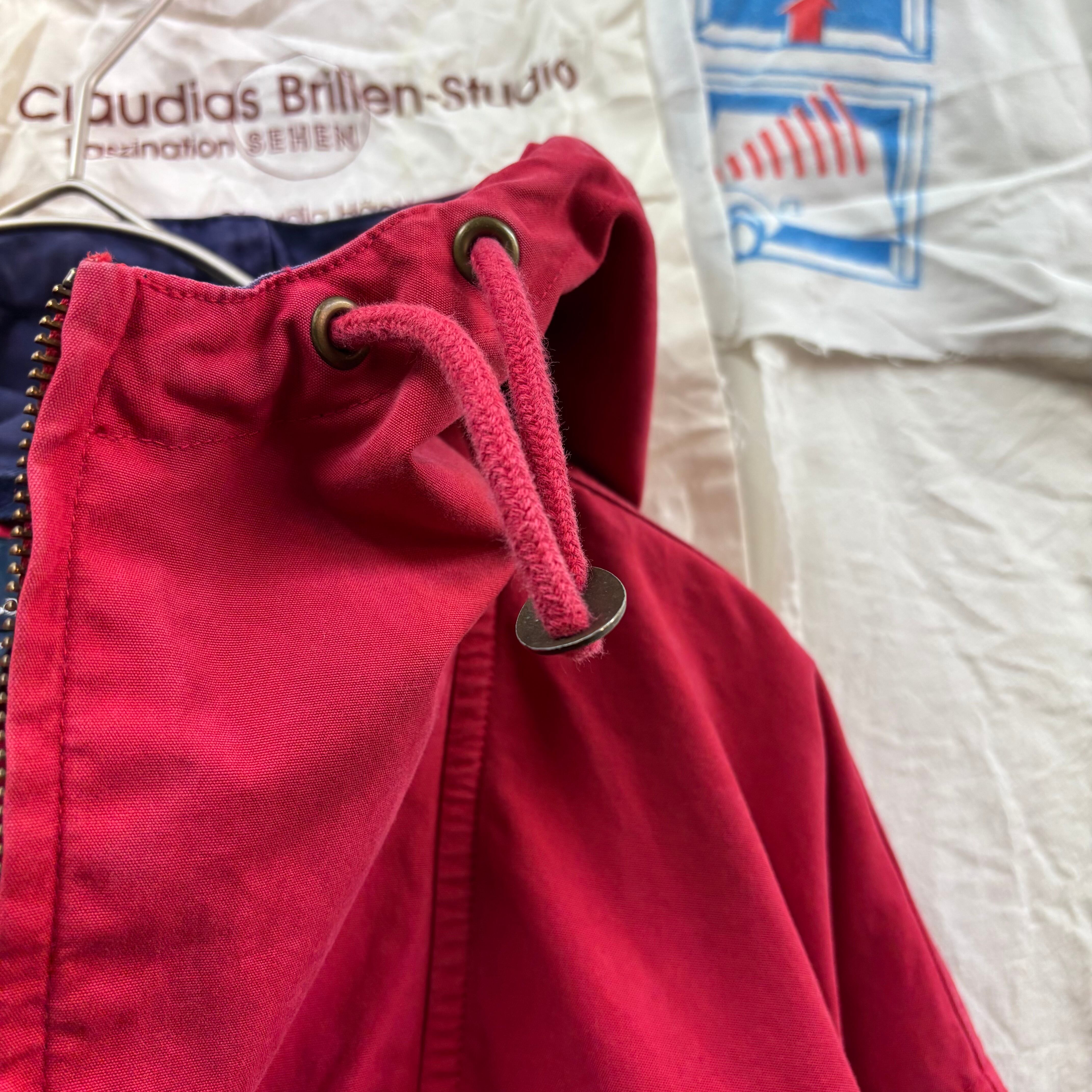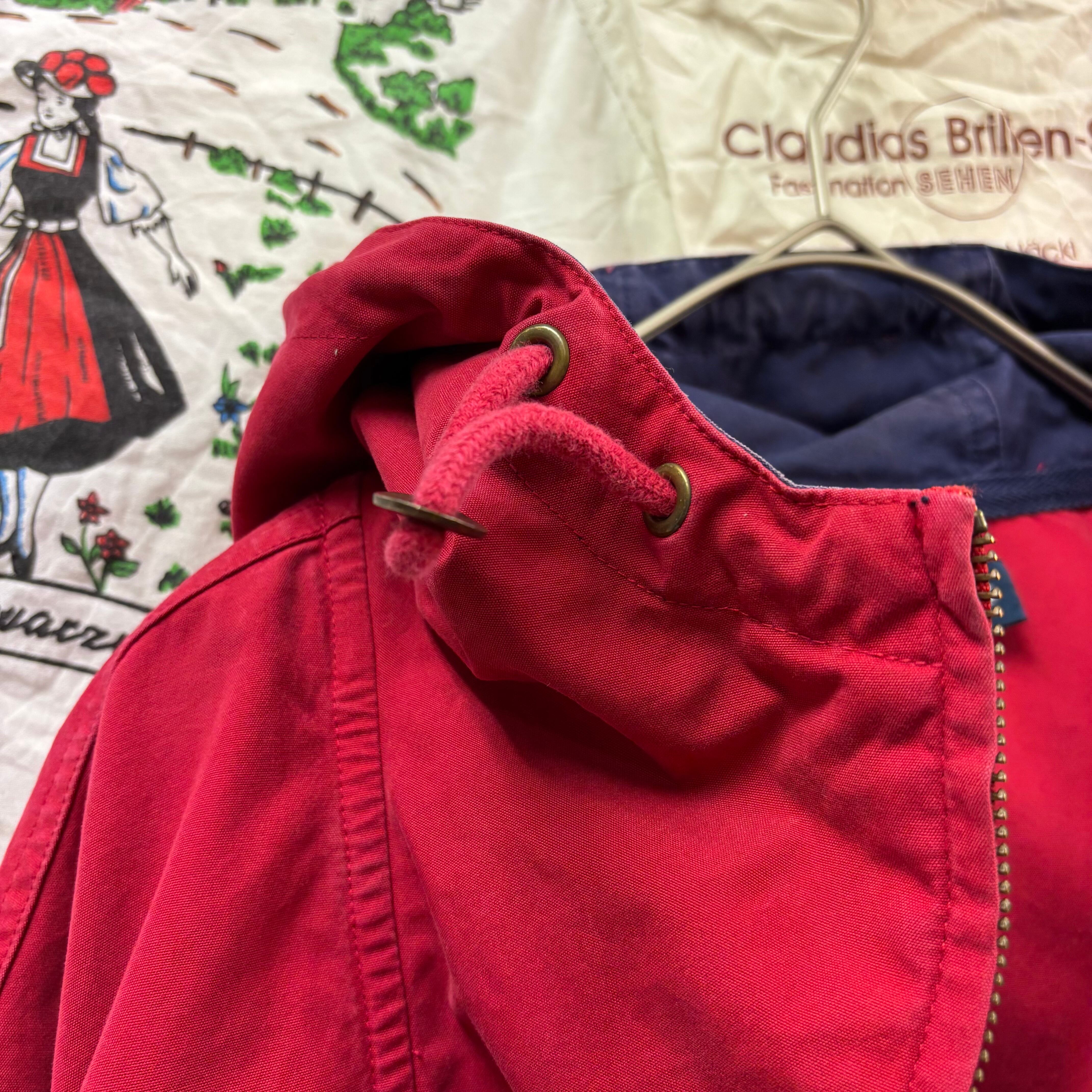 フロントの大きなジップポケットや、首元のドローコードなど、当時のアウトドア・スポーツMIXスタイルを象徴するディテールが詰まっています。