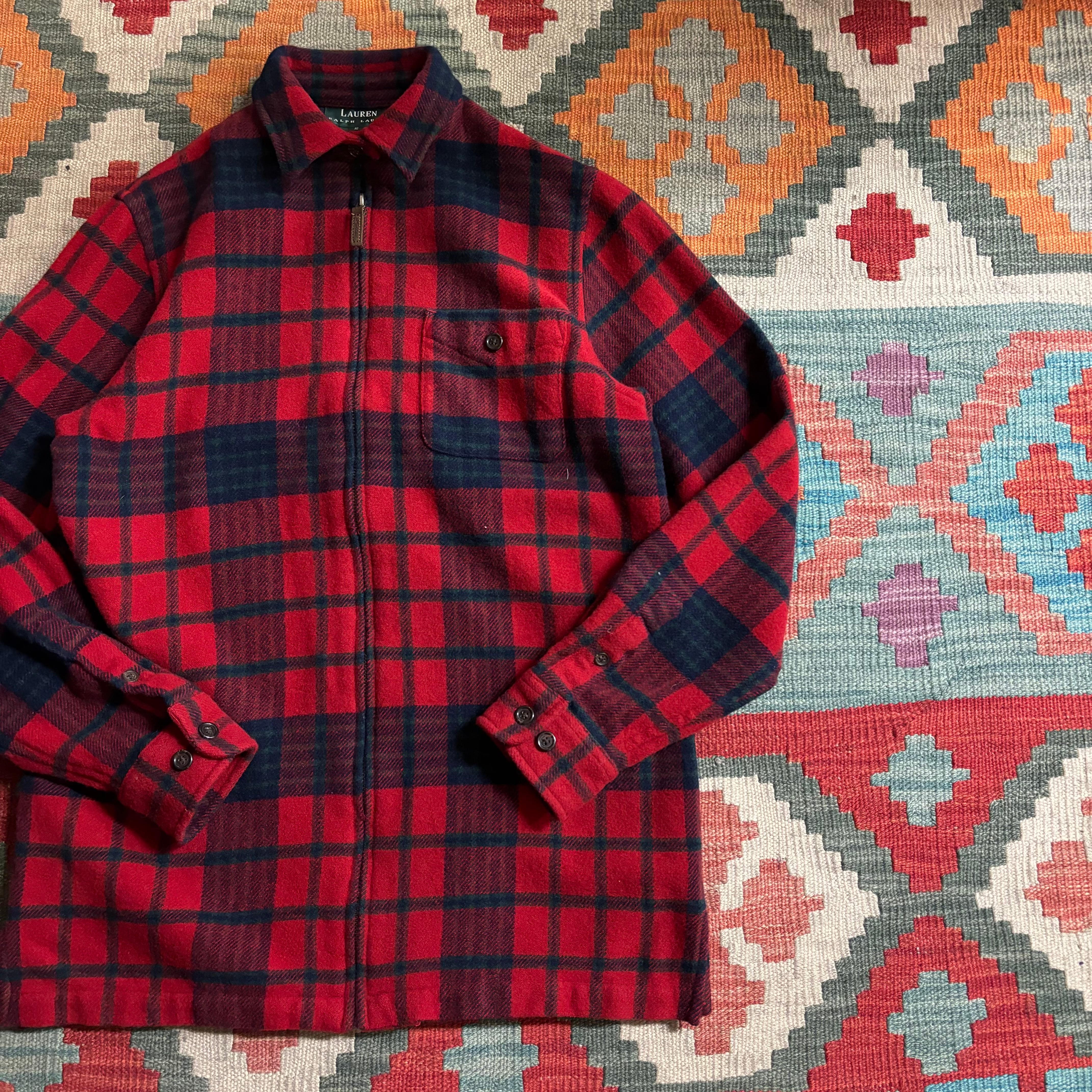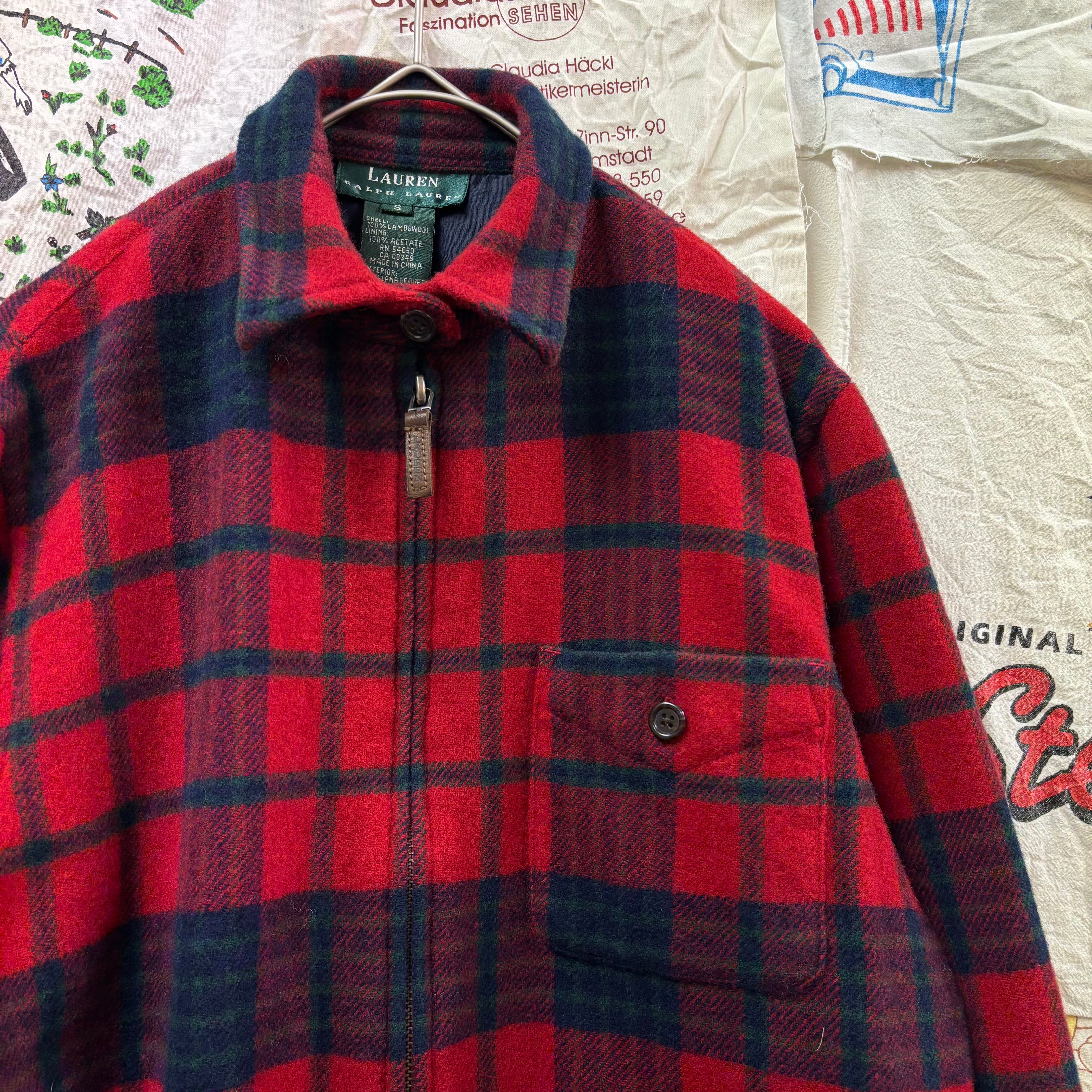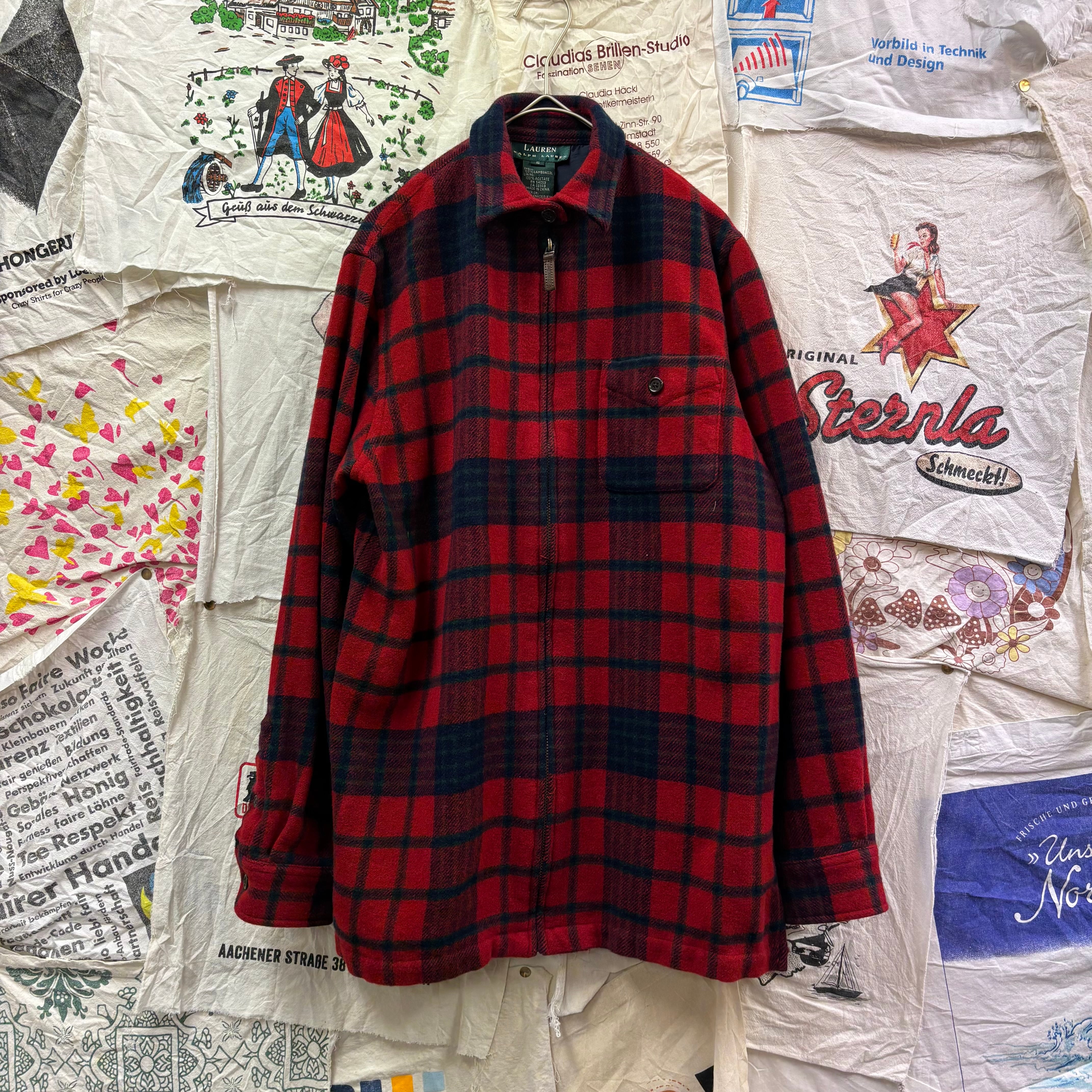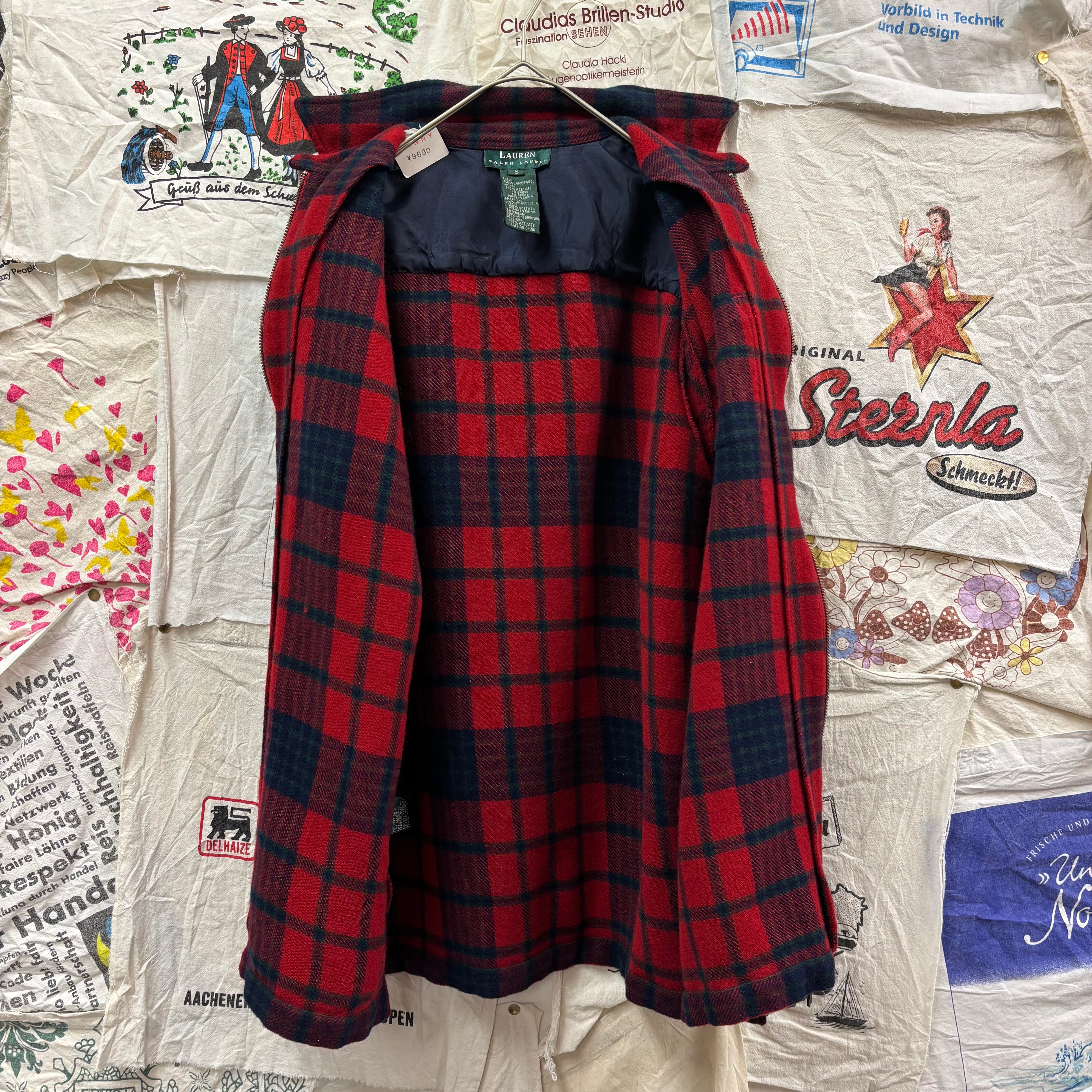 LAUREN Ralph Laurenラムウール チェック柄 ジップアップ シャツジャケット