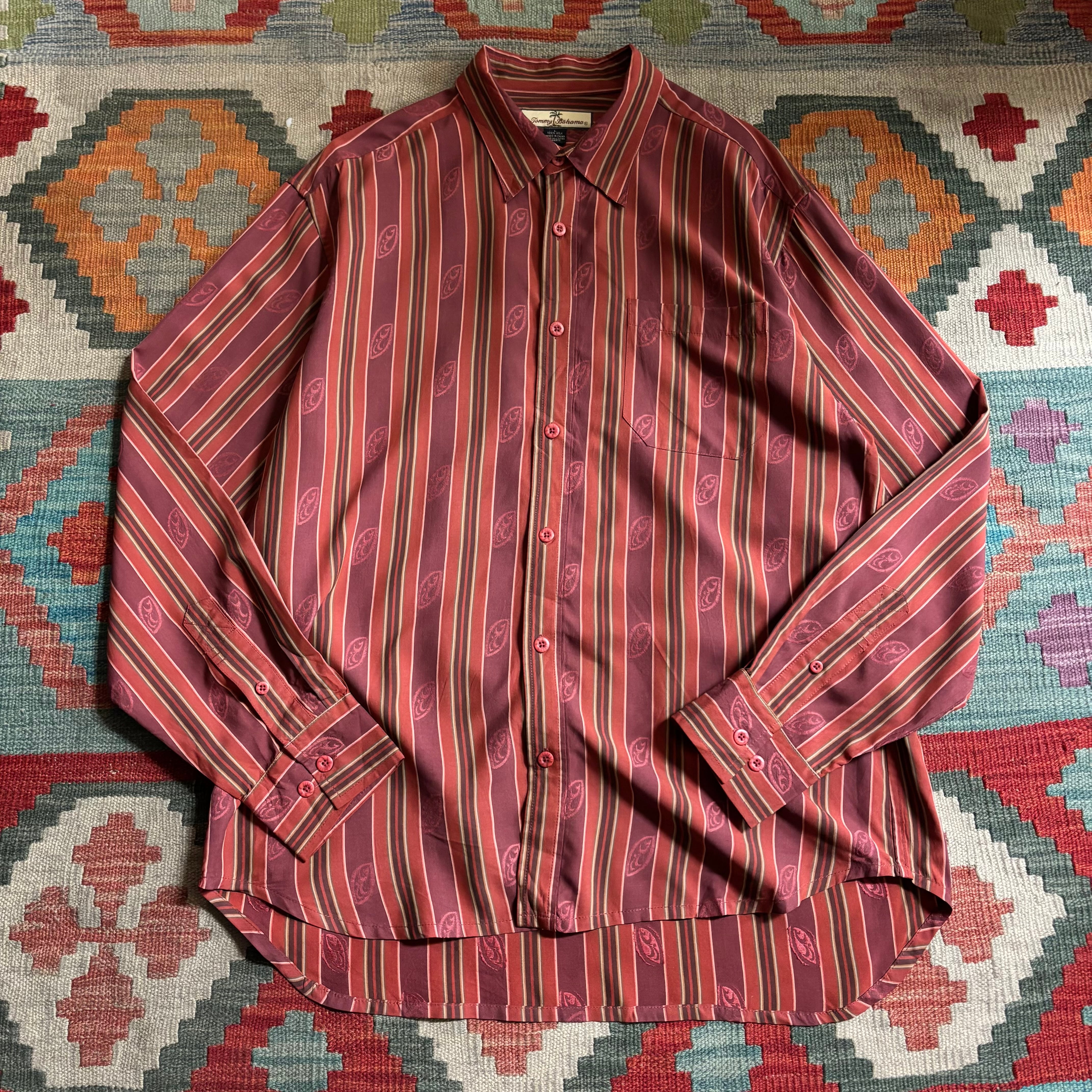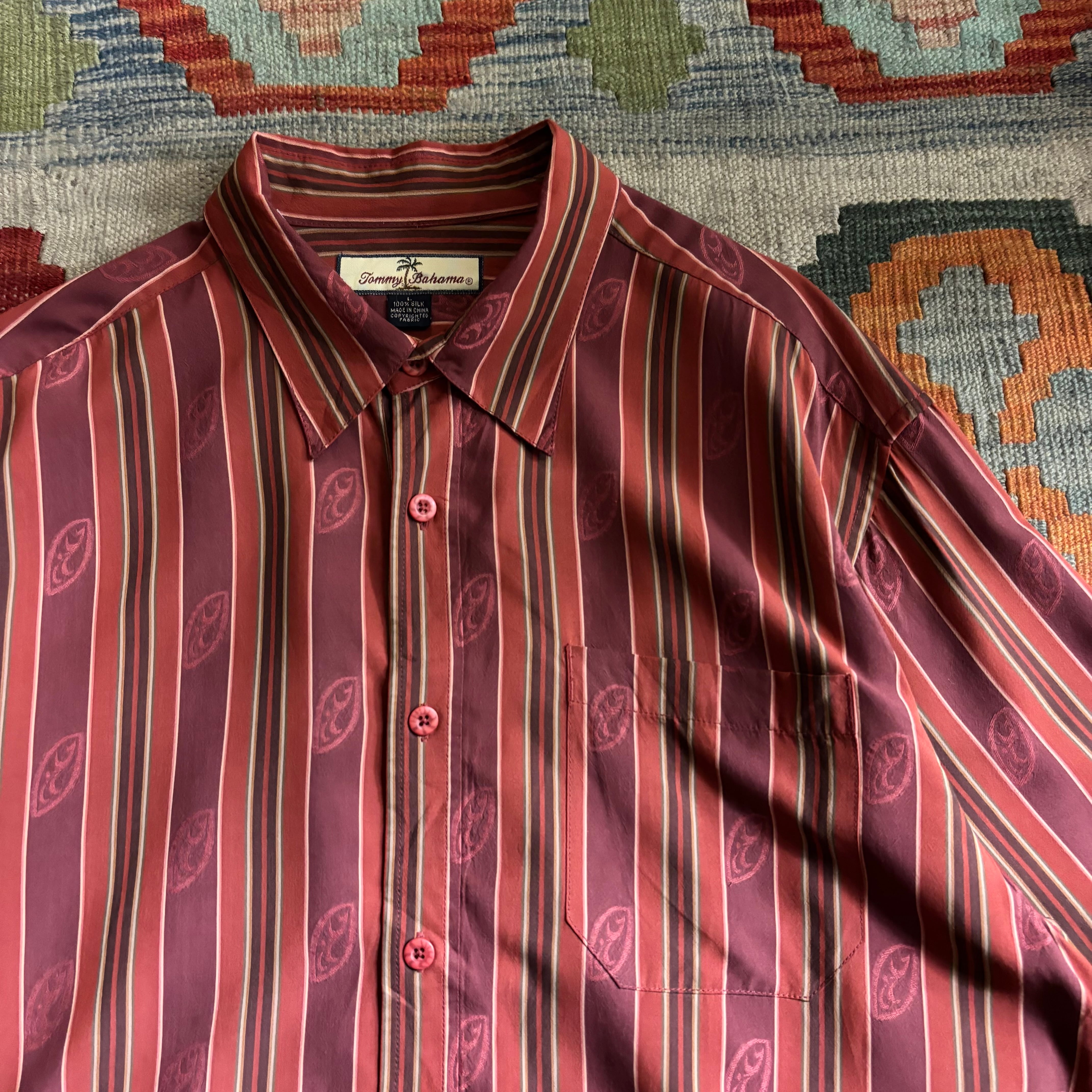Tommy Bahama ストライプ柄シルク長袖シャツ