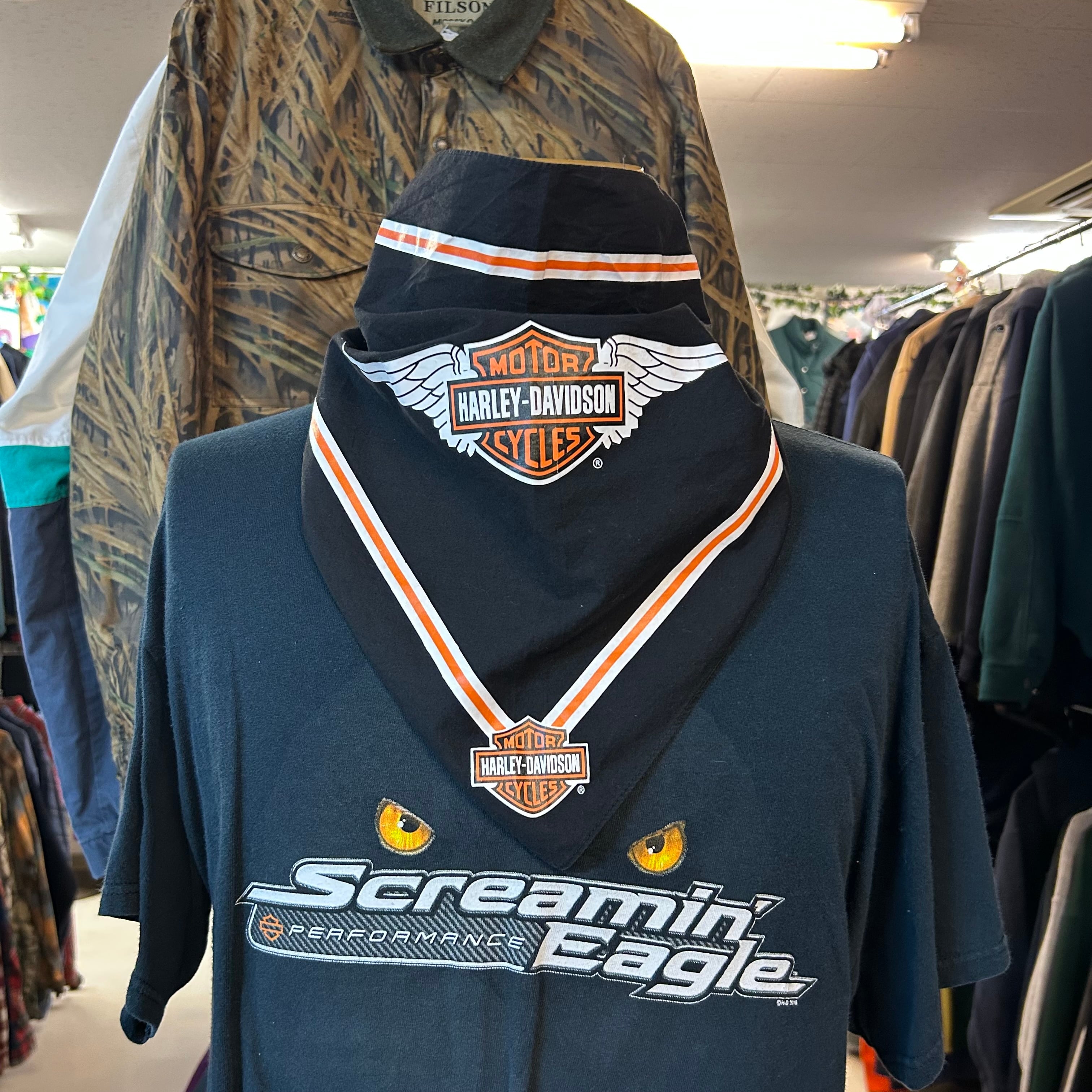 00s HARLEY-DAVIDSON ロゴプリントバイカートライアングルバンダナ