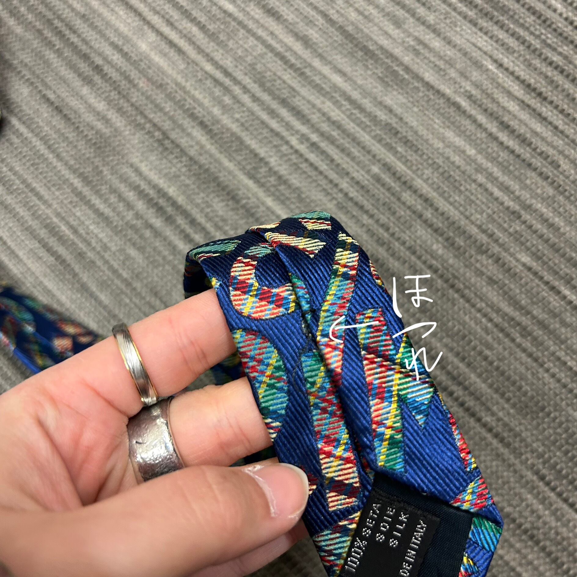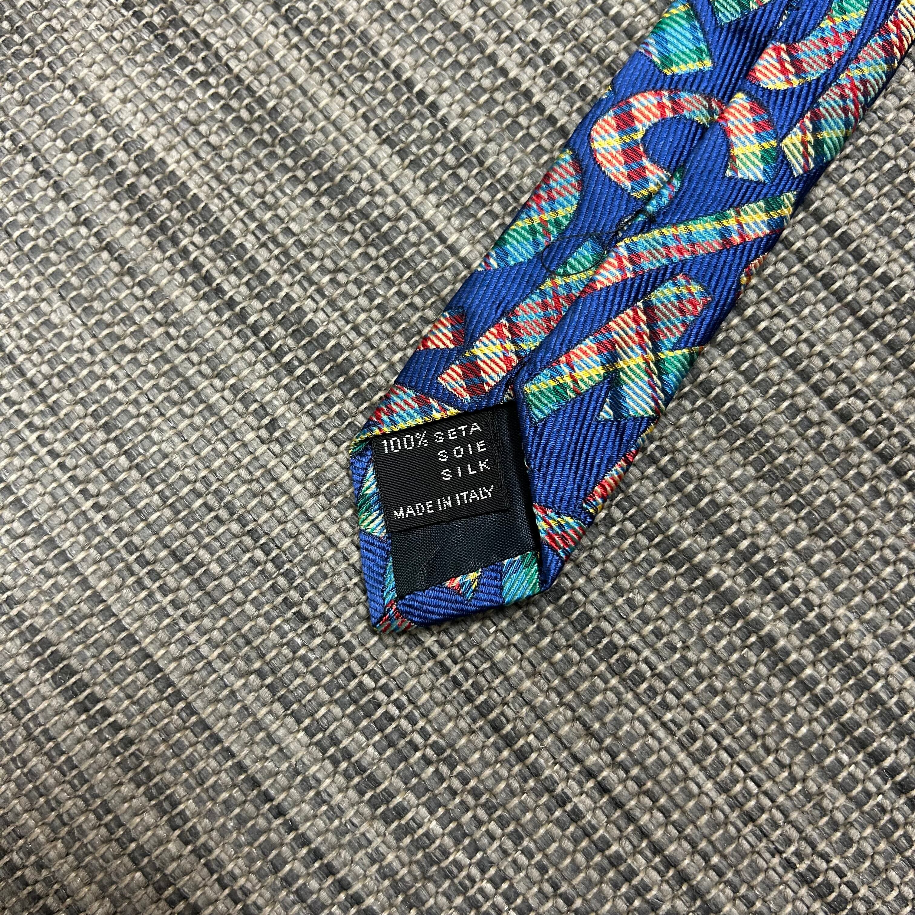 総柄デザインにブランドのロゴや独特の柄使いが組み合わさっていて、ただのフォーマル小物じゃなく 存在感あるアクセント になる一本!
