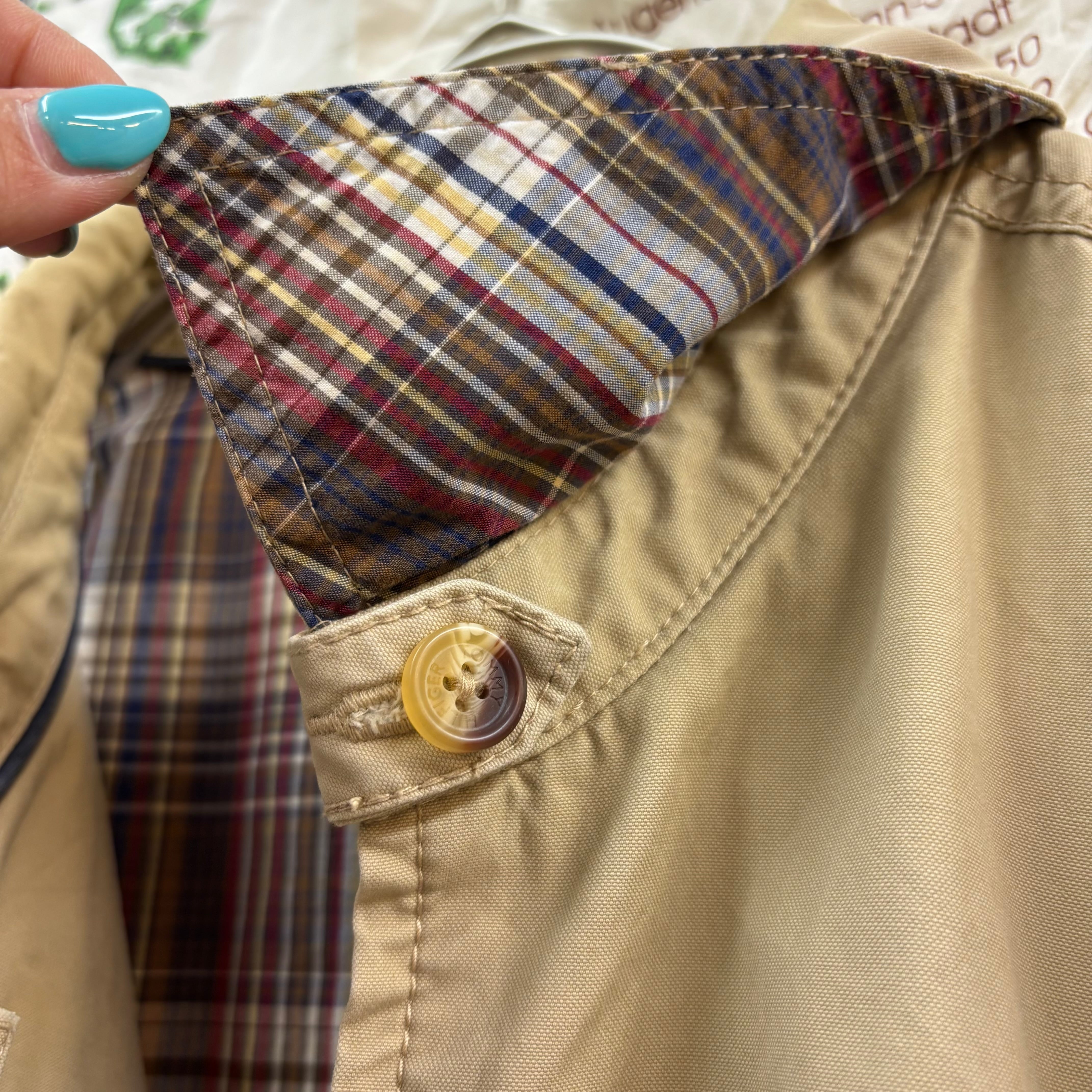 最大の特徴は、フロントを開けて着た際に見えるチェック柄の裏地。上品なブリティッシュトラッドの雰囲気を感じさせ、シンプルなコーディネートをワンランク格上げしてくれます。