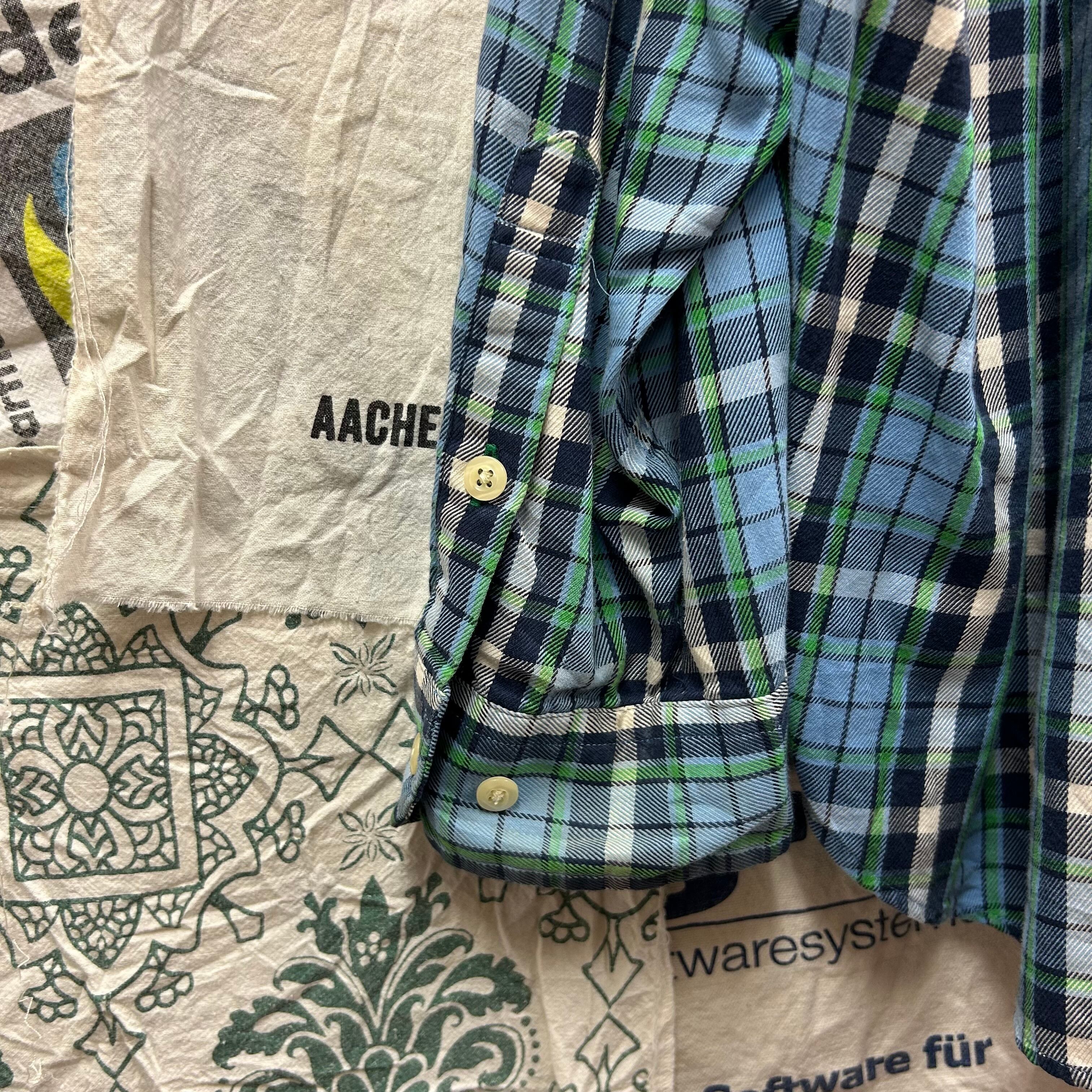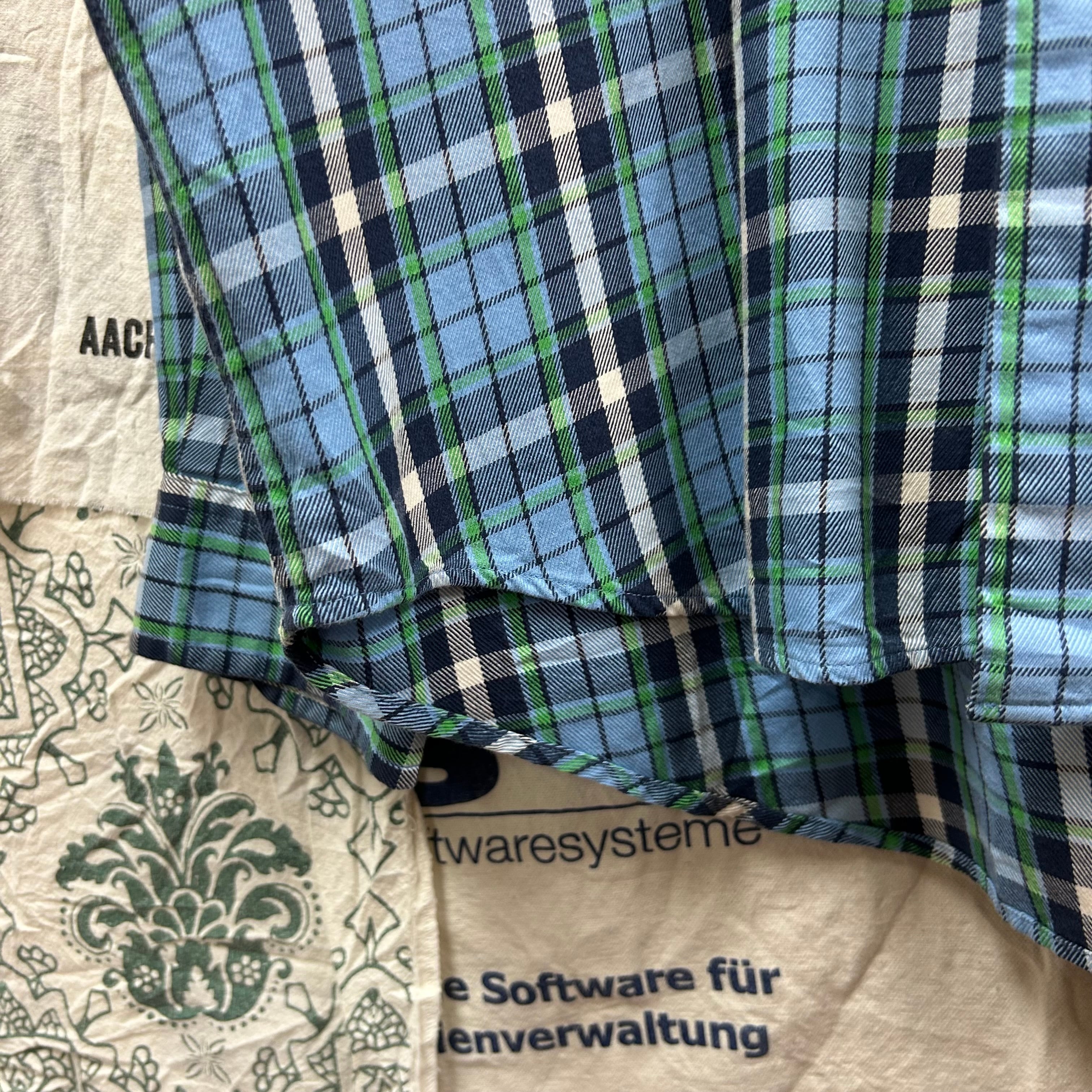 落ち着いたトーンのチェック柄に、胸元の ワンポイント刺繍ロゴ(トリコロールやヒルフィガー) が上品なアクセントになった一枚!