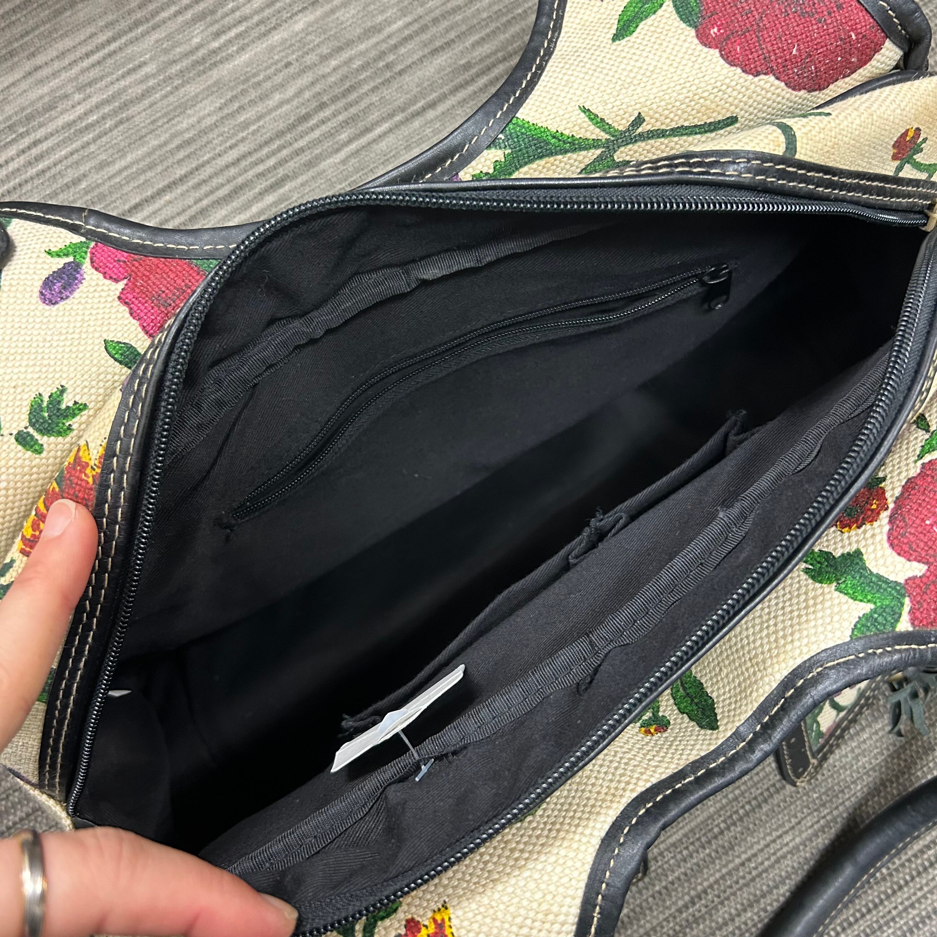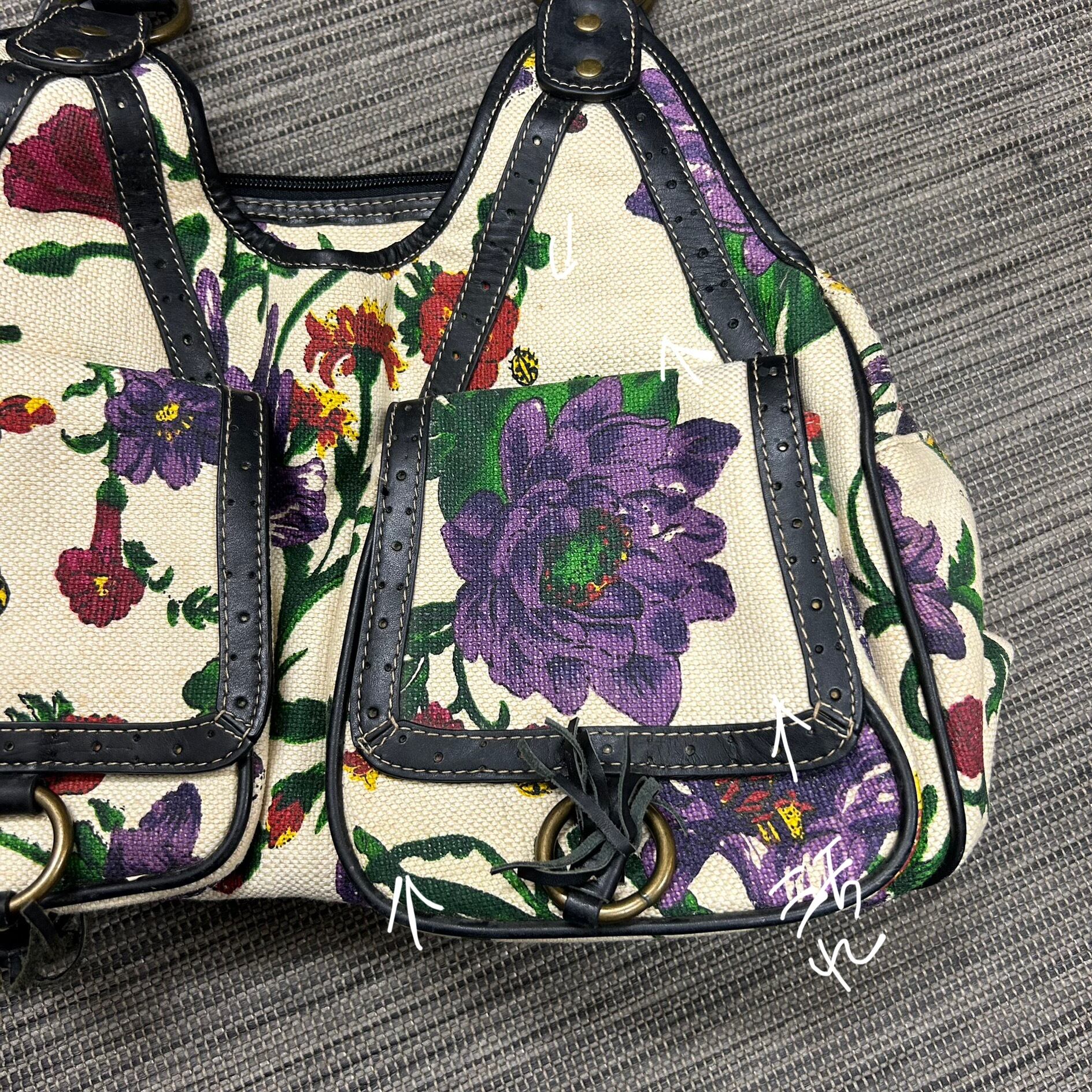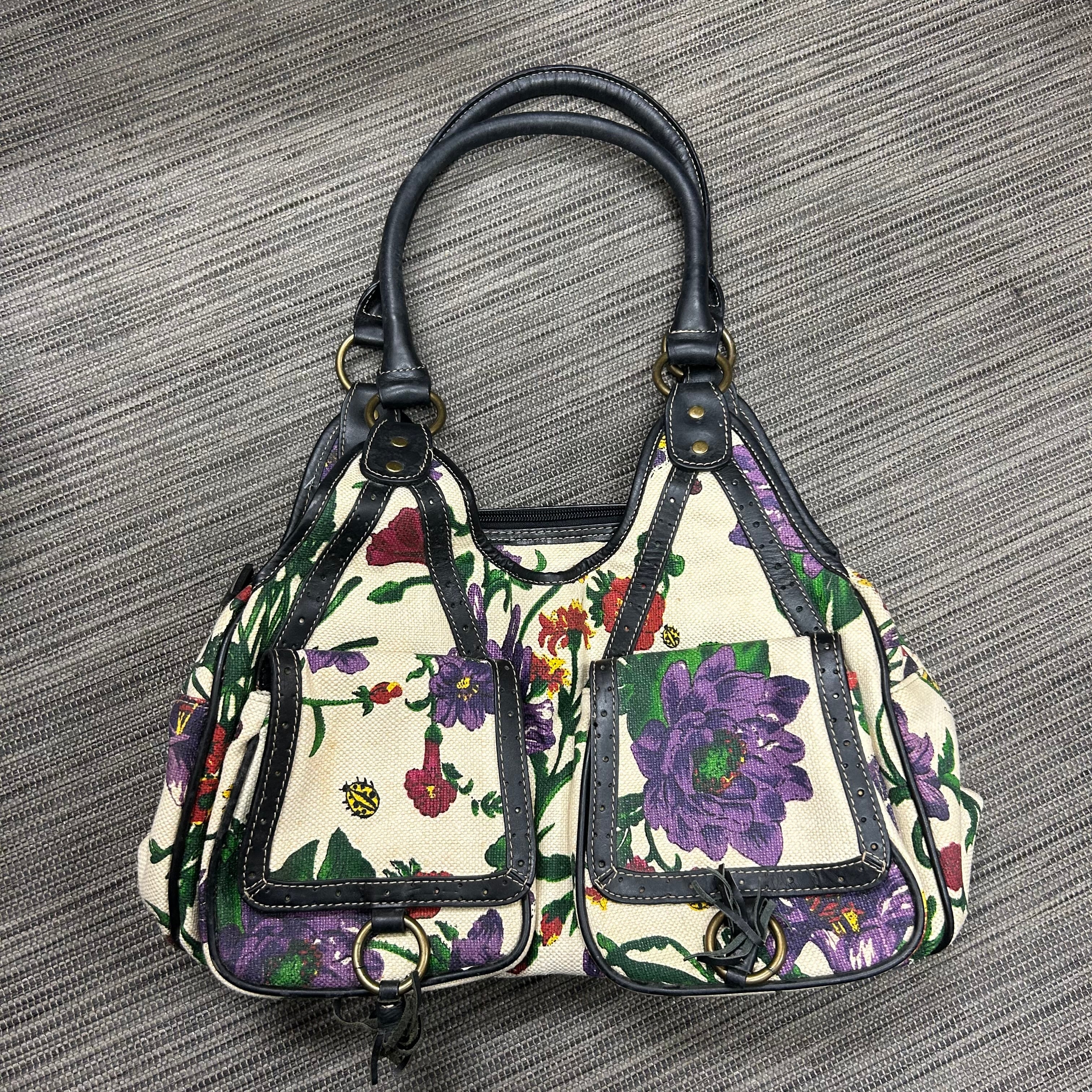 華やかな 花柄(フローラル)プリント/刺繍デザイン が印象的なハンドルバッグ。