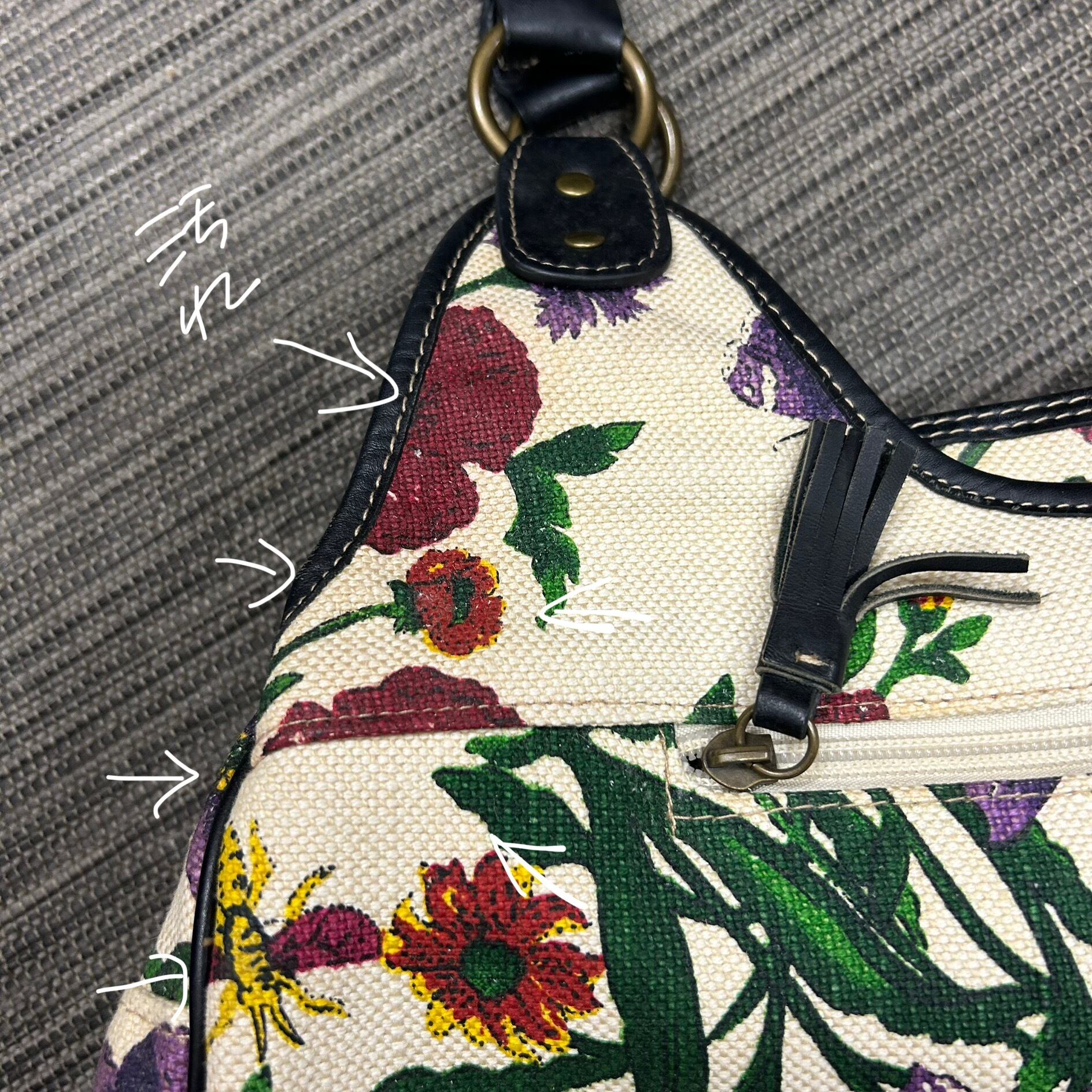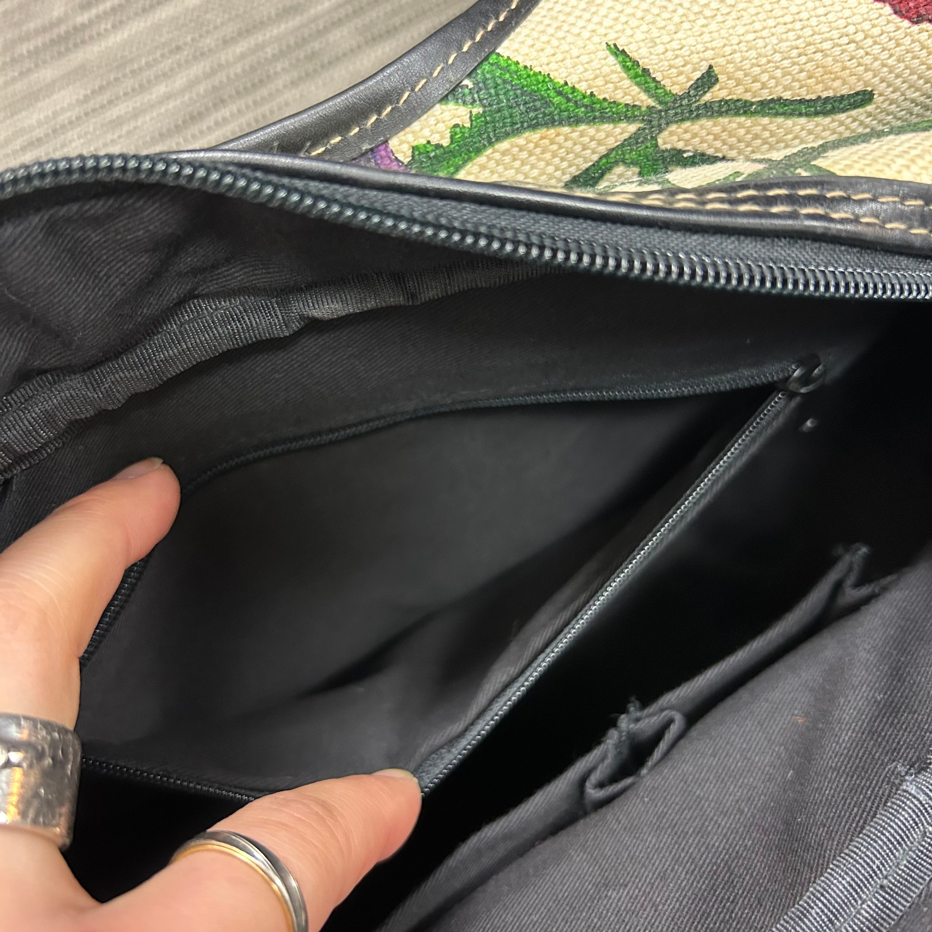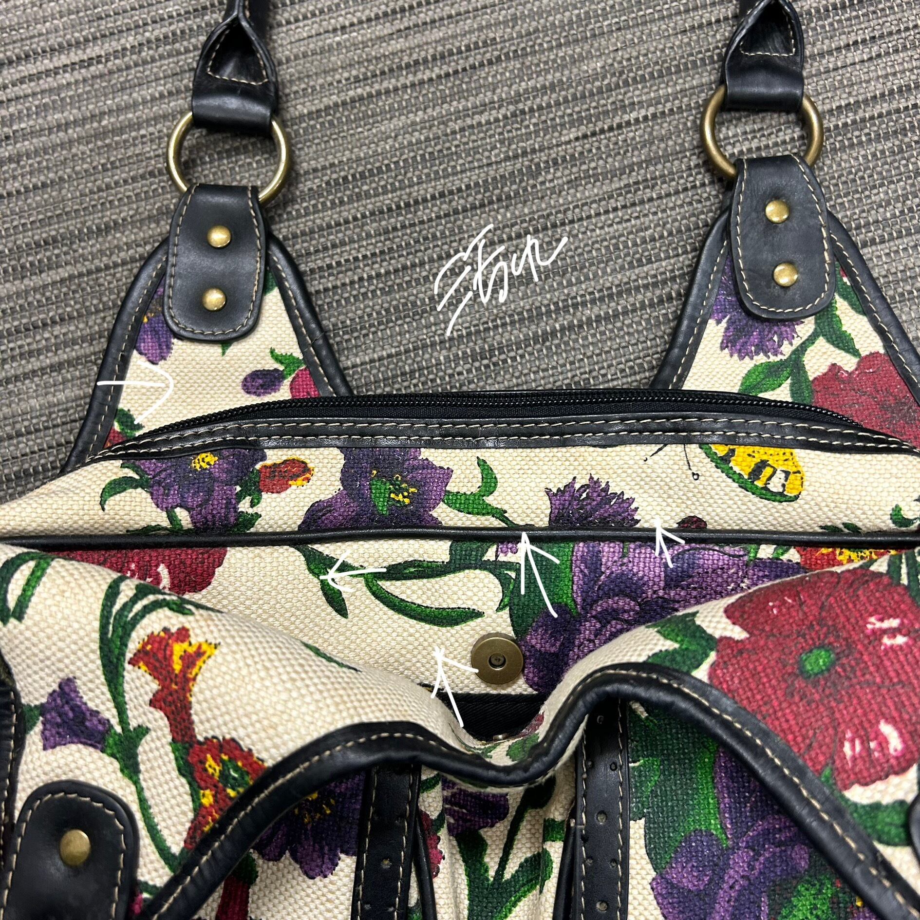 華やかな 花柄(フローラル)プリント/刺繍デザイン が印象的なハンドルバッグ。