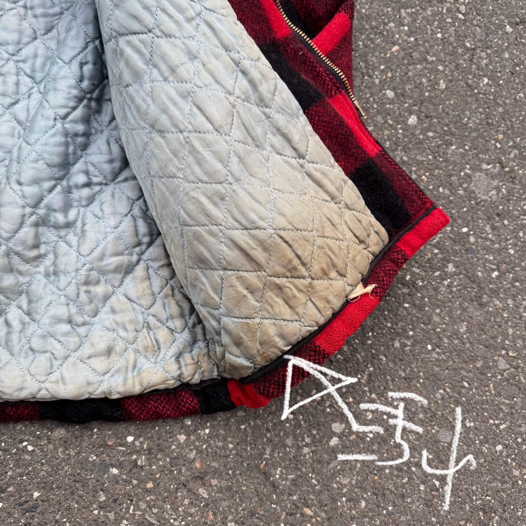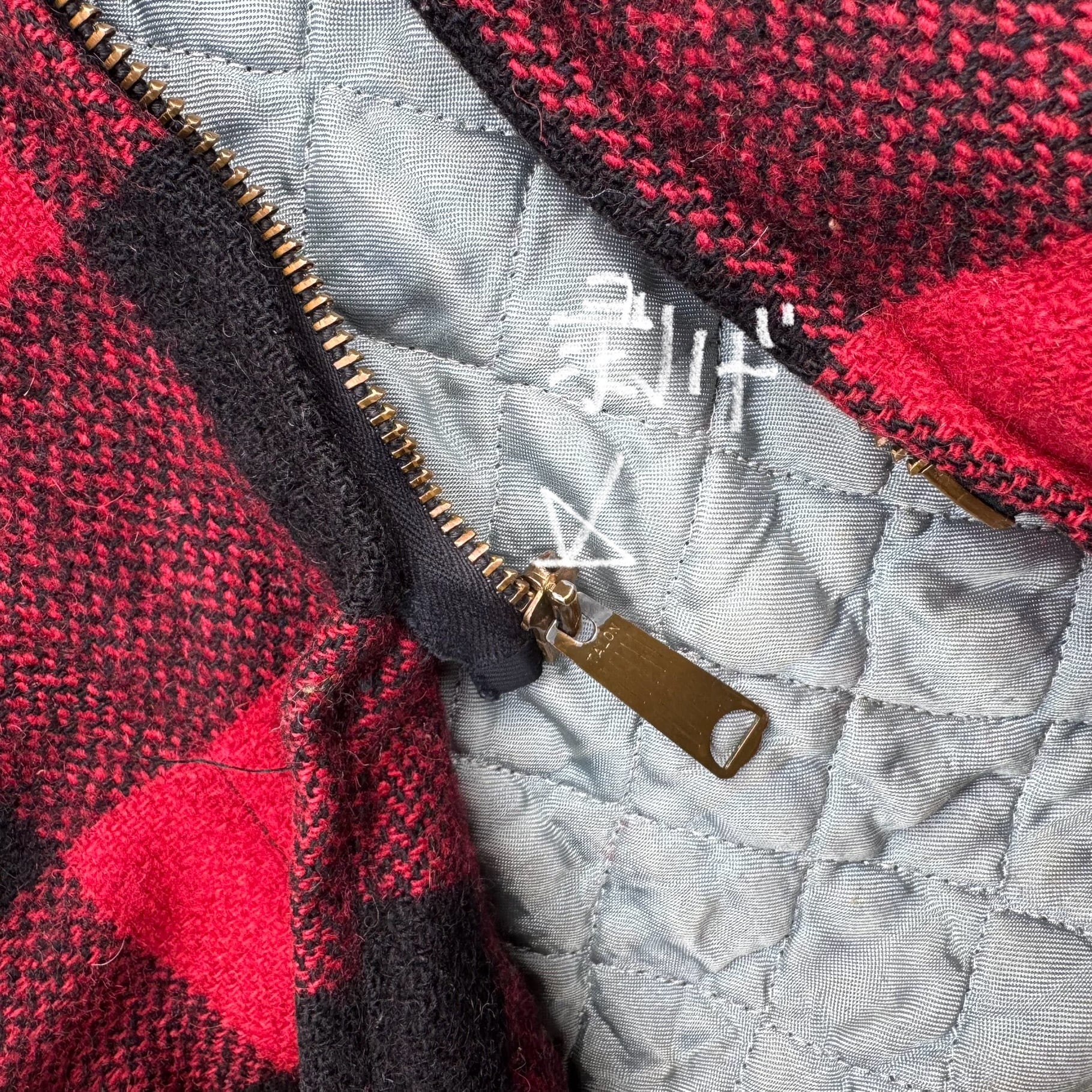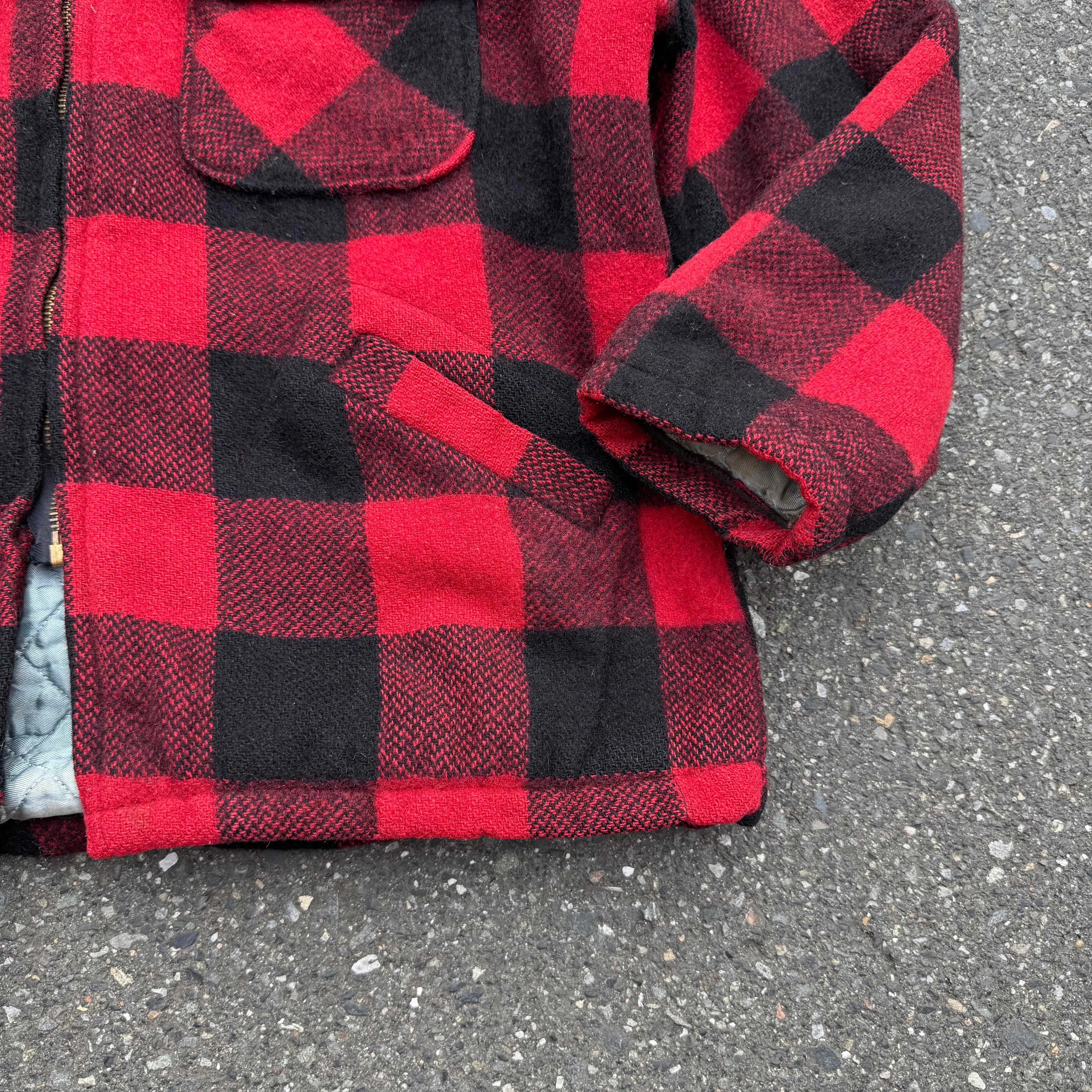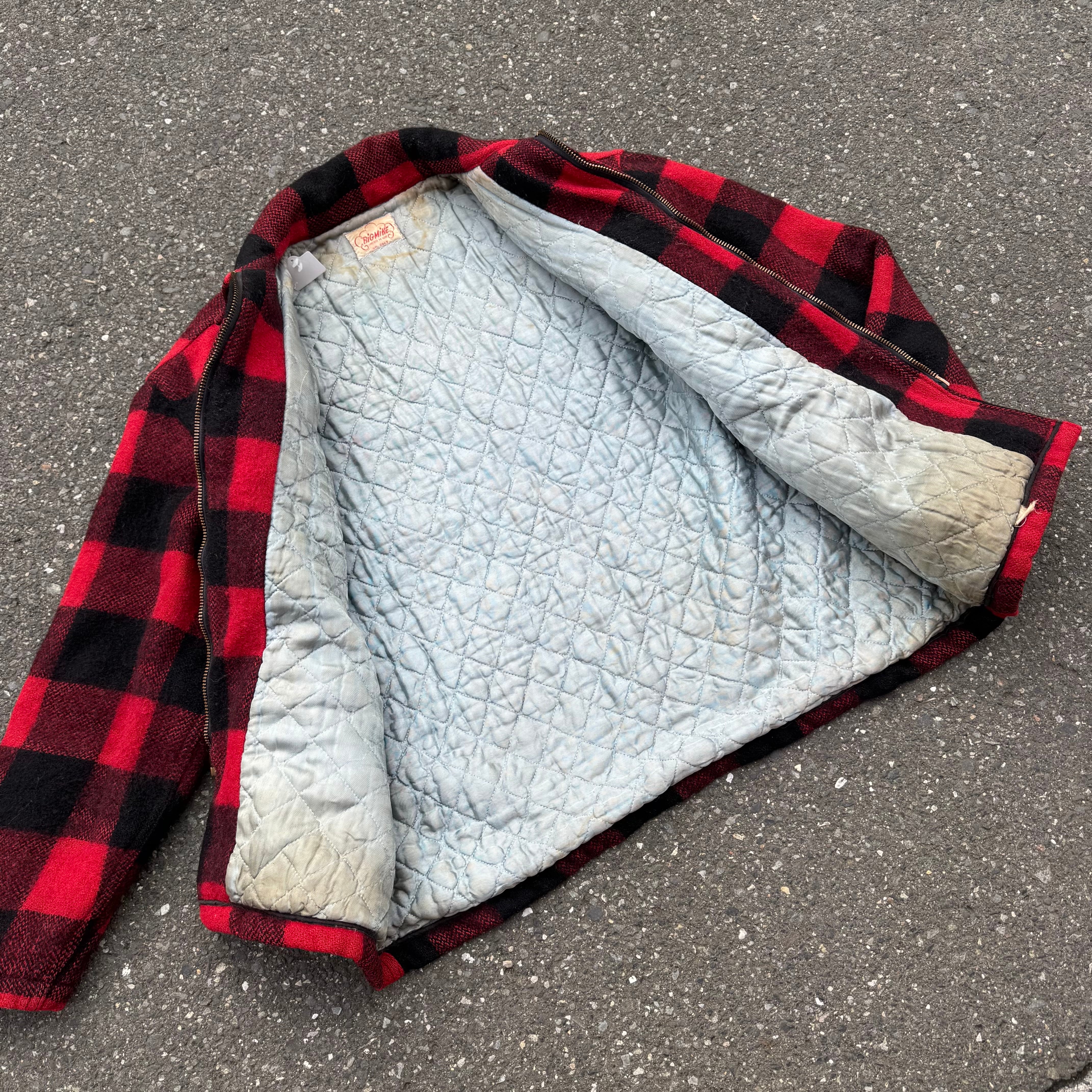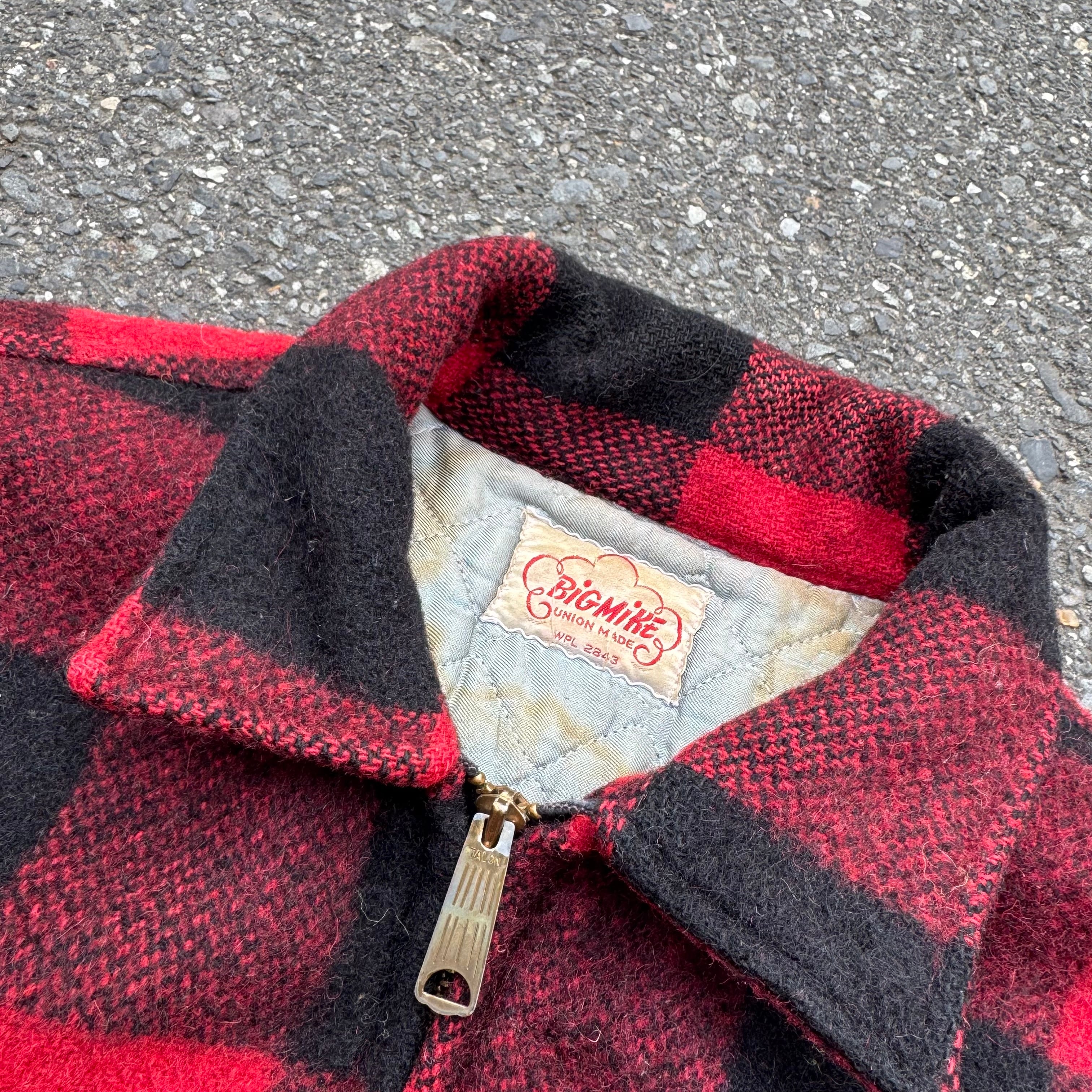 60s UNION MADE TALON ZIP BIG MIKE バッファローチェック柄キルティング裏地ショート丈ウールジャケット(汚れあり) AKB