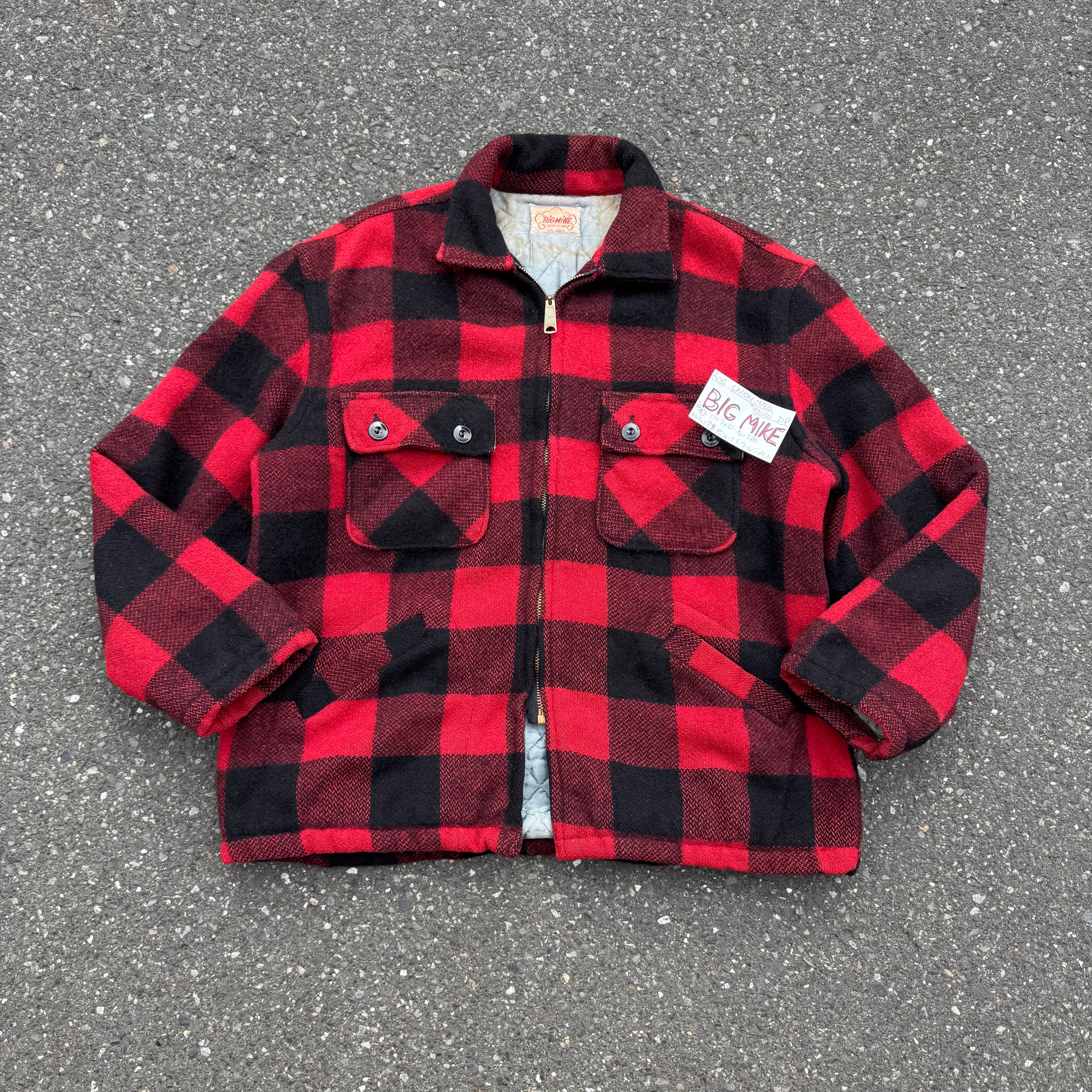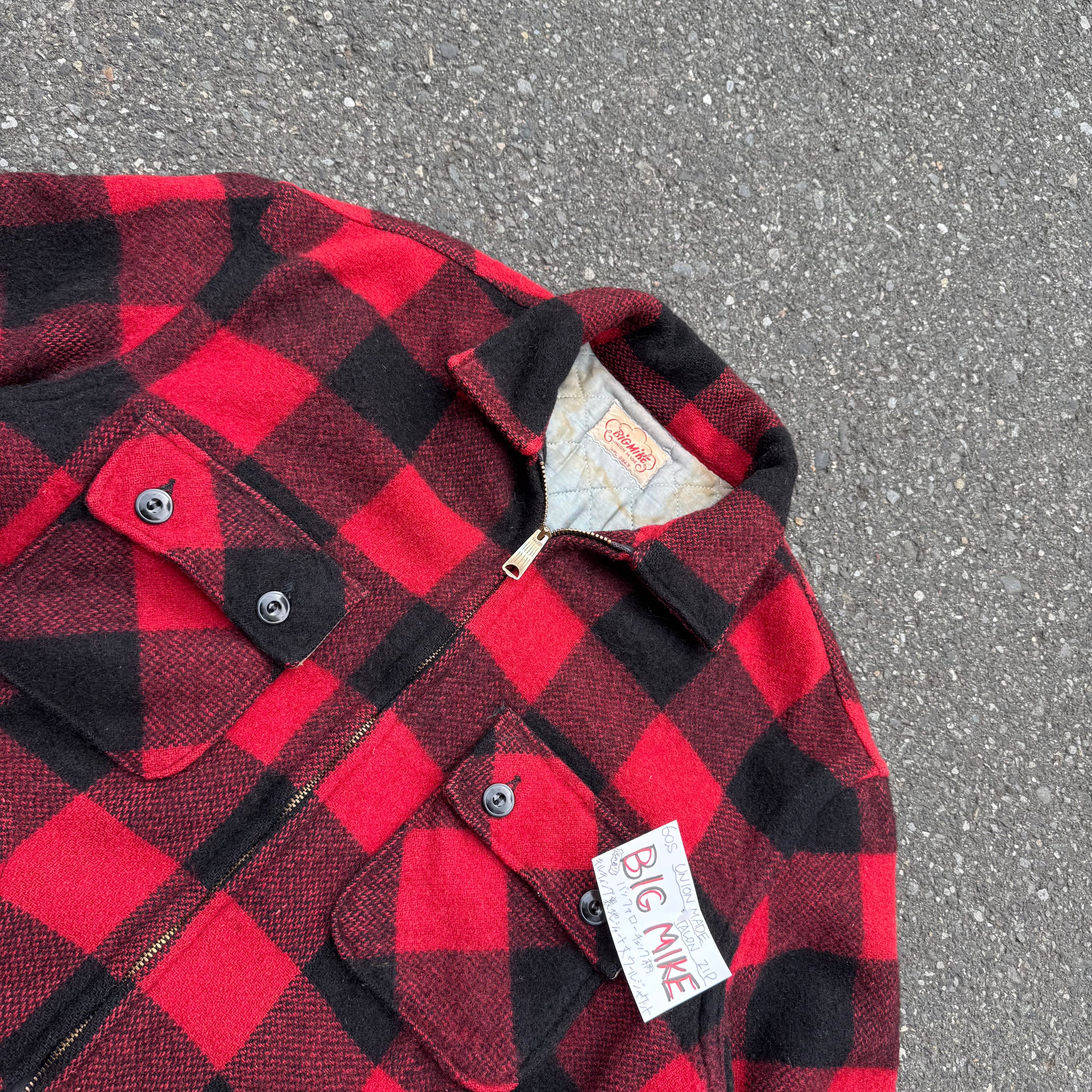 60s UNION MADE TALON ZIP BIG MIKE バッファローチェック柄キルティング裏地ショート丈ウールジャケット(汚れあり)となっております。