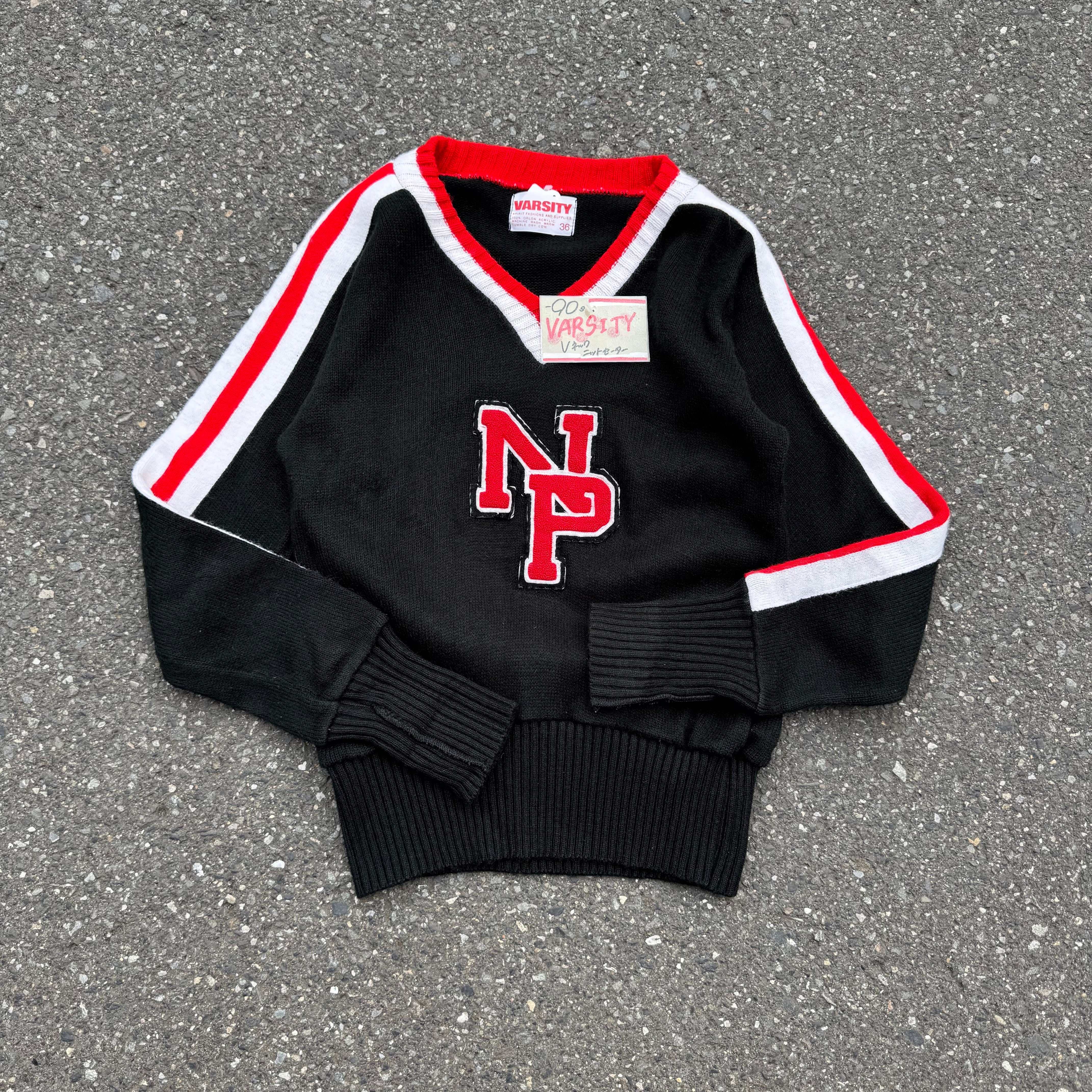 90s VARSITY Vネックニットセーター AKB