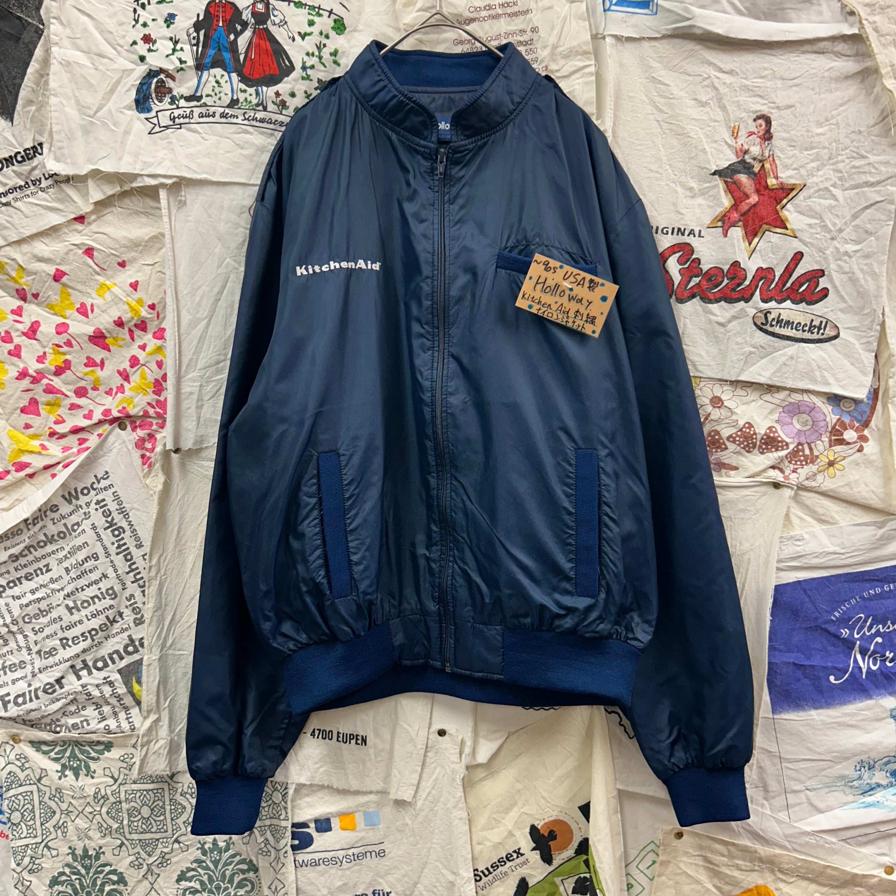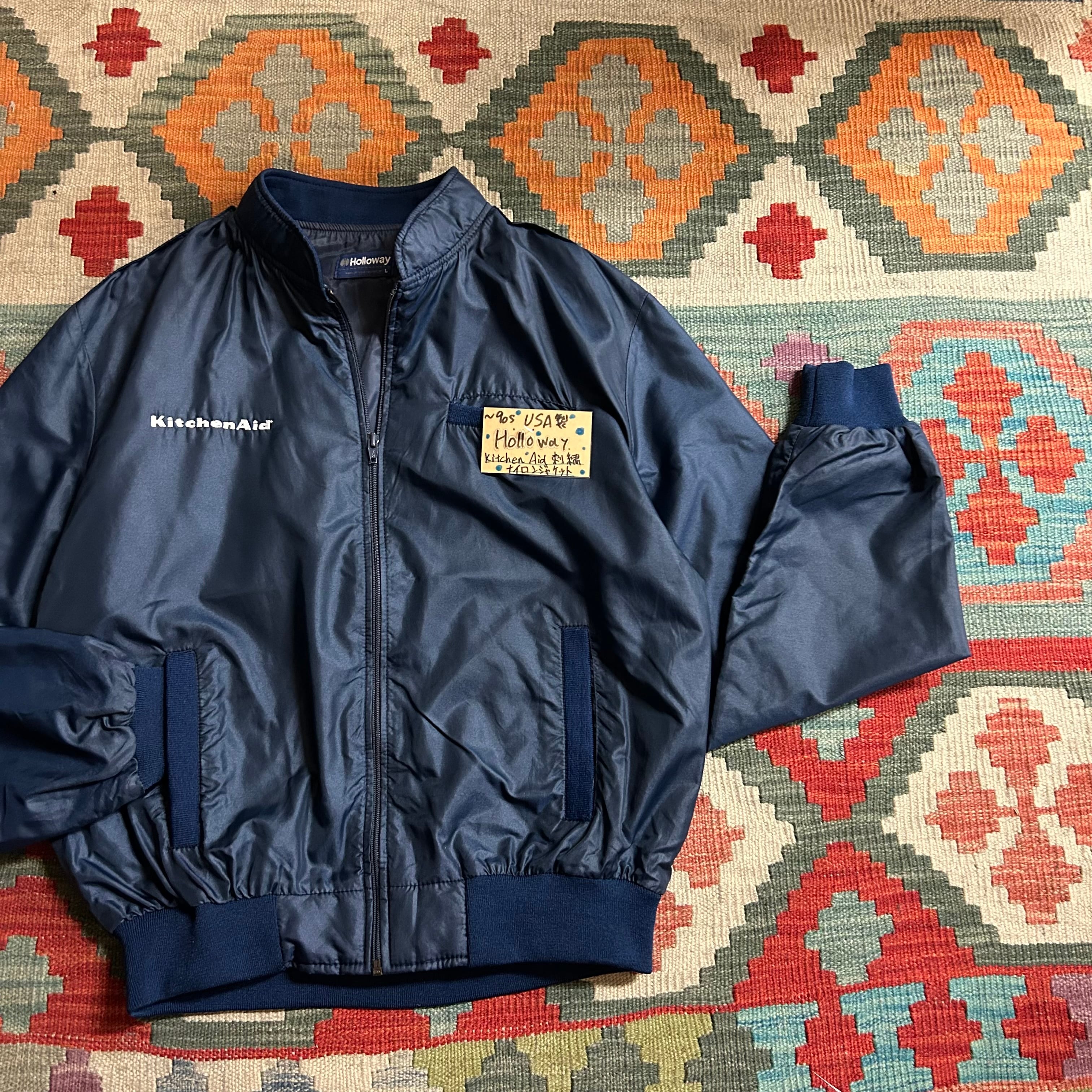 1980年代頃の アメリカ製ヴィンテージ ナイロンジャケットで、Holloway ボディに “Kitchen Aid”(キッチンエイド)の 刺繍ロゴ が入る一点物感ある一着。