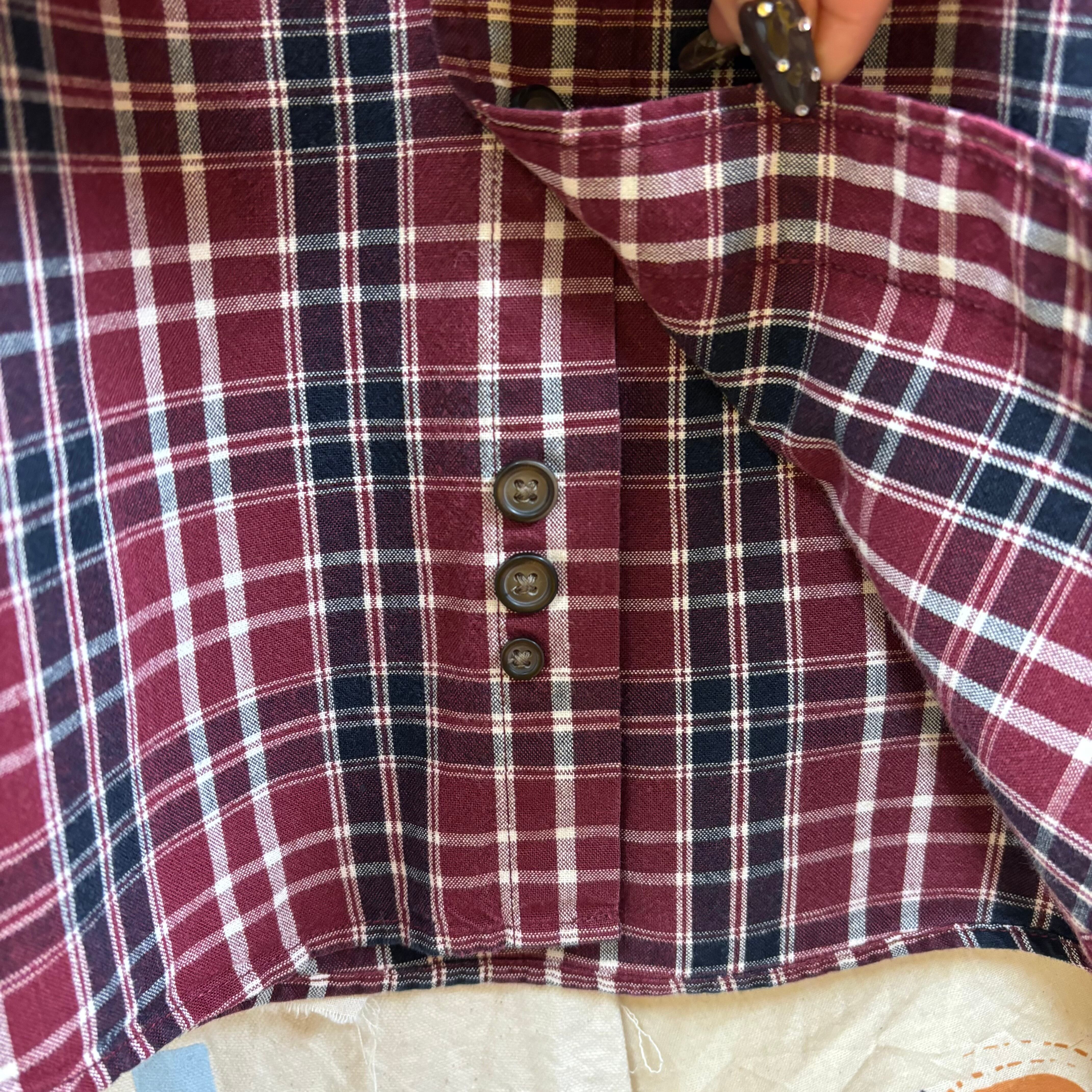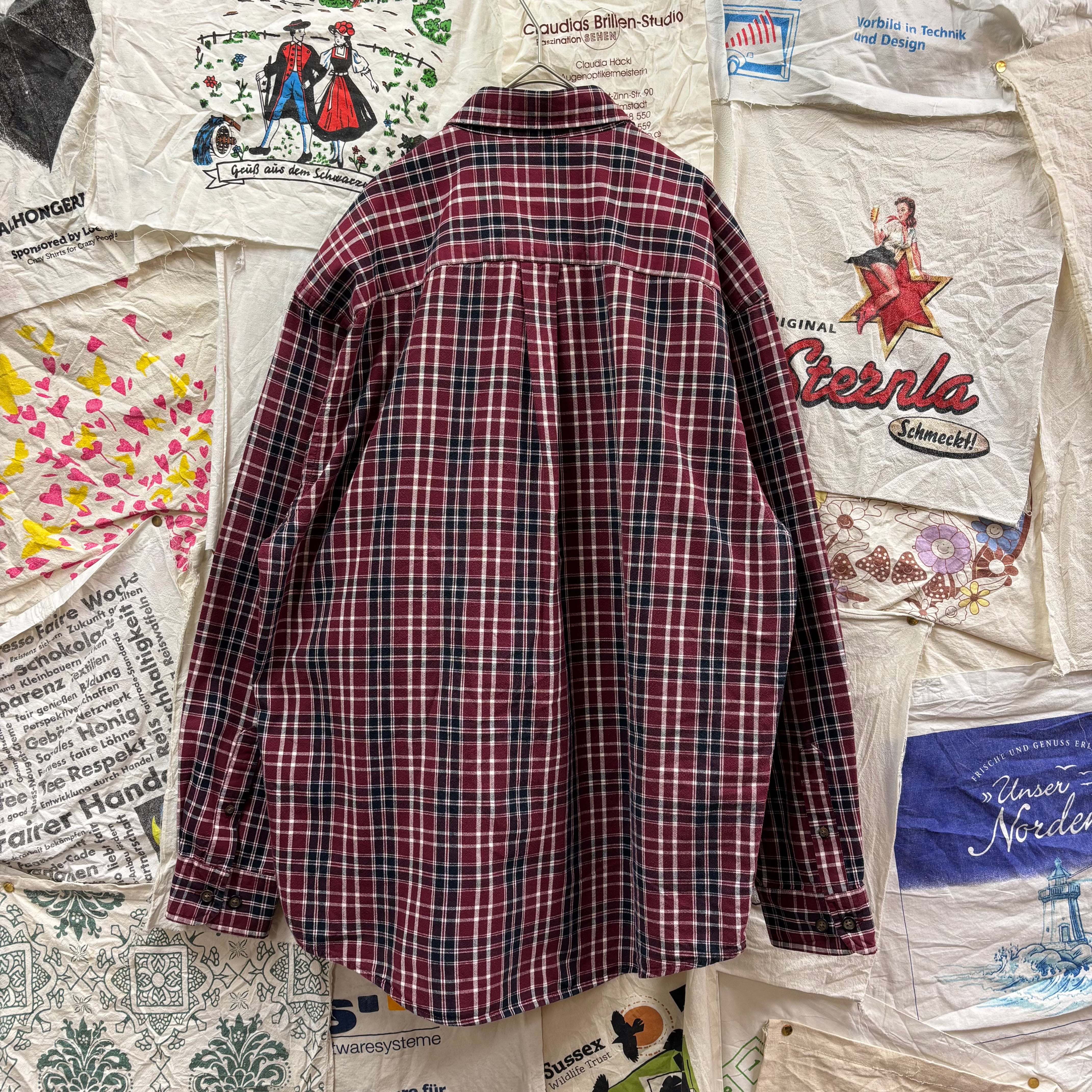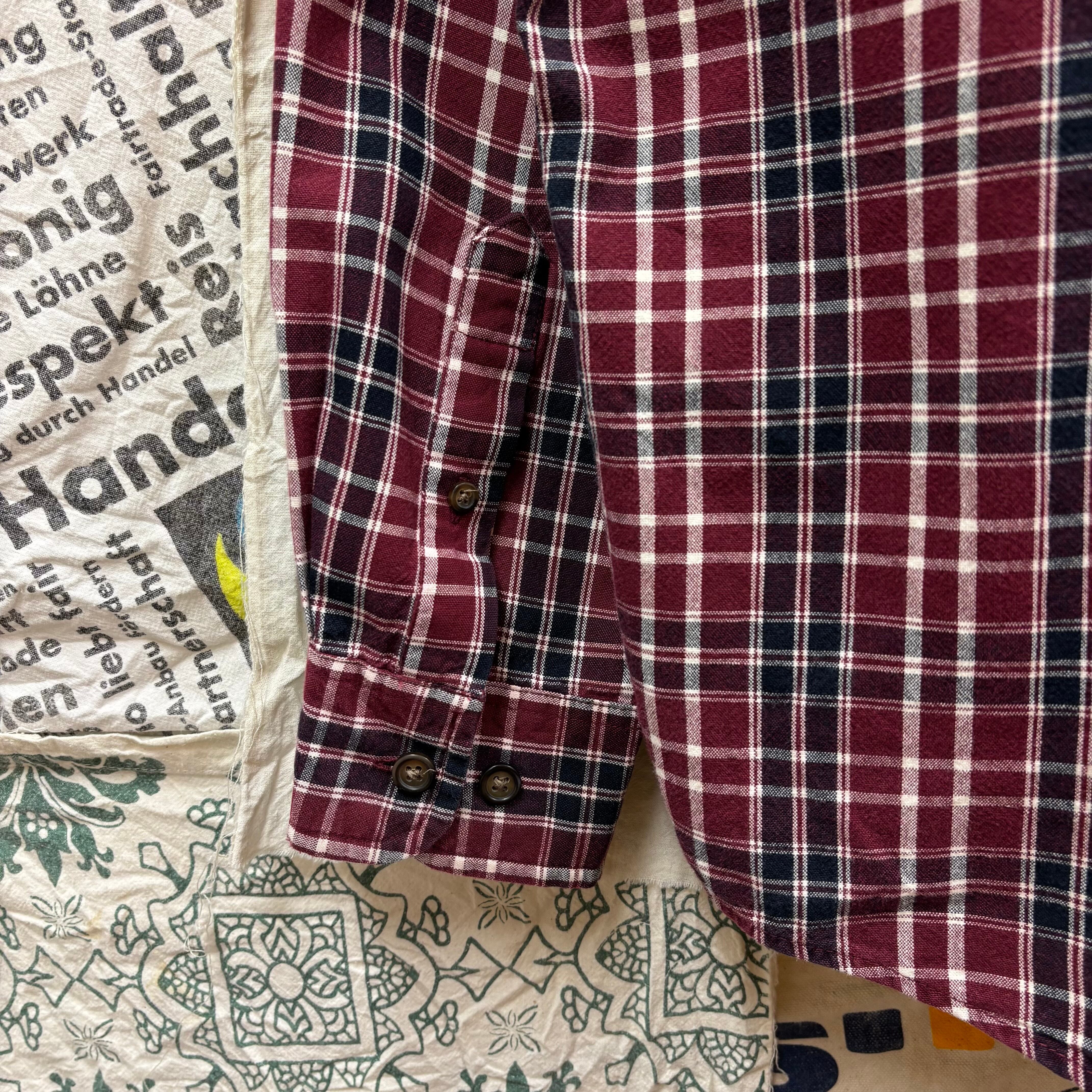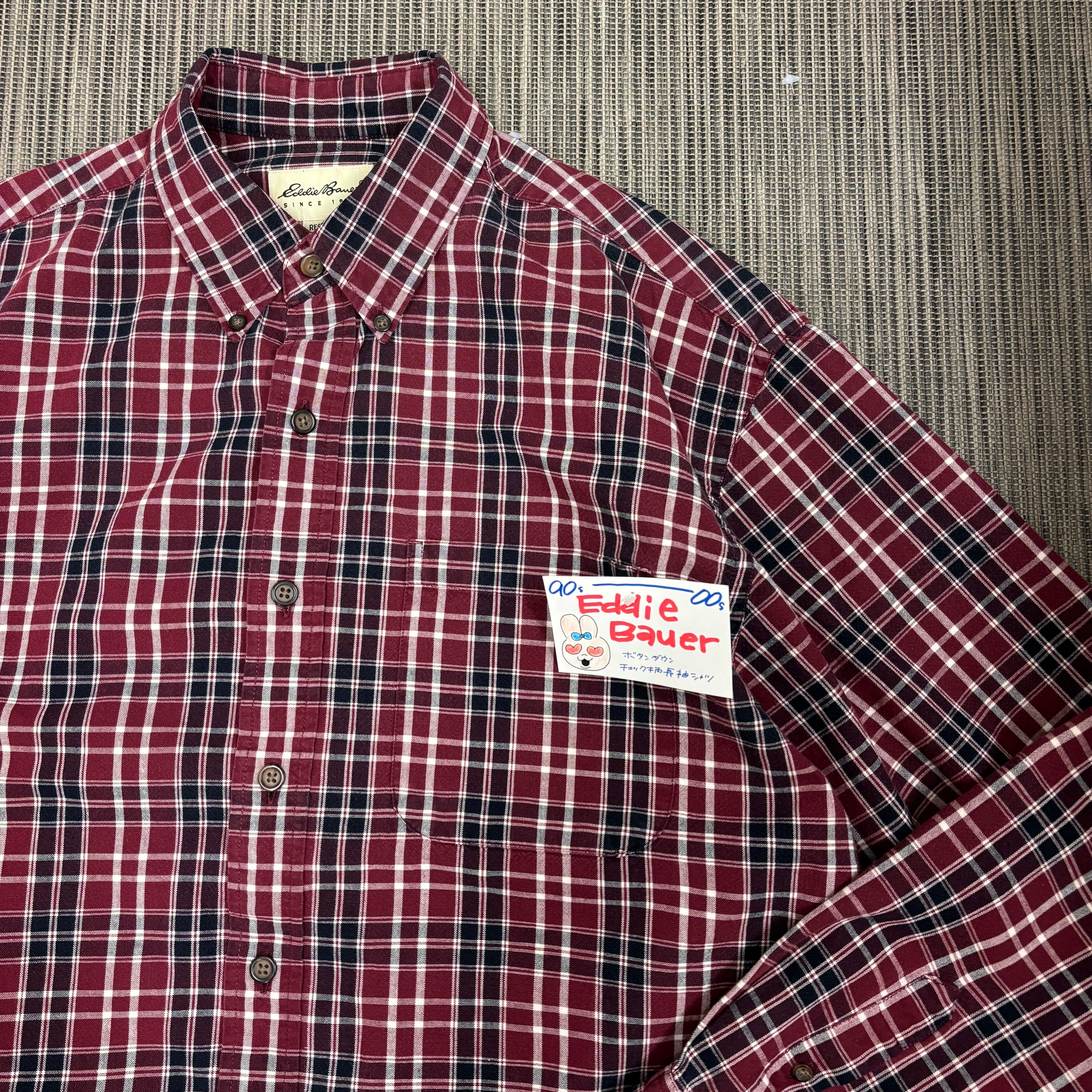 老舗アウトドアブランド「Eddie Bauer」より、落ち着いたボルドーベースのチェックシャツです。