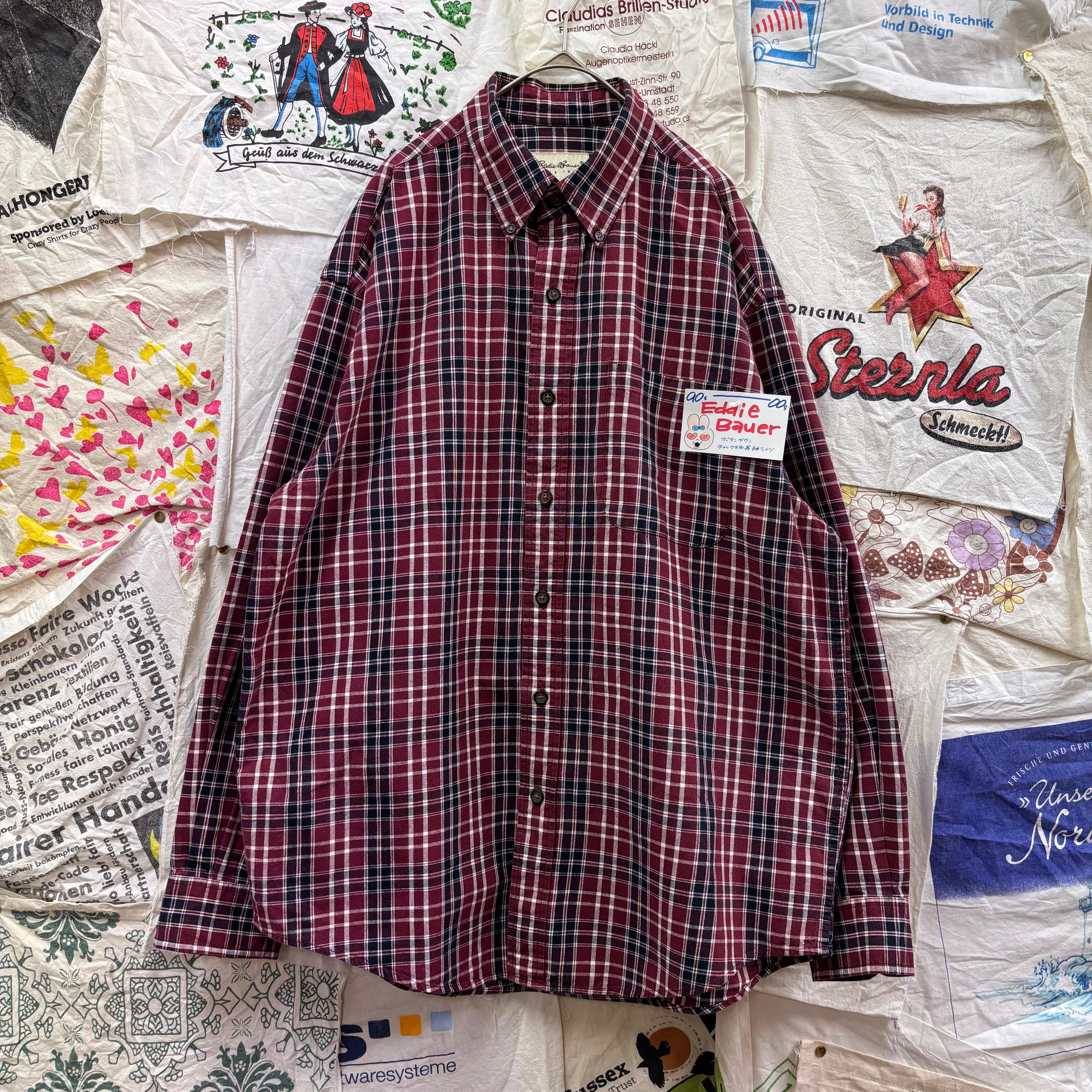 90-00s Eddie Bauer ボタンダウンチェック柄長袖シャツ